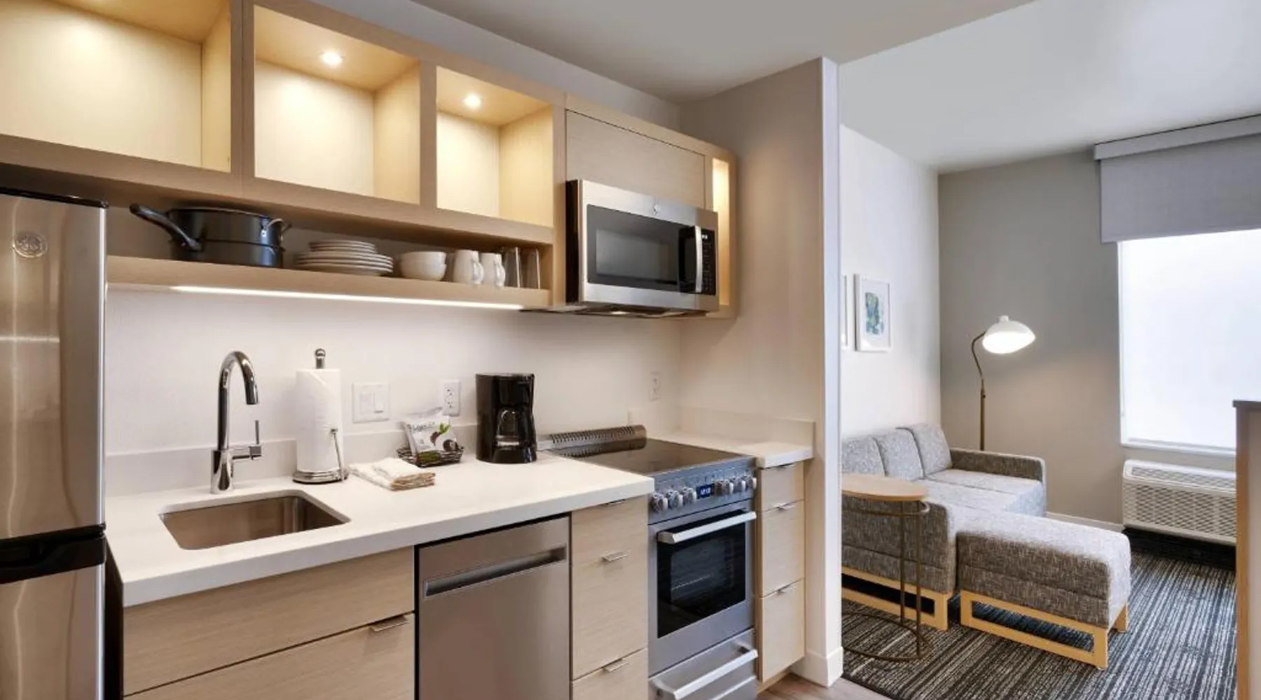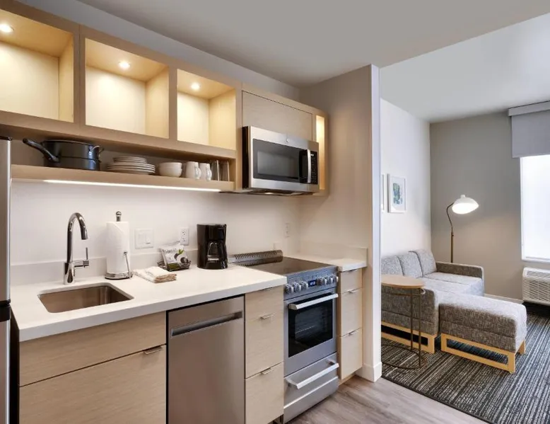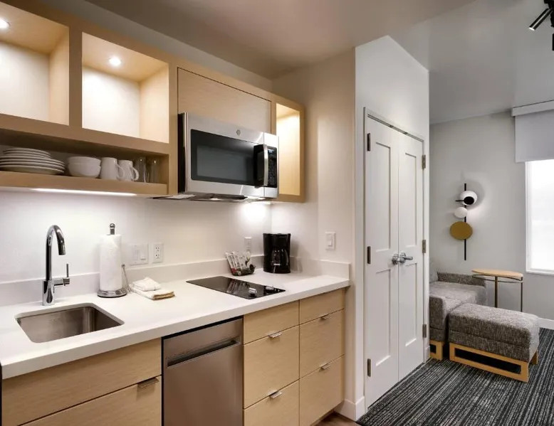 Comfortable Accommodations: TownePlace Suites Salt Lake City Murray in Murray offers family rooms with private bathrooms, fully equipped kitchens, and modern amenities. Each room includes air-conditioning, a work desk, and free toiletries. Exceptional Facilities: Guests can enjoy a fitness center, indoor swimming pool, and hot tub. Additional facilities include an outdoor fireplace, fitness room, and outdoor seating area. Free on-site private parking is available. Convenient Location: Located 6.8 mi from Mountain America Expo Center and 5 mi from Holiday River Expeditions, the hotel is near attractions such as Regal Cinemas and Rio Tinto Stadium. Salt Lake City International Airport is 11 mi away. An ice-skating rink is in the surroundings. Guest Satisfaction: Highly rated for room cleanliness, attentive staff, and convenient location. Featuring free toiletries, this studio includes a private bathroom with a shower and a hairdryer. Meals can be prepared in the kitchen, which features a stovetop, a refrigerator, a dishwasher and kitchenware. The studio has carpeted floors, a seating area with a flat-screen TV with streaming services, air conditioning, a private entrance, as well as a tea and coffee maker. The unit has 2 beds.