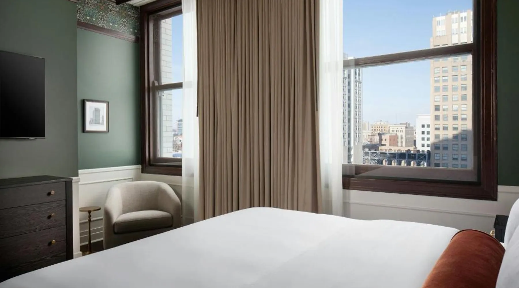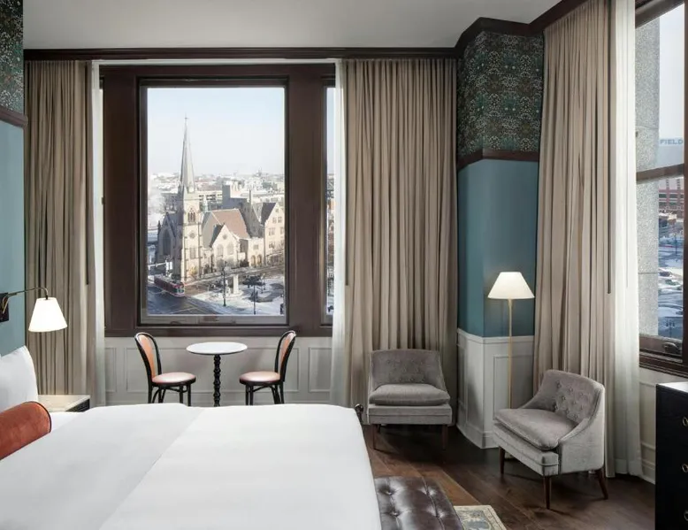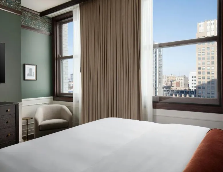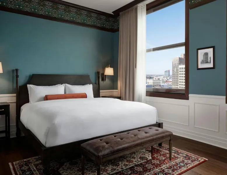 Located in the David Whitney building in downtown Detroit, this hotel features a bar and lounge for guests to relax, a fitness center and free high speed WiFi. The hotel is less than 311 mi from The Fillmore, Fox Theater and General Motors Headquarters. A 42 inch flat-screen TV and beds with pillowtop mattresses are included in every room at the Hotel David Whitney, Autograph Collection. Amenities like a coffee maker, refrigerator and desk are provided for guests' convenience. Guest services include 24-hour front desk and concierge services. Guests can play a round of golf at a nearby golf course. A quick bite at Presley’s Kitchen+Bar is available for guests' hunger needs. The on-site The Library Bar offers cocktails, wine and snacks late into the night as well. The Cobo Convention Center is 2625 feet from Hotel David Whitney. The nearest airport is Detroit Metro Airport, 17 mi from the property. Featuring free toiletries and bathrobes, this double room includes a private bathroom with a bath or a shower and a hairdryer. The spacious air-conditioned double room features a flat-screen TV with cable channels, a tea and coffee maker, a seating area, a safe deposit box as well as city views. The unit has 1 bed.