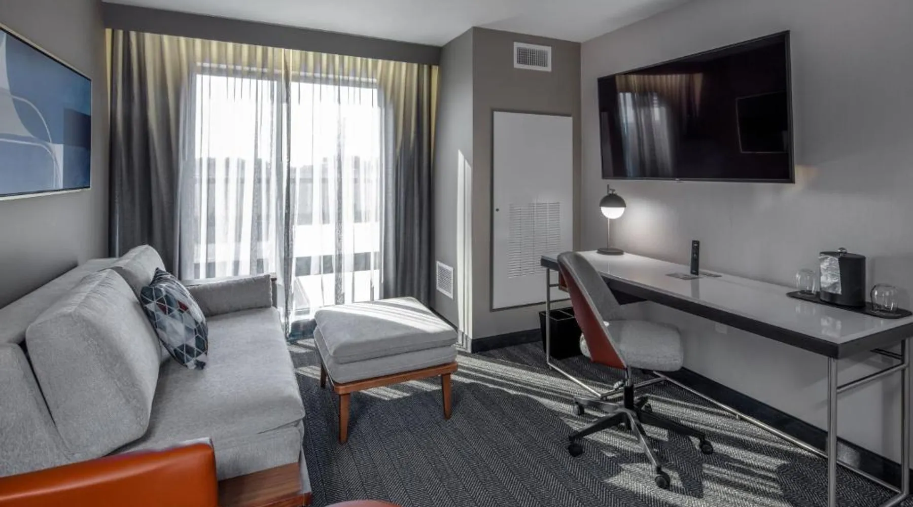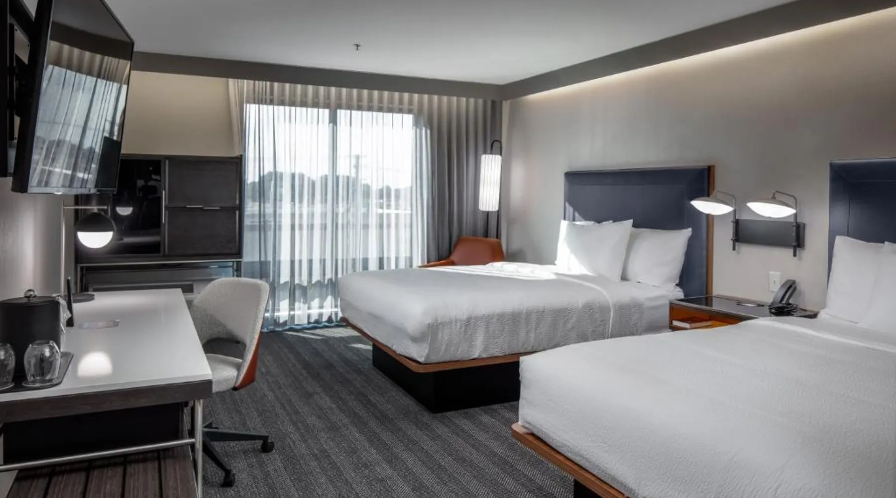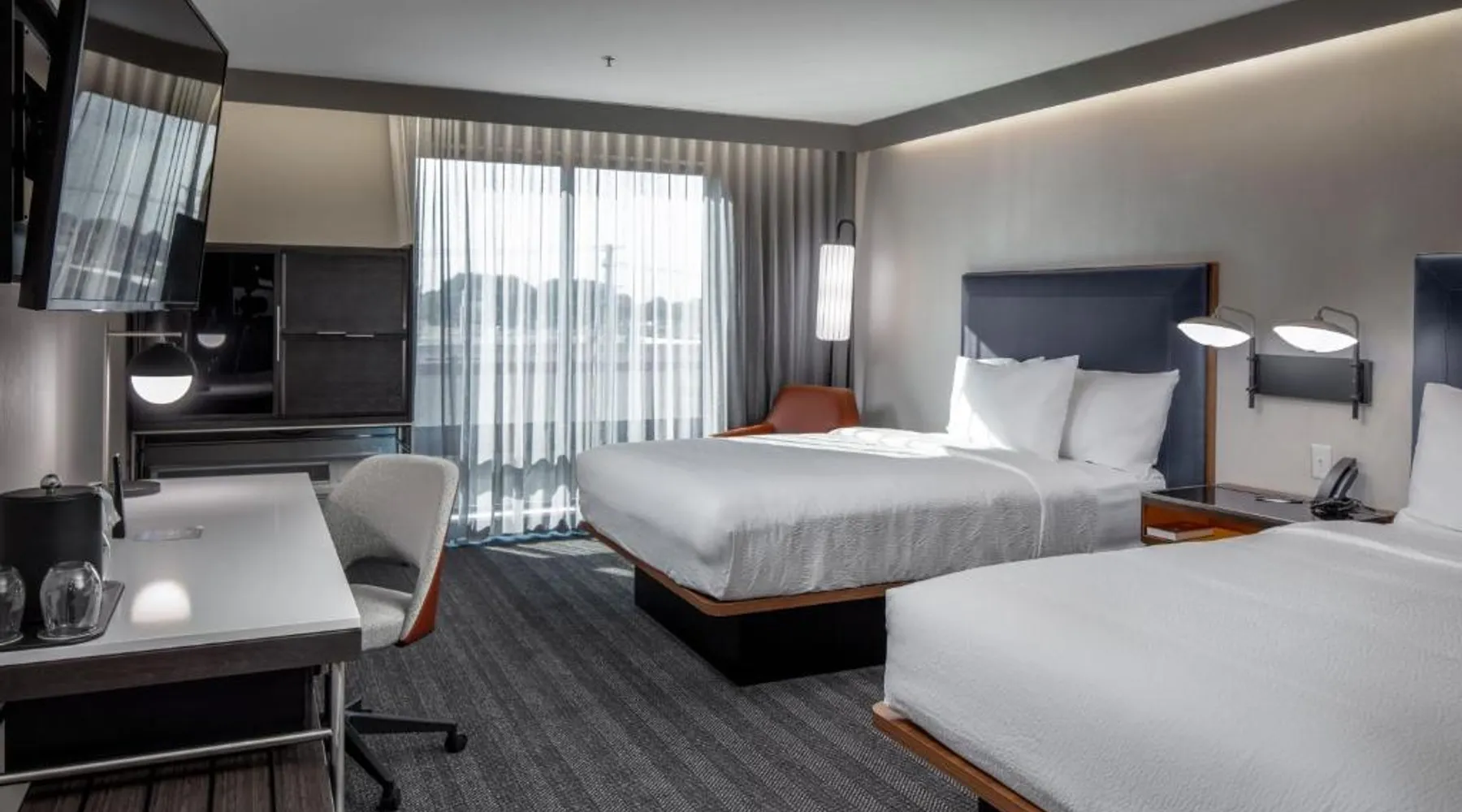 Comfortable Accommodations: Courtyard by Marriott Conway in Conway offers family rooms with air-conditioning, private bathrooms, and modern amenities. Each room includes a work desk, sofa bed, and free WiFi. Exceptional Facilities: Guests can enjoy a fitness center, indoor swimming pool, restaurant, and bar. Additional amenities include a lounge, outdoor fireplace, and outdoor seating area. Convenient Location: Located 29 mi from Clinton National Airport, the hotel is near attractions such as Simmons Bank Arena (27 mi) and Old State House (27 mi). Guests appreciate the room cleanliness, convenient location, and attentive staff. The spacious double room offers air conditioning, a wardrobe, as well as a private bathroom featuring a bath and a hairdryer. This double room features a carpeted floor, heating and a flat-screen TV with streaming services. The unit offers 2 beds.