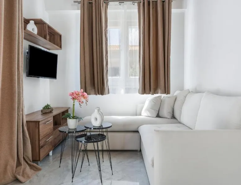 Comfortable Accommodations: Miralis Apartments in Lefkada offers a sun terrace, garden, and a seasonal outdoor swimming pool. Guests enjoy free WiFi, air-conditioning, and private check-in and check-out services. Modern Amenities: Each apartment features a balcony or terrace with garden or pool views, a fully equipped kitchen, and a private bathroom. Additional amenities include a kids' pool, outdoor seating area, and free on-site private parking. Prime Location: Located a 1-minute walk from Nikiana Beach, the property is 19 mi from Aktion Airport. Nearby attractions include Agiou Georgiou Square and Dimosari Waterfalls, each 5 mi away. Guests appreciate the friendly host and convenient location. This air-conditioned apartment consists of 1 living room, 1 separate bedroom and 1 bathroom with a walk-in shower. In the fully equipped kitchen, guests will find a stovetop, a refrigerator, kitchenware and an oven. This wheelchair accessible apartment features soundproof walls, a seating area with a flat-screen TV and a higher level toilet. The unit offers 1 bed.