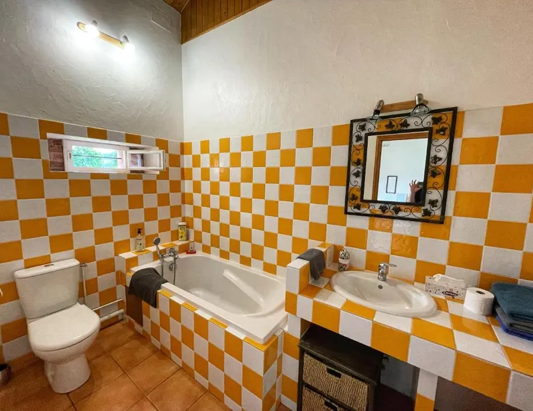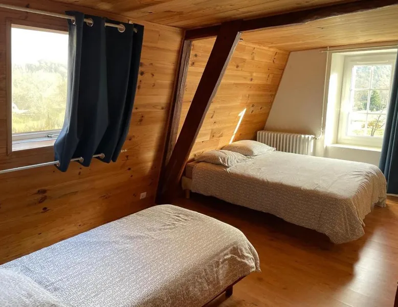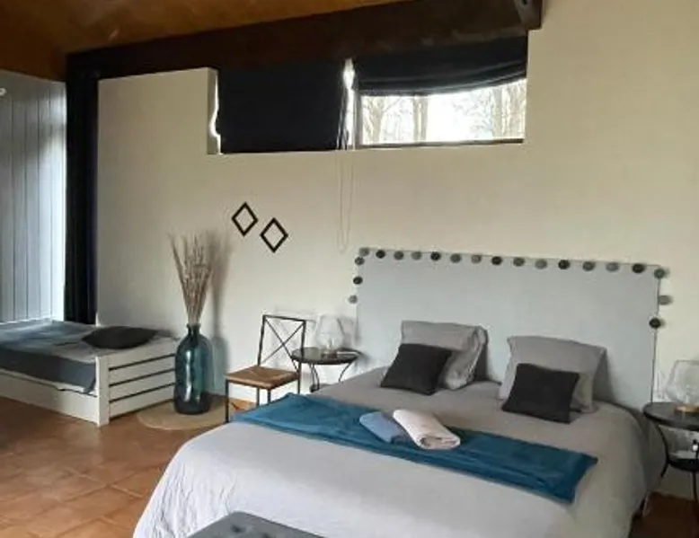 Historic Setting: La Caminade in Borg-de-Bigorre offers a guest house experience within a historic building. The property features a sun terrace, garden, and a seasonal outdoor swimming pool. Comfortable Accommodations: Rooms include family rooms, private bathrooms, and free WiFi. Additional amenities include an outdoor play area, outdoor seating, and a picnic area. Breakfast and Amenities: Guests enjoy a continental breakfast with juice and pancakes. The property provides free on-site private parking, free toiletries, and soundproofing. Local Attractions: Located 24 mi from Tarbes Lourdes Pyrénées Airport, nearby attractions include Gouffre d'Esparros (8.1 mi) and Bigorre Golf Country Club (9.3 mi). Highly rated for its host, breakfast, and room cleanliness. The pool with a view is the standout feature of this family room. The family room features a private entrance, soundproof walls, a terrace with garden views as well as a private bathroom boasting a walk-in shower. The unit has 3 beds.
