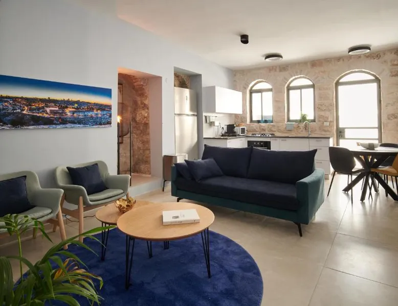 Prime City Center Location: Machene Yehuda Vacation Apartments By Raphael Hotels in Jerusalem offers a convenient location in the city center. Ben Gurion Airport is 30 mi away. Nearby attractions include the Holyland Model of Jerusalem (1.9 mi), Western Wall (2.2 mi), and Dome of the Rock (2.5 mi). Comfortable Accommodations: Each apartment features a terrace, balcony with city views, and free WiFi. Guests enjoy air-conditioning, a private bathroom, and a fully equipped kitchen with modern appliances. Additional amenities include a washing machine, work desk, and dining area. Convenient Facilities: The property provides a paid shuttle service, elevator, family rooms, and luggage storage. Paid parking is available. Reception staff speak English and Hebrew. Highly rated for its convenient location. This spacious apartment includes 1 living room, 2 separate bedrooms and 1 bathroom with a bath and free toiletries. In the kitchen, guests will find a stovetop, a refrigerator, kitchenware and a microwave. The air-conditioned apartment offers a flat-screen TV, a washing machine, a tea and coffee maker, a seating area as well as garden views. The unit has 4 beds.