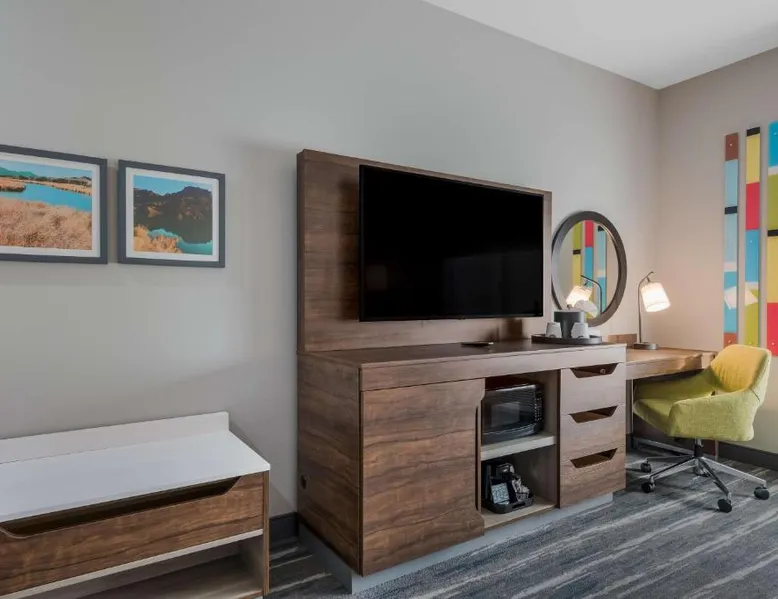 Comfortable Accommodations: Hampton Inn By Hilton Williams in Williams offers air-conditioned rooms with free WiFi, tea and coffee makers, and work desks. Each room includes a refrigerator, microwave, TV, and free toiletries. Exceptional Facilities: Guests can enjoy an indoor swimming pool, fitness room, and 24-hour front desk. Additional amenities include interconnected rooms and a elevator. Delicious Breakfast: A continental breakfast is served daily, featuring fresh pastries, fruits, and juices. The property staff provide excellent service and support. Convenient Location: Located 35 mi from Flagstaff Pulliam Airport, the hotel offers easy access to local attractions. Highly rated for its breakfast, room cleanliness, and attentive staff. This double room has air conditioning, a tea and coffee maker and a flat-screen TV with cable channels. The unit has 1 bed.