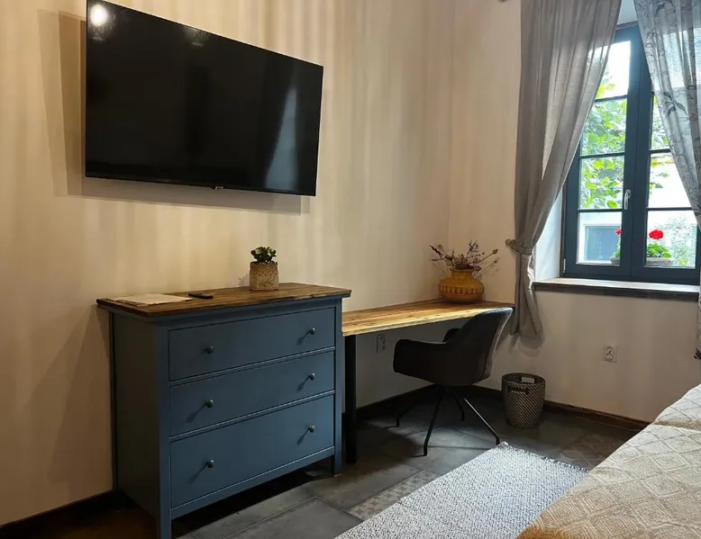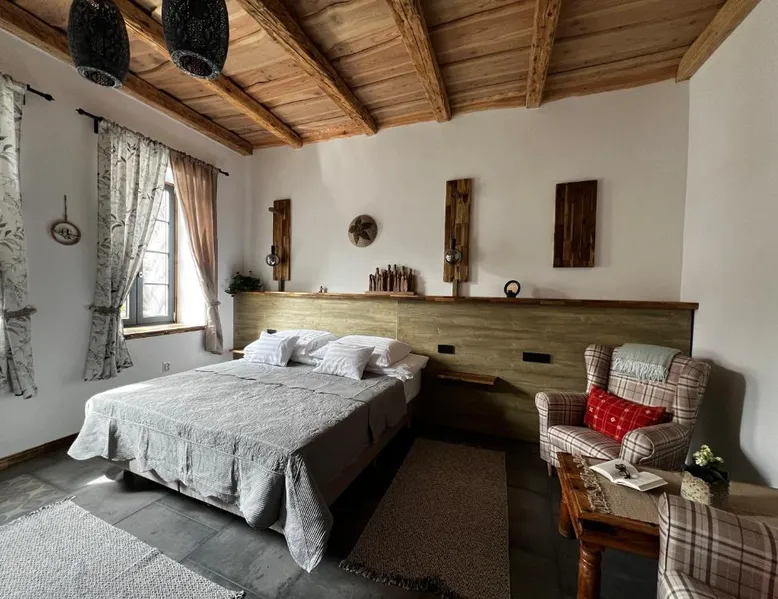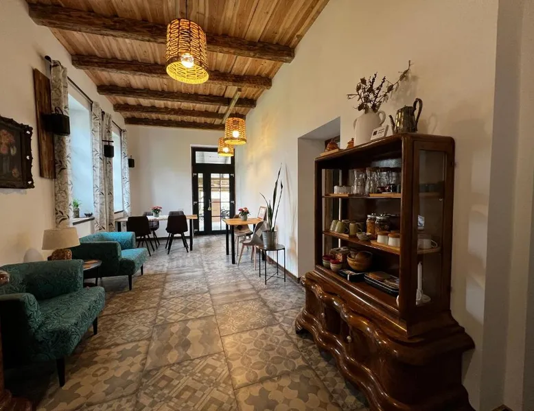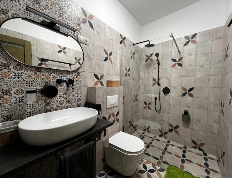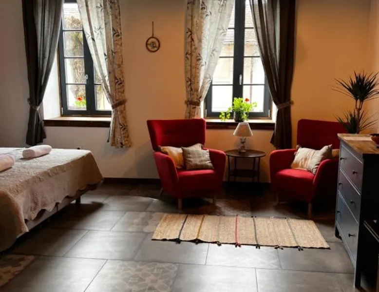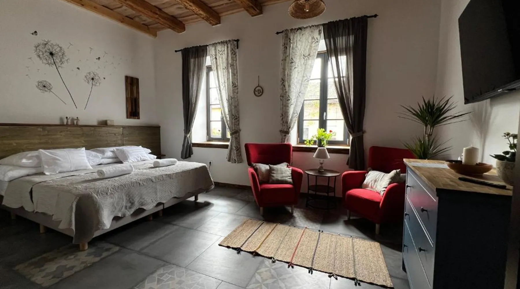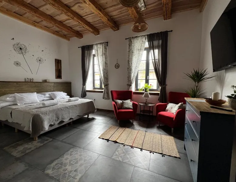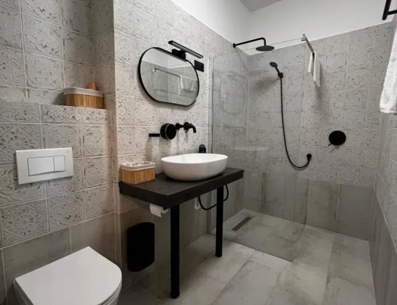 Comfortable Accommodations: Zöldkapu Vendégház in Balassagyarmat offers family rooms with private bathrooms, ensuring a pleasant stay. Each room features a tea and coffee maker, hypoallergenic bedding, and a work desk. Outdoor Spaces: Guests can relax in the garden or on the terrace, enjoying the serene surroundings. The property provides free WiFi, streaming services, and outdoor furniture for outdoor dining. Breakfast and Amenities: A continental breakfast is served daily, including juice, fresh pastries, cheese, and fruits. Additional facilities include a lounge, coffee shop, outdoor seating area, and bicycle parking. Location and Activities: Located 59 mi from Budapest Ferenc Liszt International Airport, the guest house offers walking tours. Free on-site parking and a paid shuttle service are available. Highly rated for its host, room cleanliness, and breakfast. The spacious double room features a private entrance, a tea and coffee maker, a terrace with a quiet street view as well as a private bathroom boasting a walk-in shower.