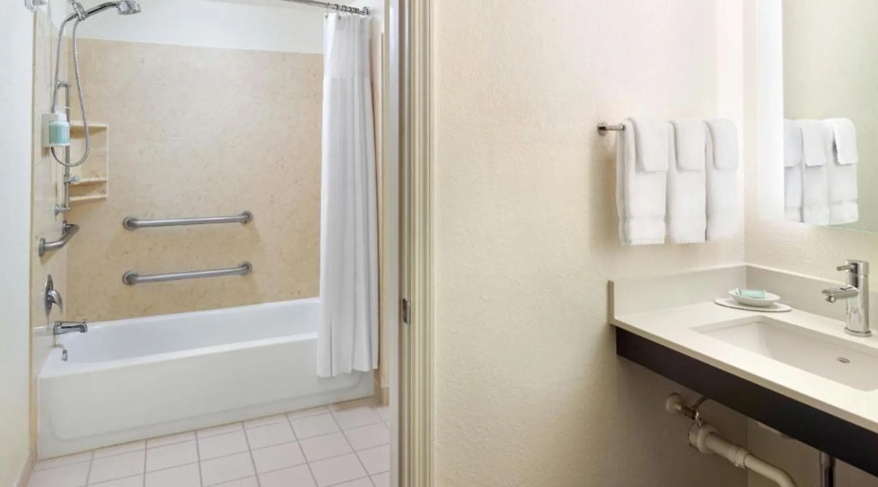 Located 1 mi from Fairview Park and the new Mosaic District, this hotel features a seasonal outdoor pool. Each guestroom provides a cable TV, seating area, a well-equipped kitchen where meals can be prepared and then served in the dining area. Kitchen facilities include a stovetop and a dishwasher. An fitness center and a hot tub are among Residence Inn Fairfax Merrifield’s amenities. Residence Inn Fairfax Merrifield offers daily complimentary breakfast. No evening social hours or free parking is available at the property. Residence Inn Fairfax Merrifield offers a free shuttle to the Metro station and the local area upon request. Dunn Loring-Merrifield Station is 1.4 mi away from the property. The hotel is 19 mi from Washington Dulles Airport. This spacious suite includes 1 living room, 2 separate bedrooms and 2 bathrooms with a bath or a shower and free toiletries. Guests can make meals in the kitchen that is fitted with a stovetop, a refrigerator, a dishwasher and kitchenware. The suite has carpeted floors, a seating area with a flat-screen TV with cable channels, air conditioning, a tea and coffee maker, as well as a dining area. The unit has 3 beds.