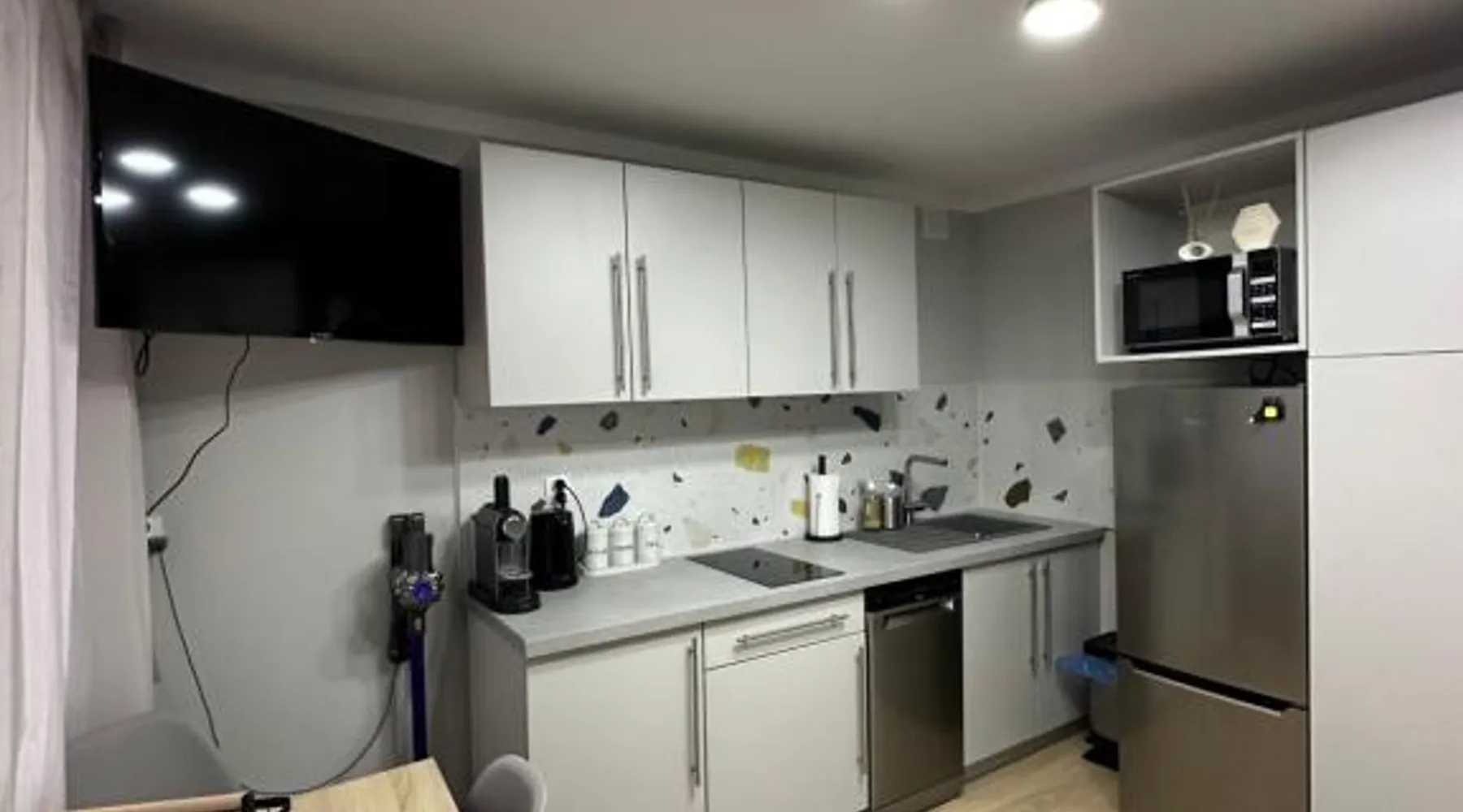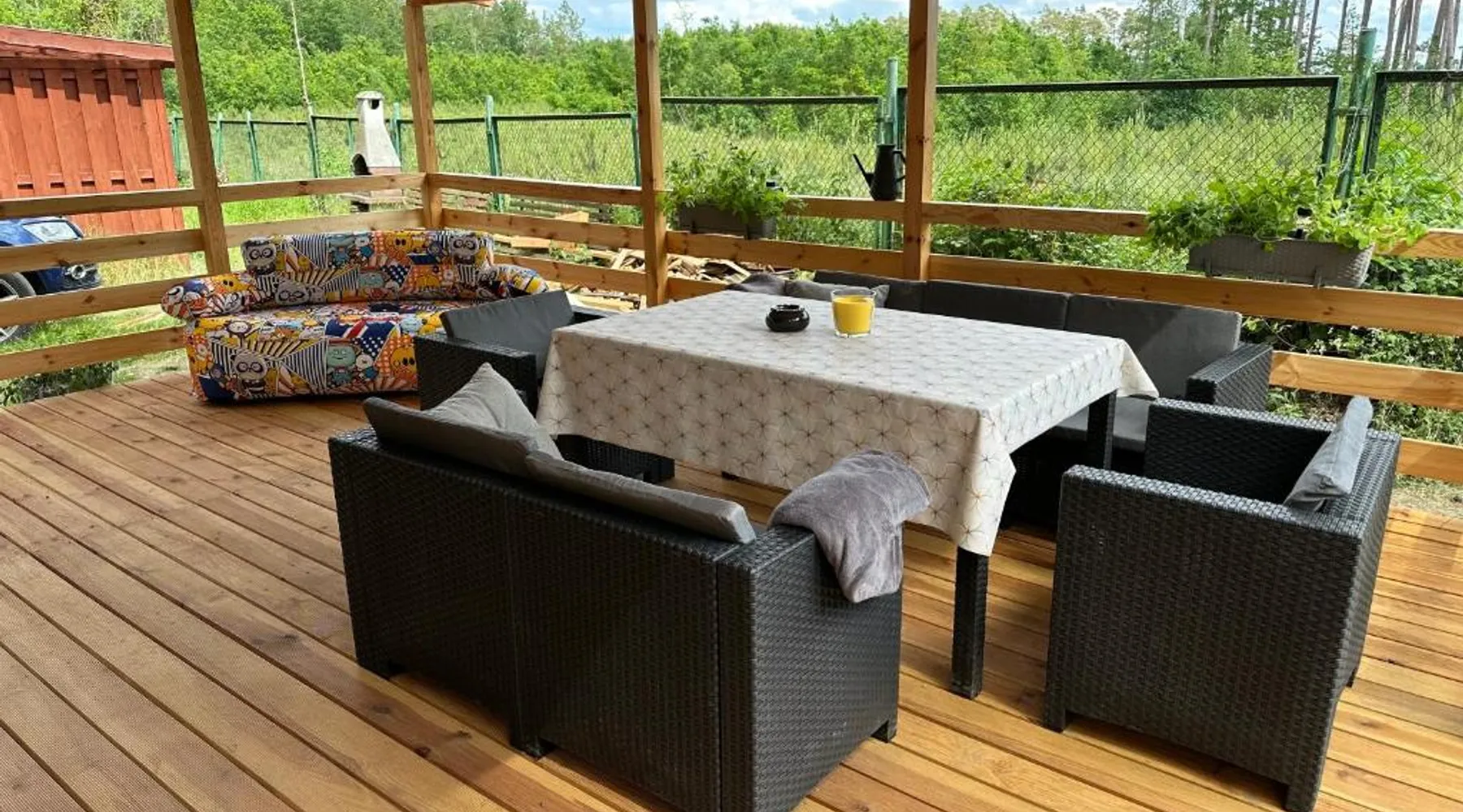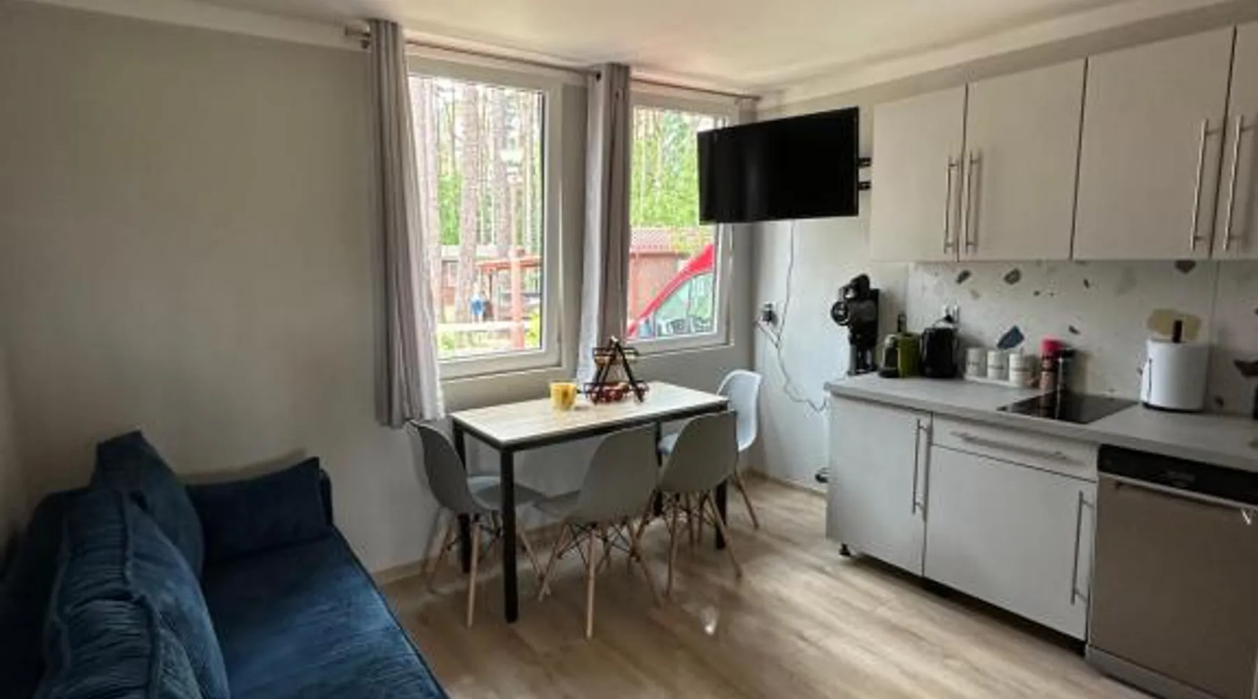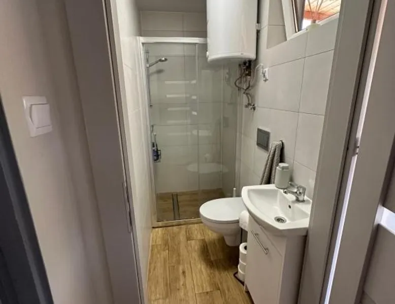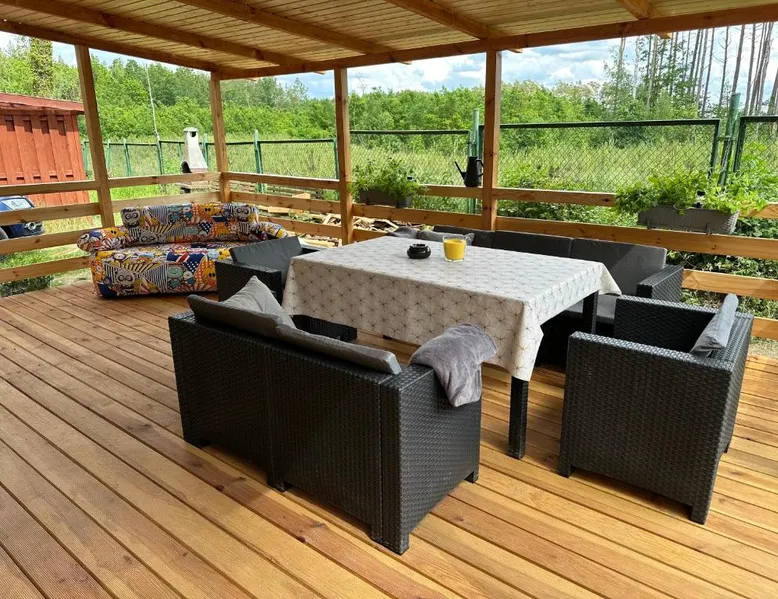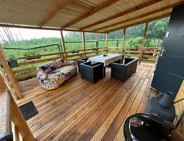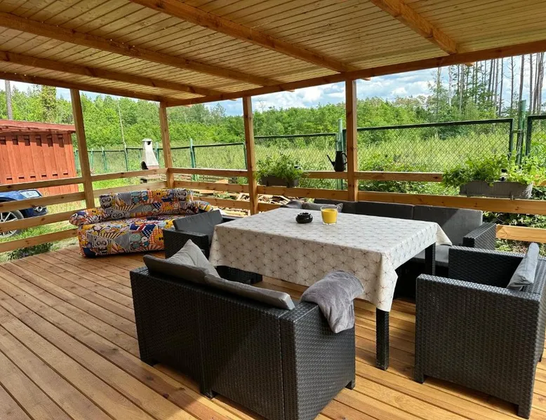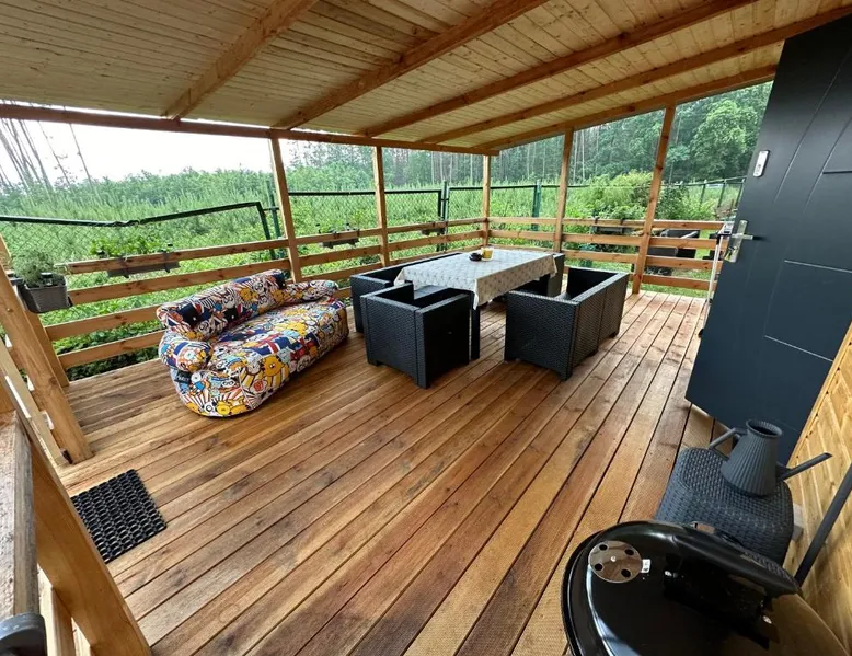 Beachfront Location: Oto Domek 1 in Międzyrzecz offers direct beachfront access and a spacious terrace. Guests can relax by the seaside and enjoy stunning coastal views. Comfortable Accommodations: The holiday home features one bedroom, a living room, and a fully equipped kitchen. Amenities include a terrace, kitchenette, and free on-site private parking. Dining and Leisure: A restaurant serving Polish cuisine is on-site, alongside an outdoor dining area. Additional facilities include a minimarket, outdoor play area, and barbecue facilities. Local Attractions: Located 42 mi from Zielona Góra Airport, nearby points of interest include The Monument of Jesus (21 mi), Stadium Miedzychod (25 mi), and City Art Center (26 mi). Walking and bike tours are available. Highly rated by guests. Guests will find a stovetop, a refrigerator, a dishwasher and a microwave in the fully equipped kitchen. The holiday home also comes with a barbecue. A seating area with a flat-screen TV, a tea and coffee maker and a terrace are offered in this holiday home. The unit has 3 beds.