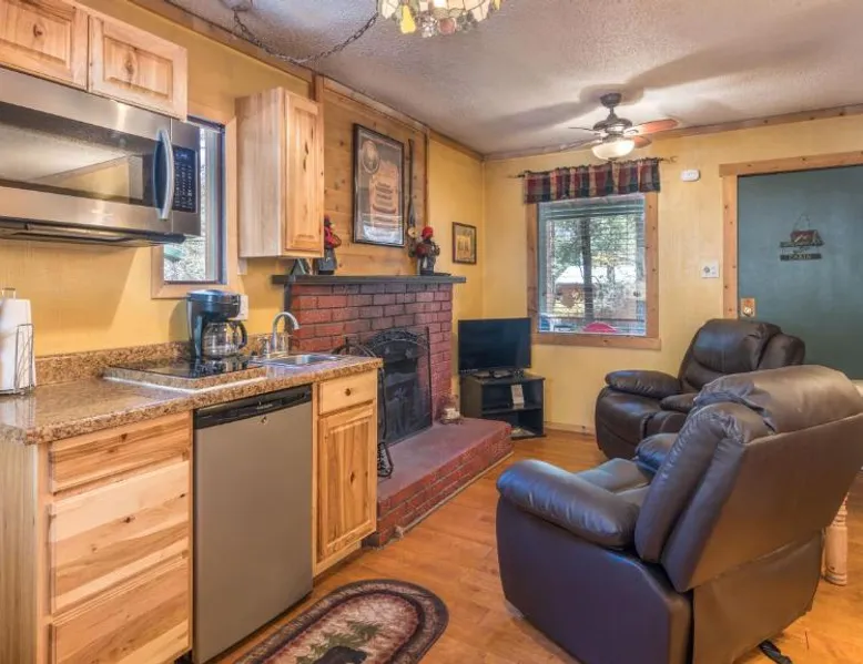 Comfortable Accommodations: Whispering Pine Cabins in Ruidoso offers comfortable holiday homes with air-conditioning, private bathrooms, and garden or mountain views. Each room features a balcony or terrace, ensuring a pleasant stay. Modern Amenities: Guests enjoy free WiFi, a sun terrace, and free on-site private parking. Additional facilities include a fully equipped kitchen, fireplace, and streaming services. The property also provides a paid shuttle service and concierge assistance. Local Attractions: Located 16 minutes from White Dove Gallery and 0.9 mi from Ruidoso River Museum, the cabins are near Mountain Arts Gallery (1.4 mi) and Adventure Mountain (2.9 mi). Smokey Bear Historical Park is 19 mi away. Guests appreciate the room comfort, convenient location, and cleanliness. The fireplace is a top feature of this apartment. Boasting a private entrance, this air-conditioned apartment comes with 1 living room, 2 separate bedrooms and 2 bathrooms with a bath and a shower. Guests will find a stovetop, a refrigerator, kitchenware and an oven in the well-equipped kitchen. The apartment also includes a barbecue. The spacious apartment features a flat-screen TV with streaming services, a tea and coffee maker, a seating area, a dining area as well as garden views. The unit has 3 beds.
