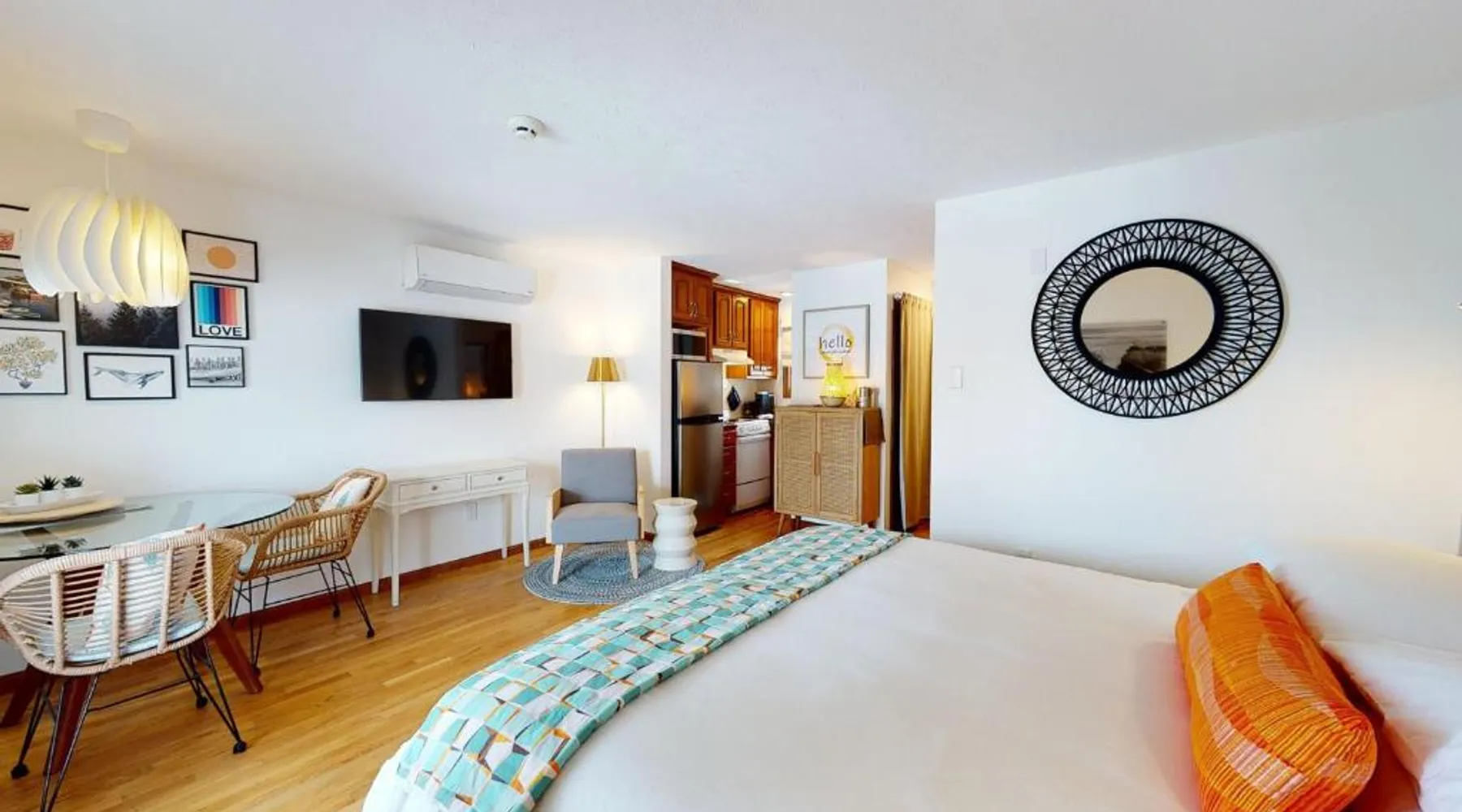 Comfortable Accommodations: Blue Shutters Inn and Studios in Ogunquit offers air-conditioned rooms with private bathrooms, walk-in showers, and free WiFi. Each room includes a seating area, TV, and parquet floors. Outdoor Spaces: Guests can relax in the garden or on the terrace, enjoying the outdoor fireplace and seating areas. The property also features a picnic area for outdoor dining. Breakfast and Amenities: A variety of breakfast options are available, including American, vegetarian, and gluten-free. Warm dishes are served daily, ensuring a pleasant start to the day. Convenient Location: Located 19 mi from Portsmouth International Airport, the inn is a short walk from Little Beach and Marginal Way Walk. Nearby attractions include Ogunquit Playhouse and Ogunquit Museum of American Art. Guests can make meals in the kitchenette that has a stovetop, a refrigerator, kitchenware and an oven. This air-conditioned studio is consisted of of a flat-screen TV with streaming services, a private bathroom as well as a balcony. The unit has 1 bed.