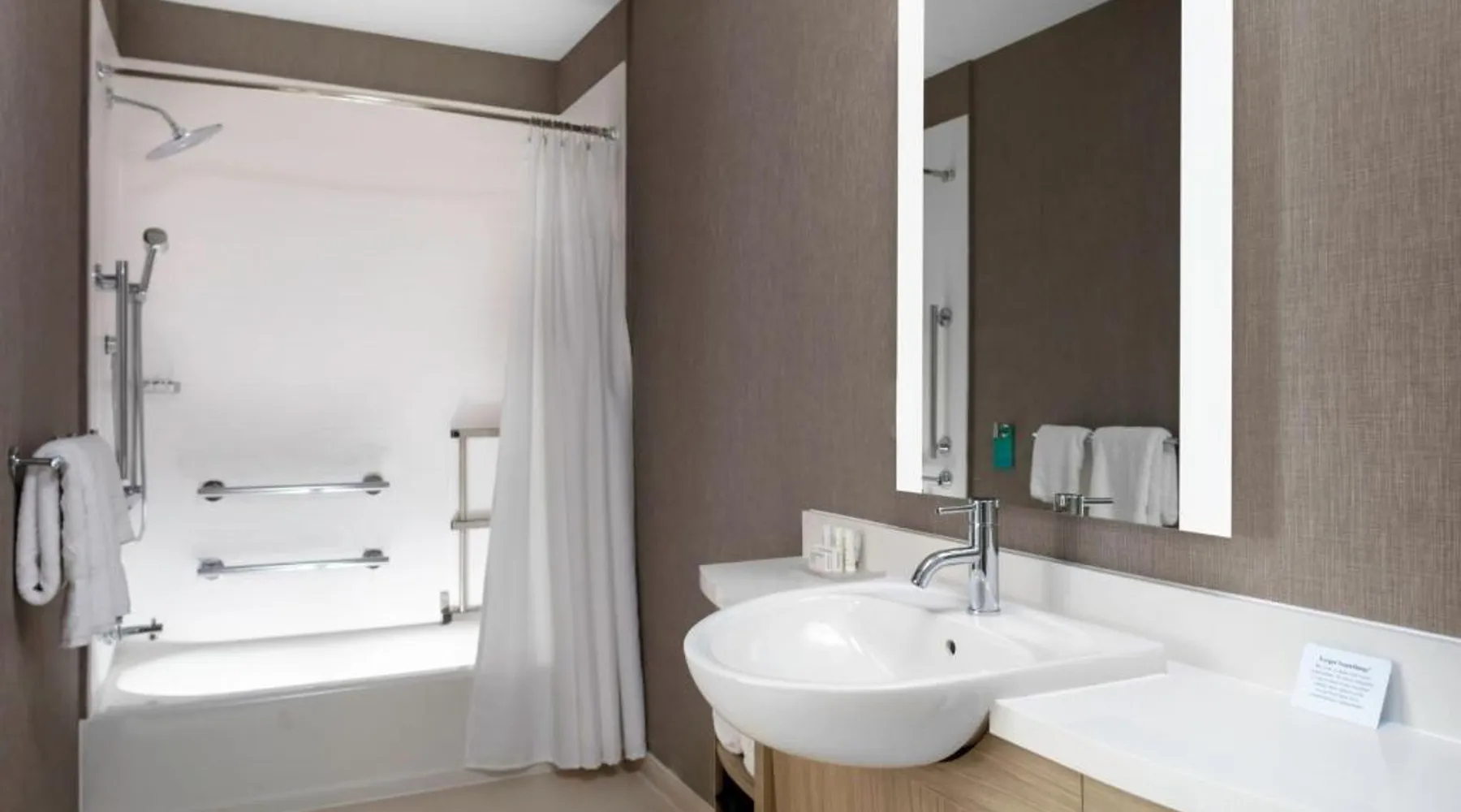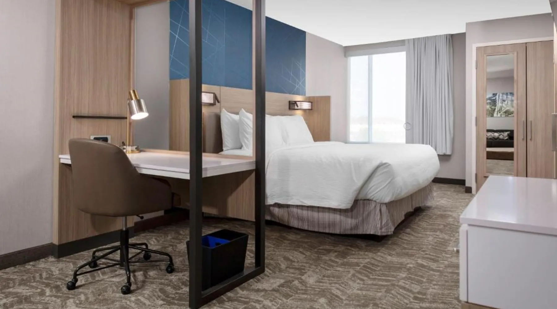 Comfortable Accommodations: SpringHill Suites Kansas City Airport in Kansas City offers rooms with air-conditioning, private bathrooms, and free WiFi. Guests enjoy amenities such as a saltwater swimming pool, fitness center, sun terrace, and indoor pool. Convenient Facilities: The hotel provides a lounge, outdoor fireplace, fitness room, and 24-hour front desk. Additional services include a minimarket, child-friendly buffet, business area, and express check-in and check-out. Prime Location: Located 4.3 mi from Kansas City International Airport, the hotel is near attractions like Lake Waukomis (3.1 mi) and National Golf Club of Kansas City (5.6 mi). Guests appreciate the room cleanliness, breakfast provided by the property, and room comfort.