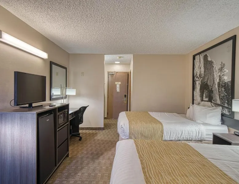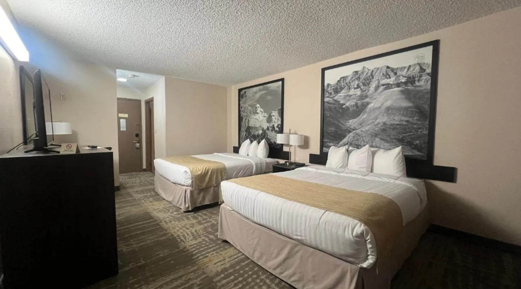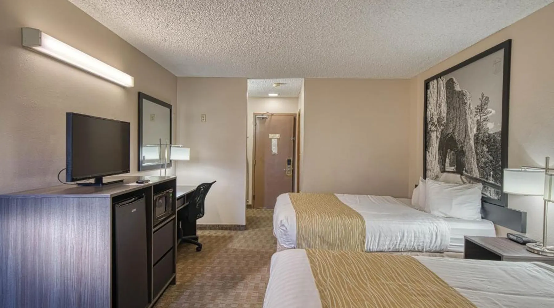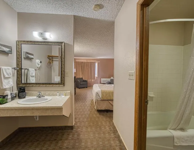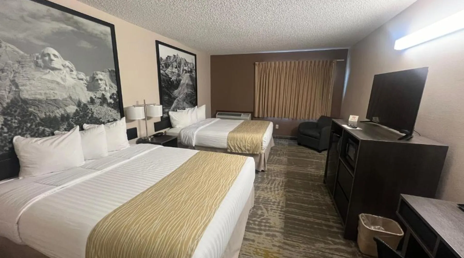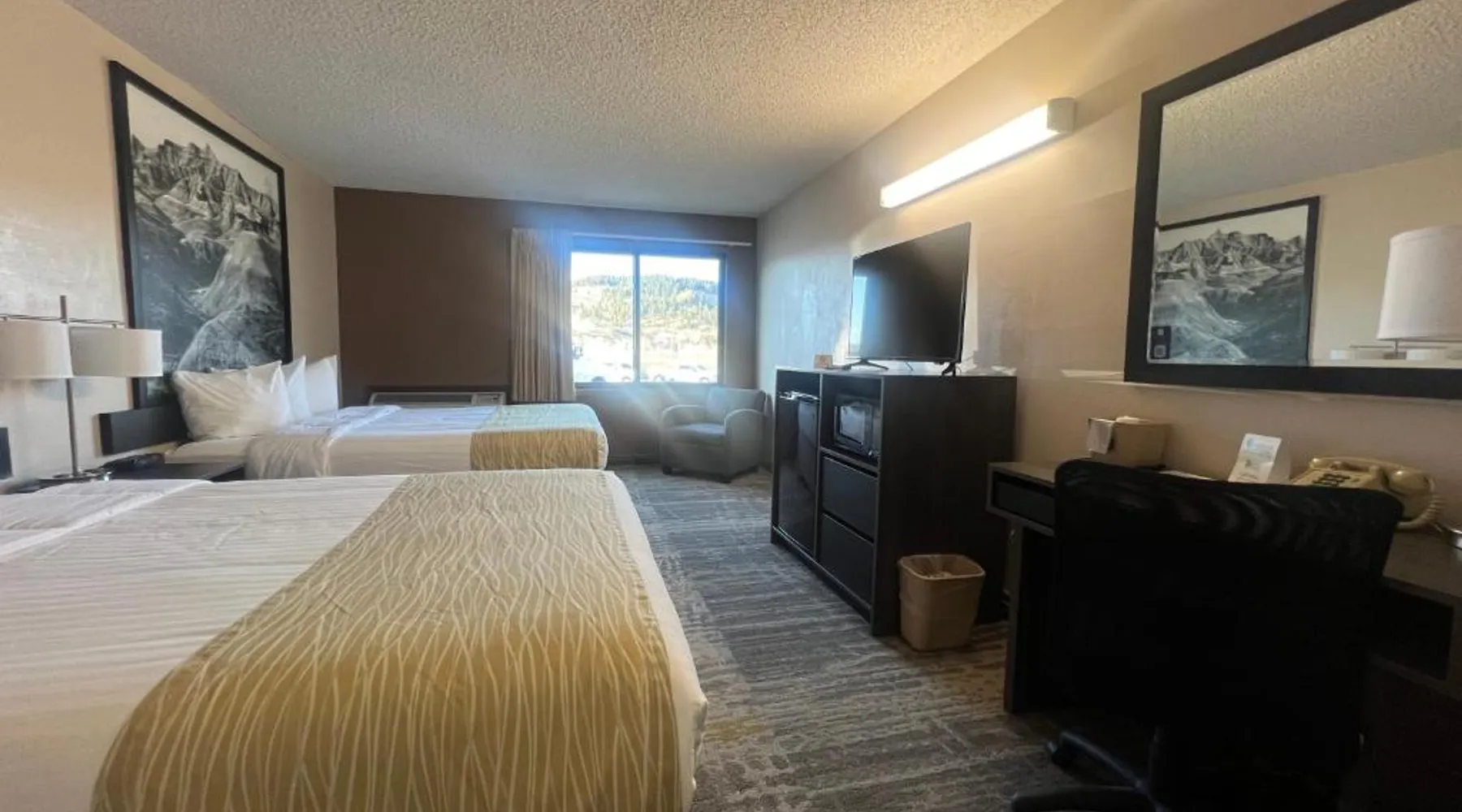 Comfortable Accommodations: Super 8 by Wyndham Sturgis in Sturgis offers family rooms with private bathrooms, air-conditioning, and mountain views. Each room includes a work desk, TV, and free WiFi. Exceptional Facilities: Guests can relax on the terrace or enjoy the bar. The hotel features a hot tub, lounge, and outdoor seating area. Additional amenities include a kitchenette, balcony, and patio. Convenient Services: The property provides free on-site private parking, a 24-hour front desk, and daily housekeeping. Free WiFi is available throughout the hotel. Local Attractions: Located 40 mi from Rapid City Regional Airport, the hotel is near attractions such as Sturgis Motorcycle Museum & Hall Of Fame (1.5 mi) and Journey Museum (30 mi). Offering free toiletries, this quadruple room includes a private bathroom with a walk-in shower, a bath and a hairdryer. The air-conditioned quadruple room offers a flat-screen TV, a private entrance, soundproof walls, a tea and coffee maker as well as mountain views. The unit has 2 beds.