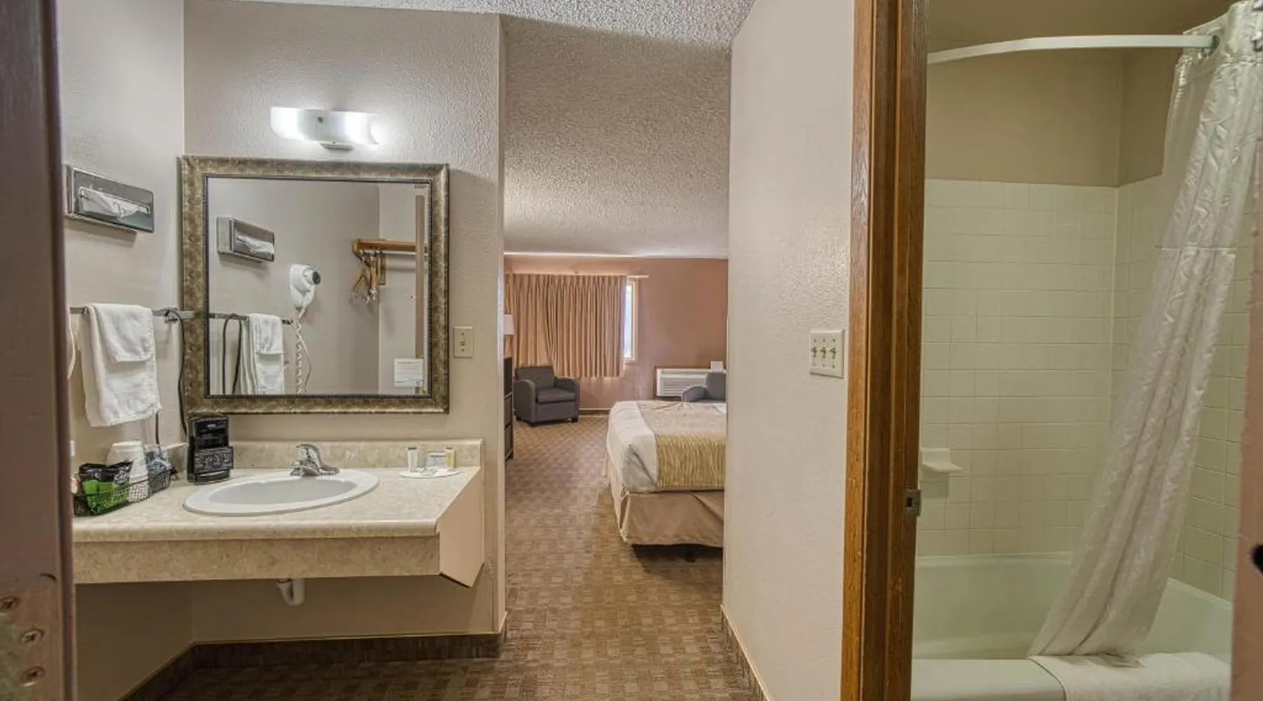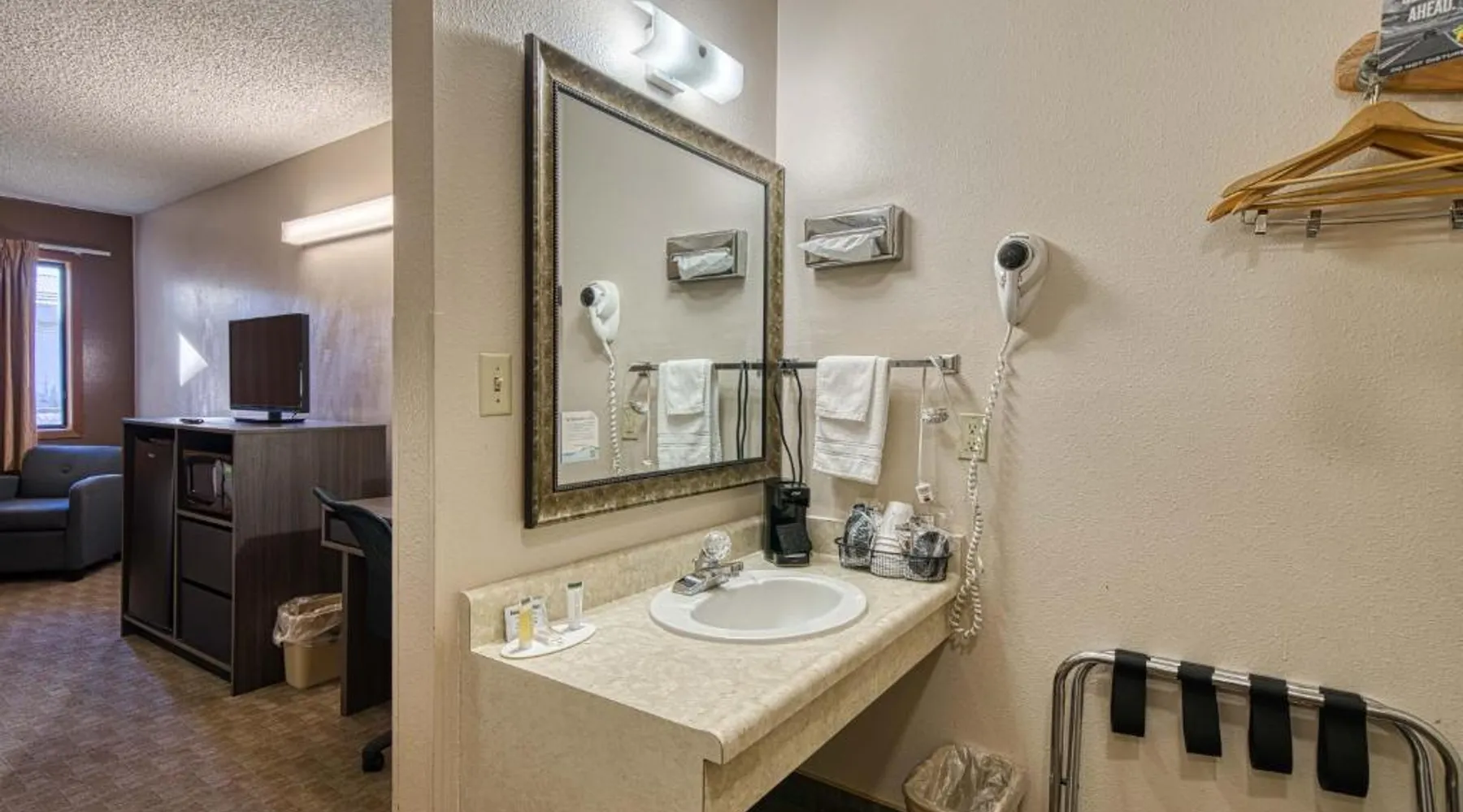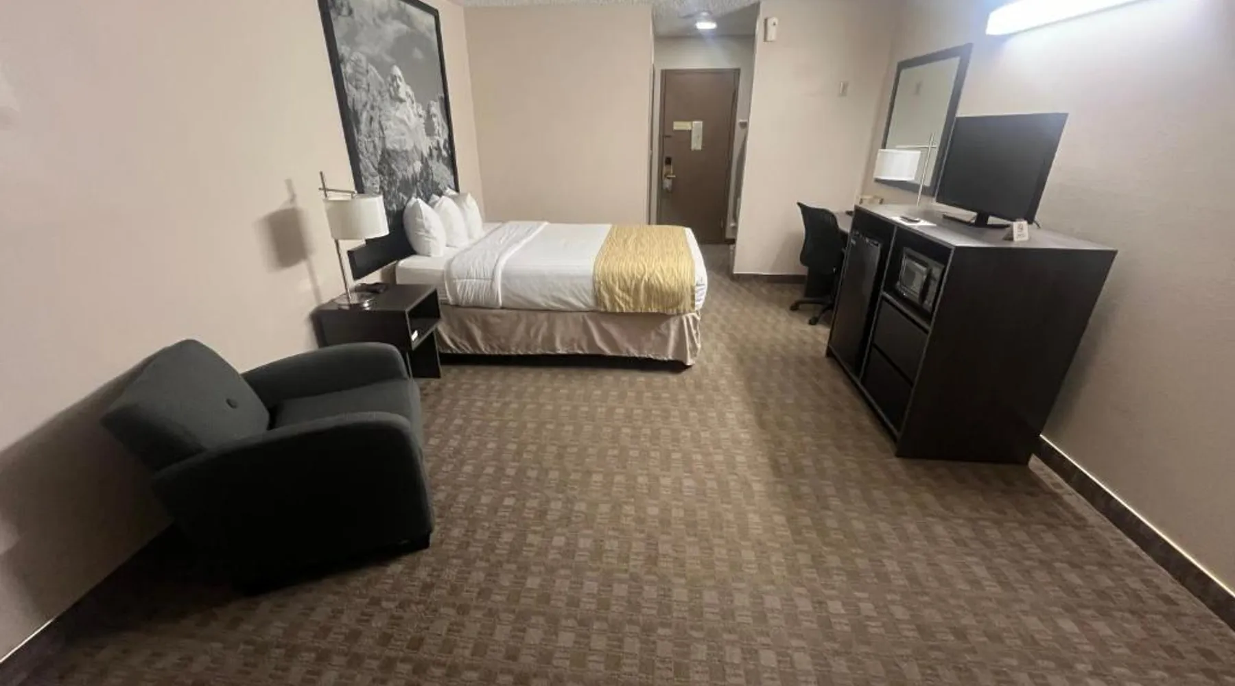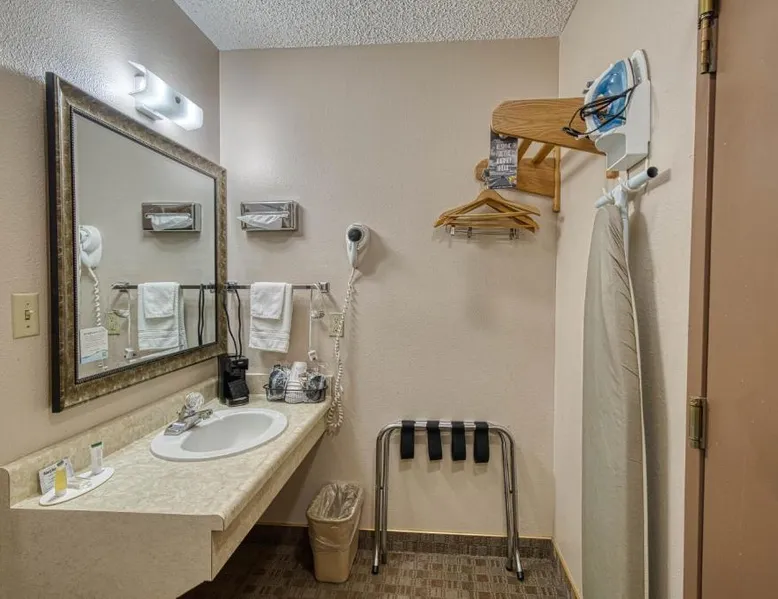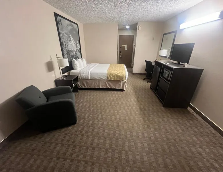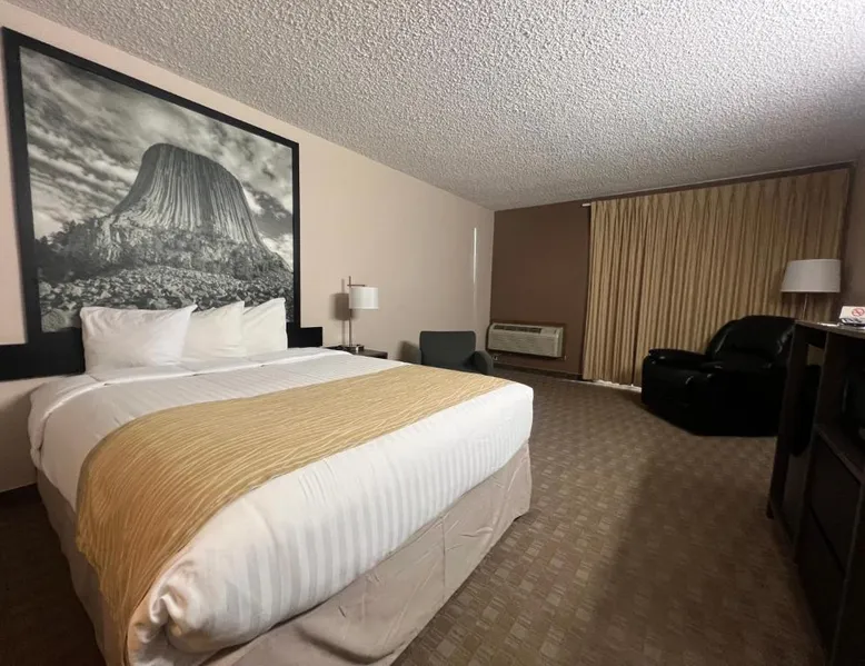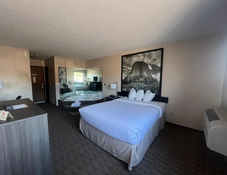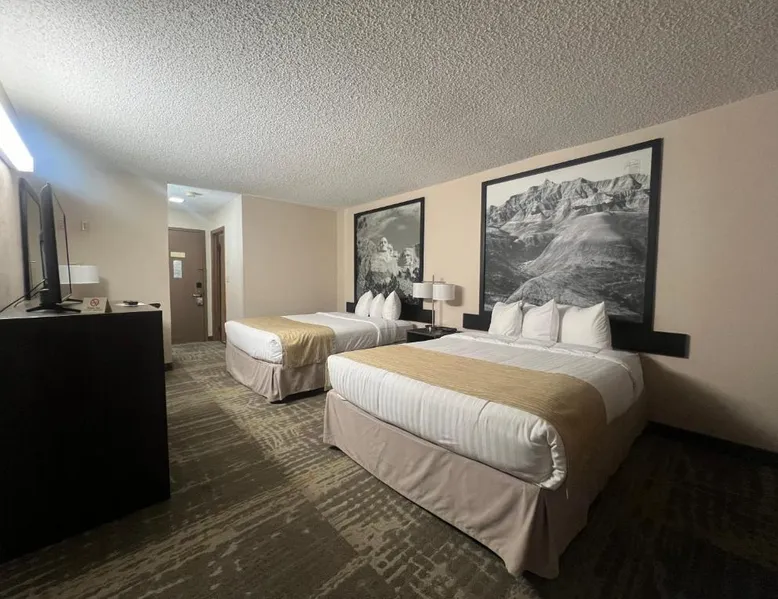 Comfortable Accommodations: Super 8 by Wyndham Sturgis in Sturgis offers family rooms with private bathrooms, air-conditioning, and mountain views. Each room includes a work desk, TV, and free WiFi. Exceptional Facilities: Guests can relax on the terrace or enjoy the bar. The hotel features a hot tub, lounge, and outdoor seating area. Additional amenities include a kitchenette, balcony, and patio. Convenient Services: The property provides free on-site private parking, a 24-hour front desk, and daily housekeeping. Free WiFi is available throughout the hotel. Local Attractions: Located 40 mi from Rapid City Regional Airport, the hotel is near attractions such as Sturgis Motorcycle Museum & Hall Of Fame (1.5 mi) and Journey Museum (30 mi). Offering free toiletries, this quadruple room includes a private bathroom with a walk-in shower, a bath and a hairdryer. The air-conditioned quadruple room offers a flat-screen TV, a private entrance, soundproof walls, a tea and coffee maker as well as mountain views. The unit has 2 beds.