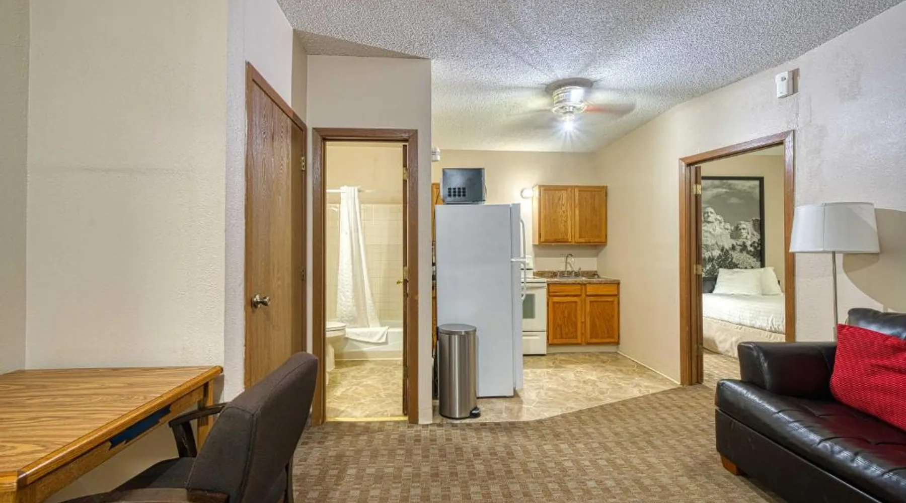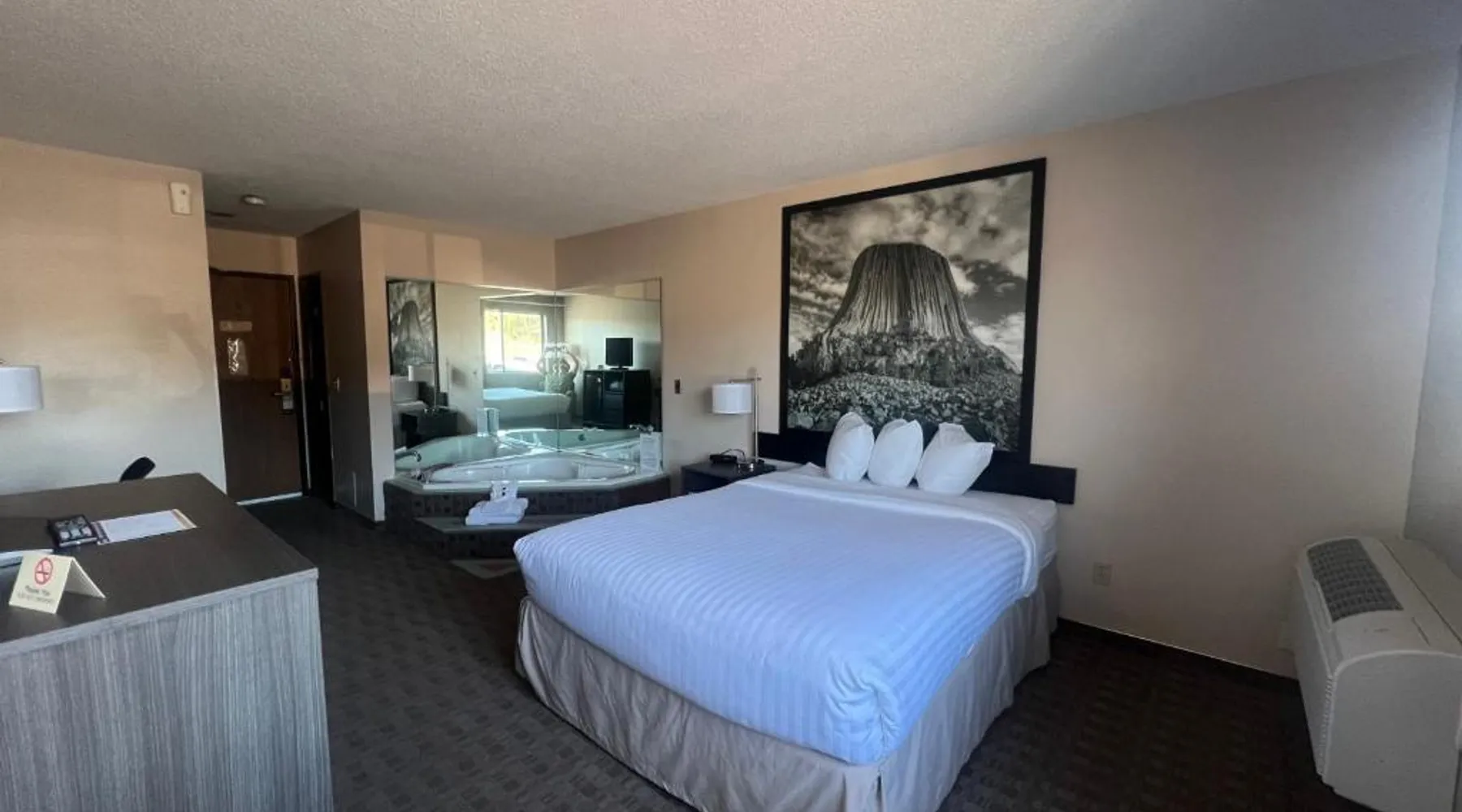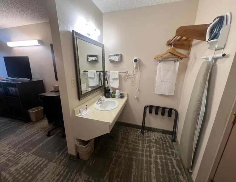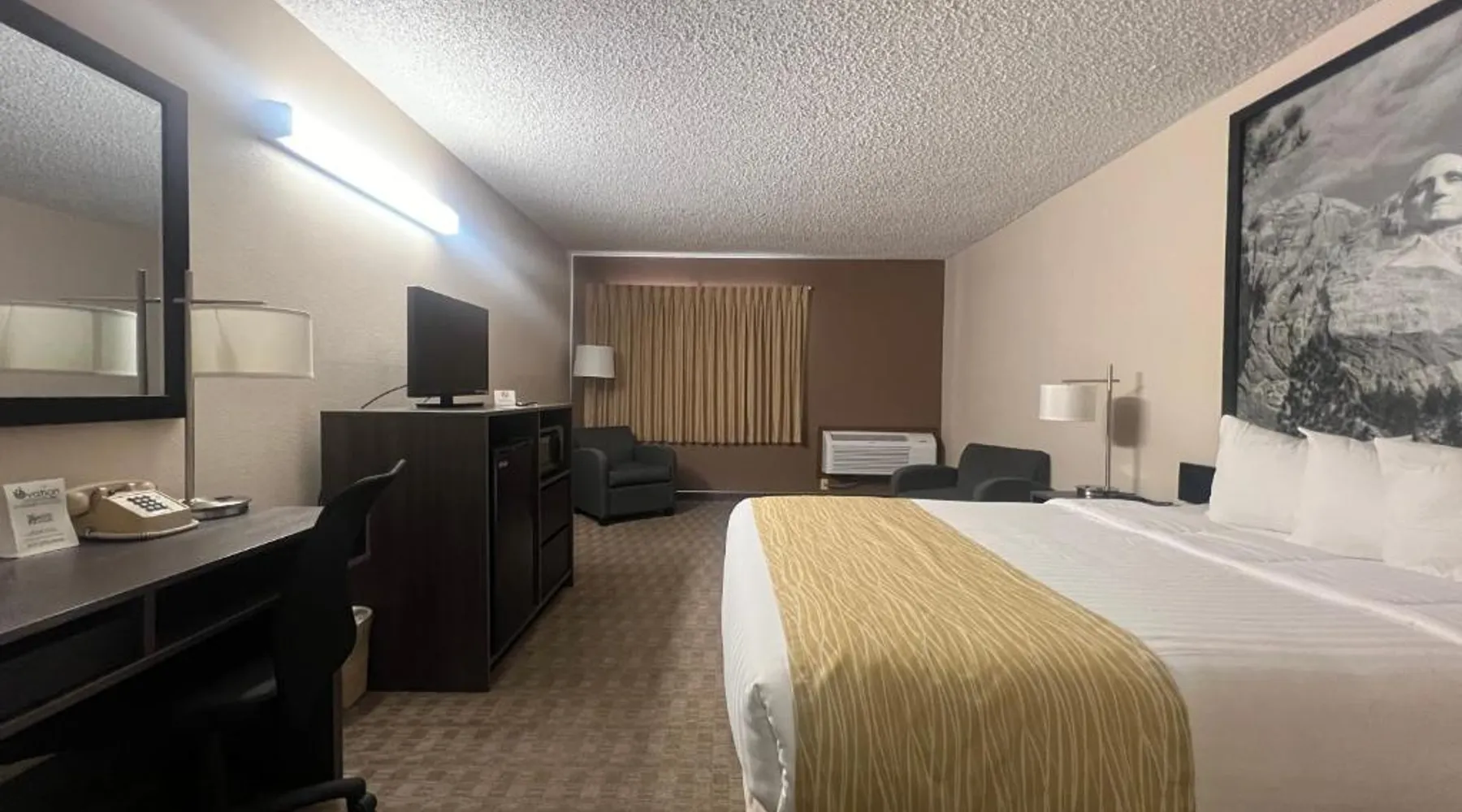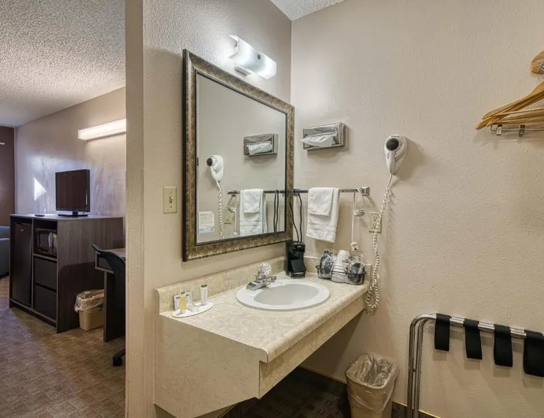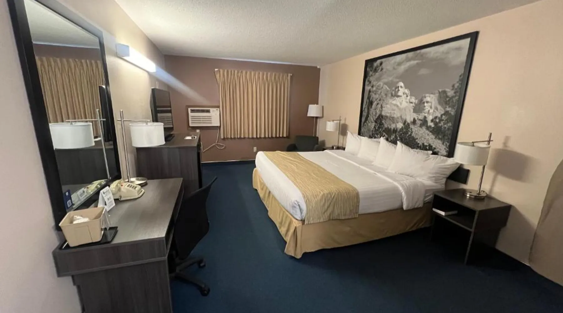 Comfortable Accommodations: Super 8 by Wyndham Sturgis in Sturgis offers family rooms with private bathrooms, air-conditioning, and mountain views. Each room includes a work desk, TV, and free WiFi. Exceptional Facilities: Guests can relax on the terrace or enjoy the bar. The hotel features a hot tub, lounge, and outdoor seating area. Additional amenities include a kitchenette, balcony, and patio. Convenient Services: The property provides free on-site private parking, a 24-hour front desk, and daily housekeeping. Free WiFi is available throughout the hotel. Local Attractions: Located 40 mi from Rapid City Regional Airport, the hotel is near attractions such as Sturgis Motorcycle Museum & Hall Of Fame (1.5 mi) and Journey Museum (30 mi). Offering free toiletries, this quadruple room includes a private bathroom with a walk-in shower, a bath and a hairdryer. The air-conditioned quadruple room offers a flat-screen TV, a private entrance, soundproof walls, a tea and coffee maker as well as mountain views. The unit has 2 beds.