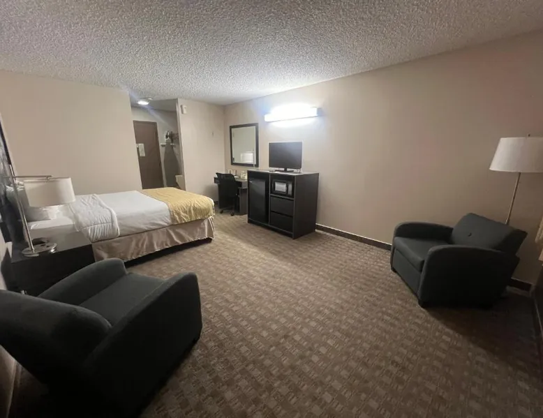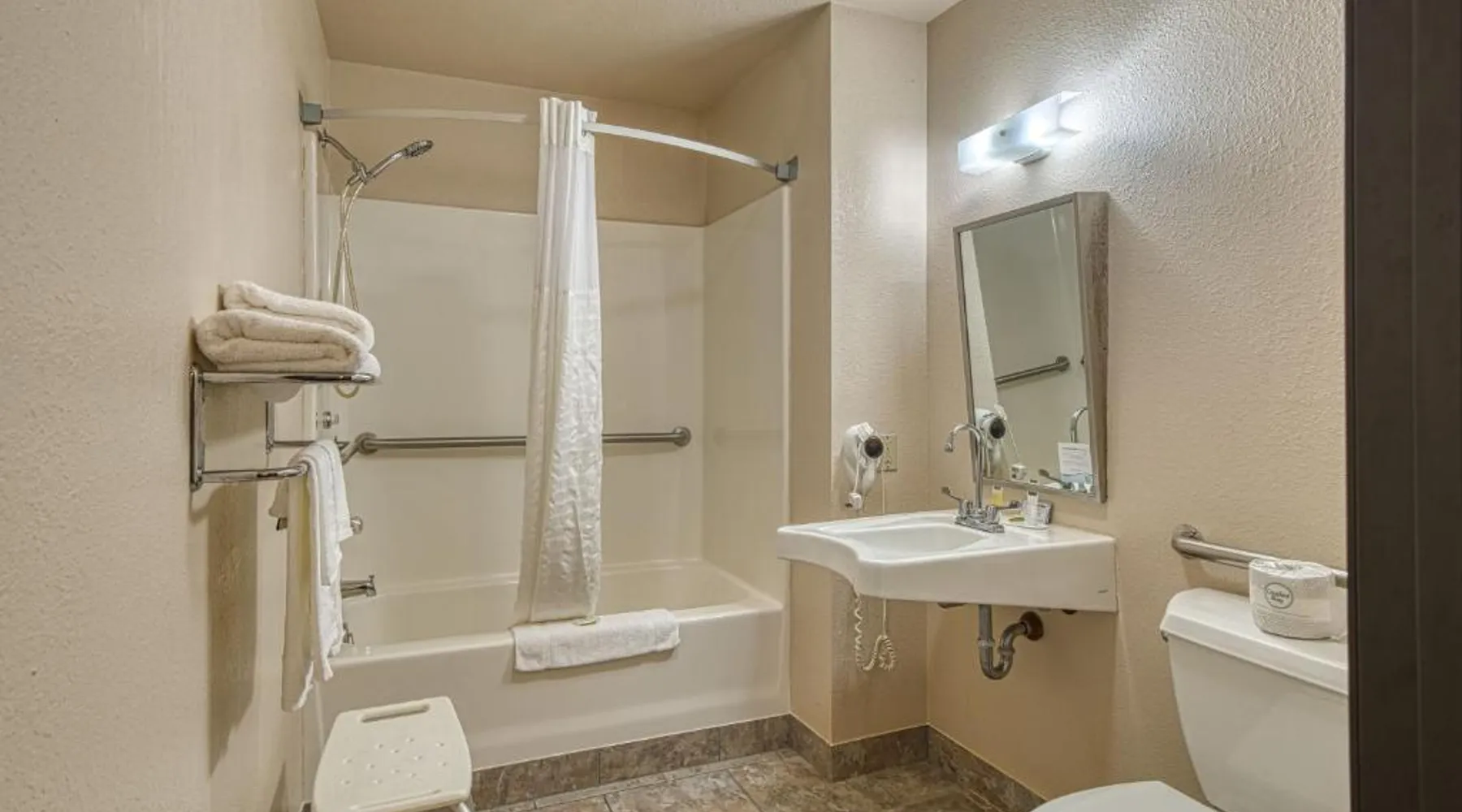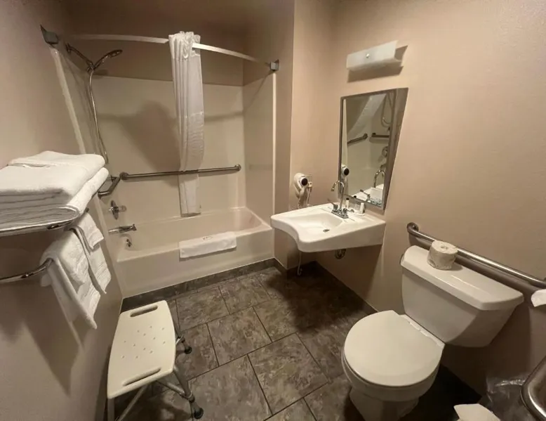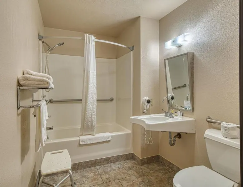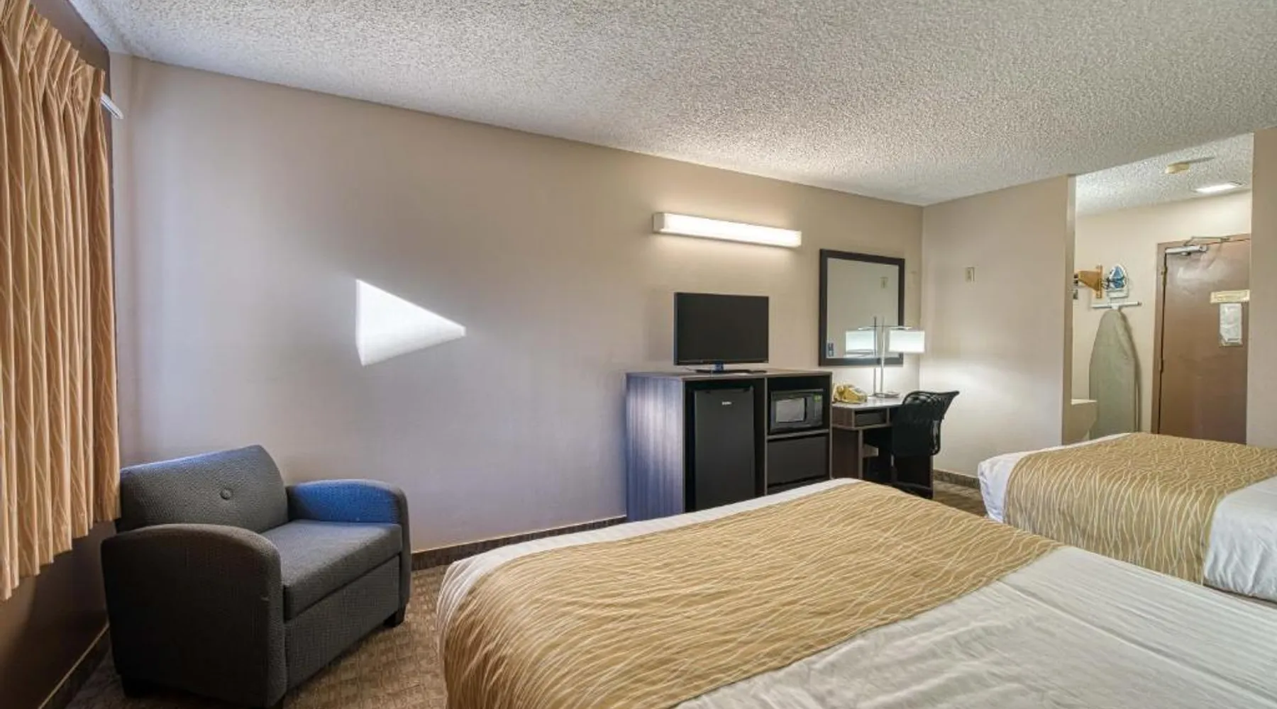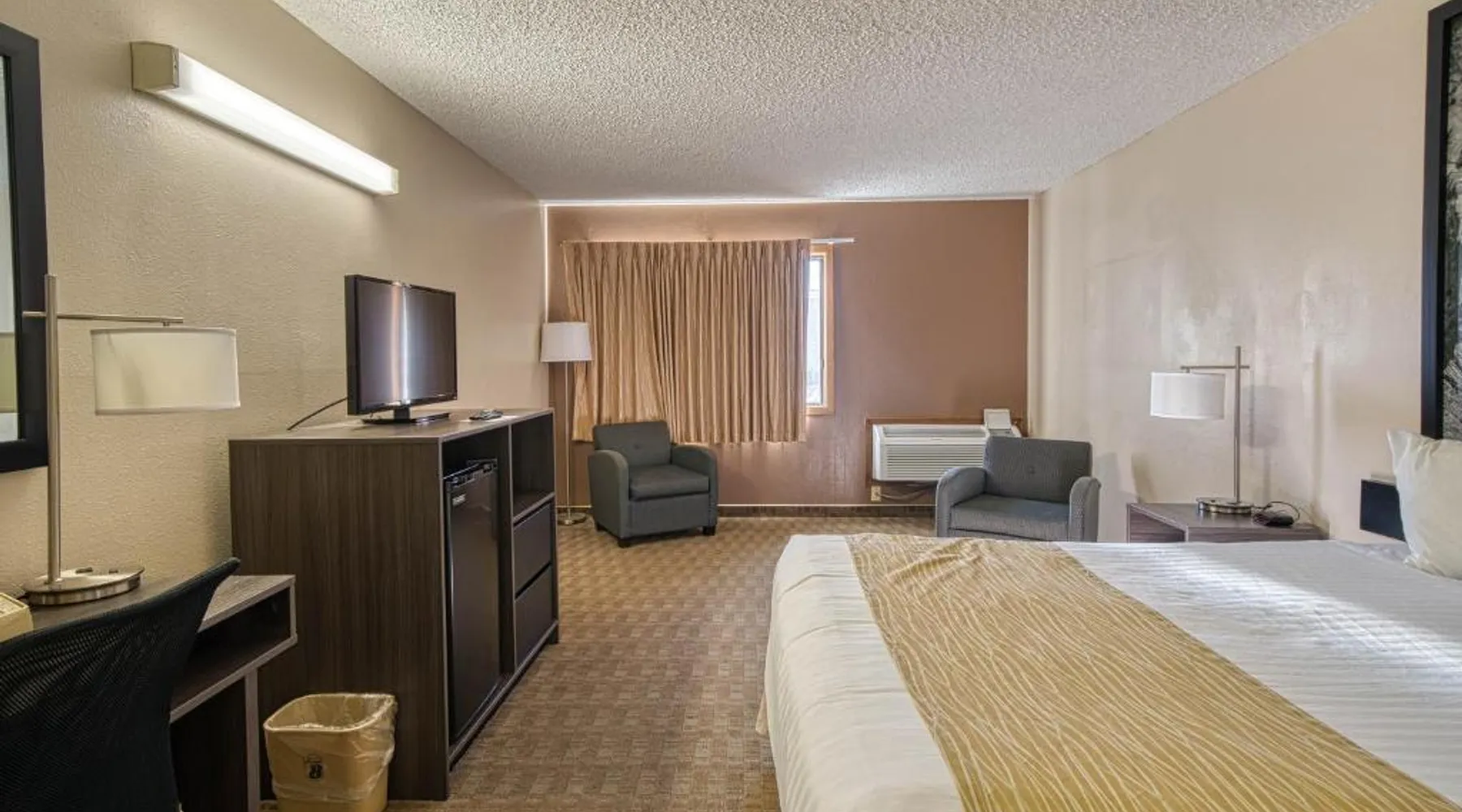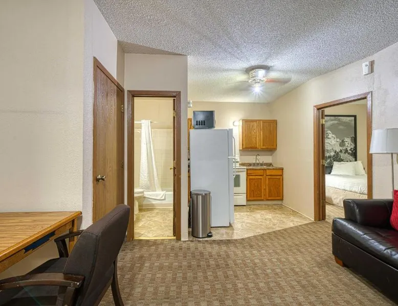 Comfortable Accommodations: Super 8 by Wyndham Sturgis in Sturgis offers family rooms with private bathrooms, air-conditioning, and mountain views. Each room includes a work desk, TV, and free WiFi. Exceptional Facilities: Guests can relax on the terrace or enjoy the bar. The hotel features a hot tub, lounge, and outdoor seating area. Additional amenities include a kitchenette, balcony, and patio. Convenient Services: The property provides free on-site private parking, a 24-hour front desk, and daily housekeeping. Free WiFi is available throughout the hotel. Local Attractions: Located 40 mi from Rapid City Regional Airport, the hotel is near attractions such as Sturgis Motorcycle Museum & Hall Of Fame (1.5 mi) and Journey Museum (30 mi). Offering free toiletries, this quadruple room includes a private bathroom with a walk-in shower, a bath and a hairdryer. The air-conditioned quadruple room offers a flat-screen TV, a private entrance, soundproof walls, a tea and coffee maker as well as mountain views. The unit has 2 beds.