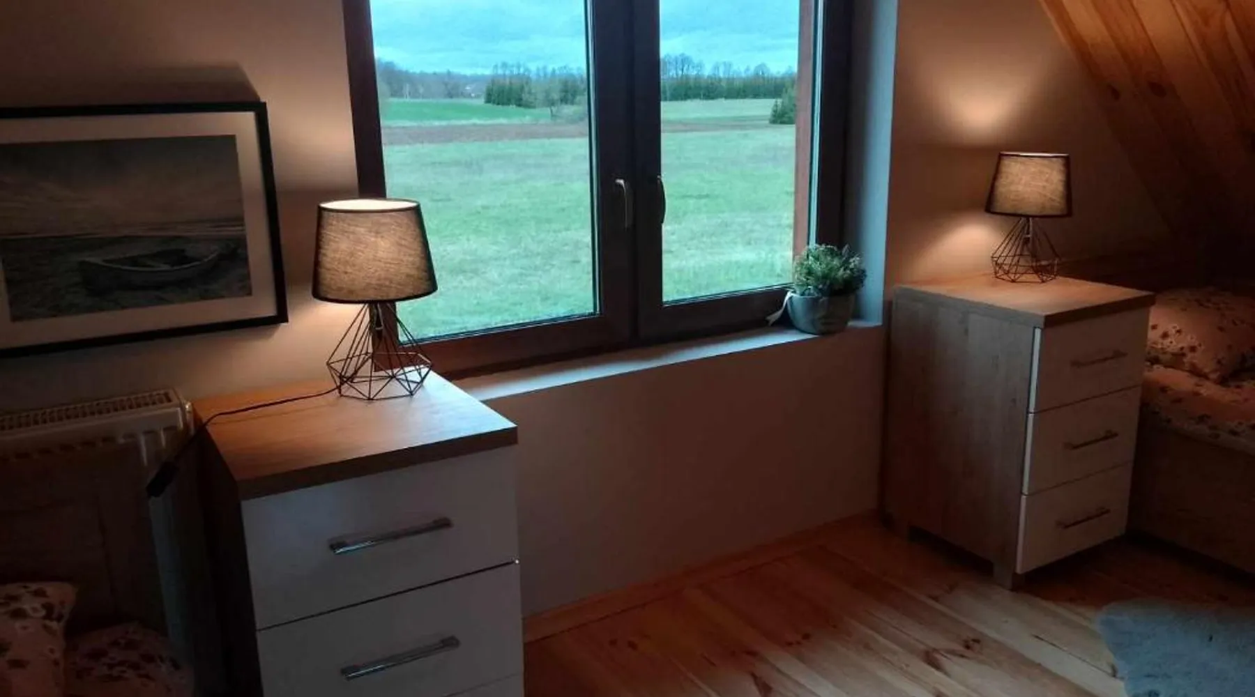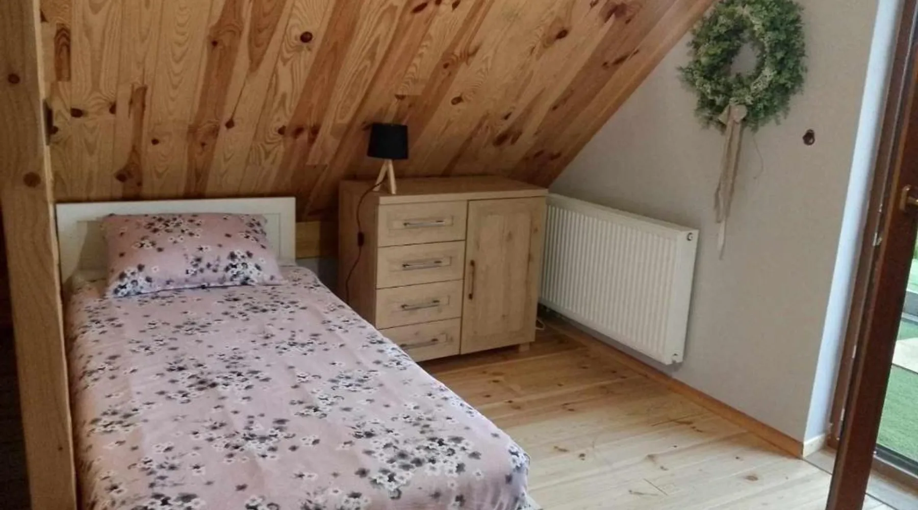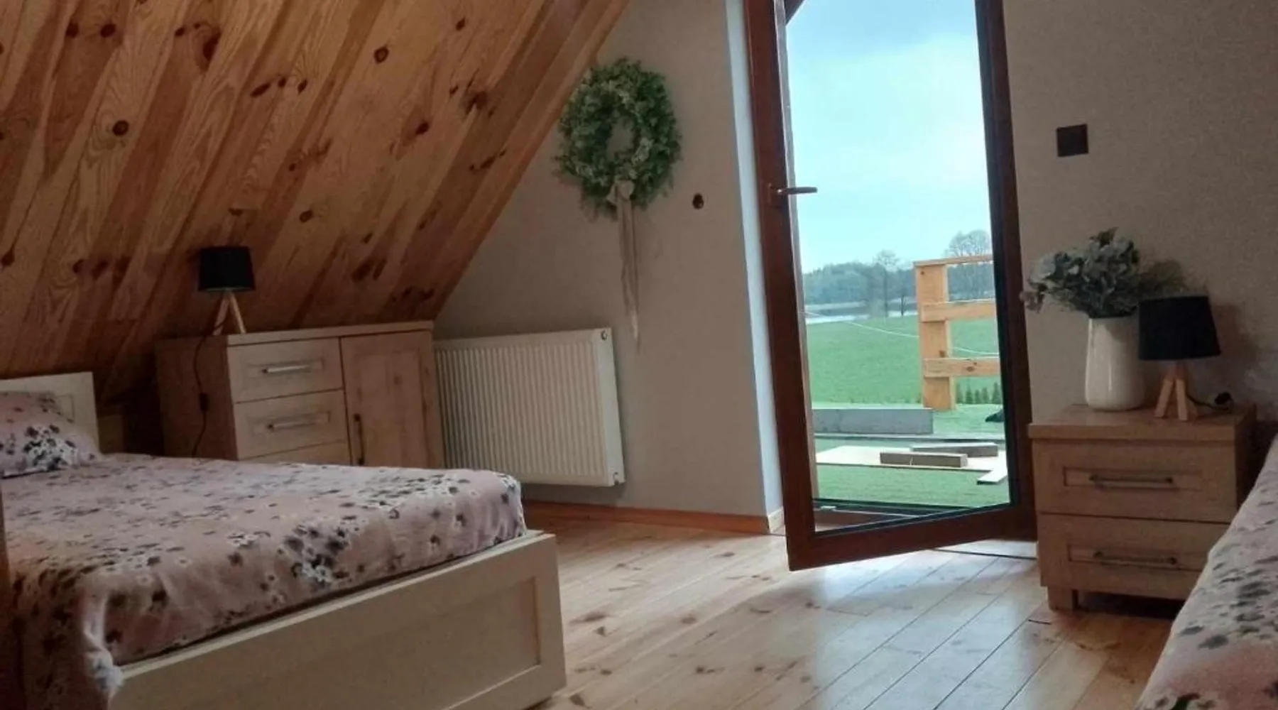 Beachfront Location: Zakątek na Mazurach II in Romoty offers direct beachfront access and stunning lake views. Guests can relax on the sun terrace or in the garden, enjoying the serene surroundings. Outdoor Amenities: The property features an outdoor seating area, picnic spots, and barbecue facilities. Free on-site private parking is available for convenience. Comfortable Accommodations: The holiday home includes two bedrooms, a bathroom, and a spacious living room. Amenities include a kitchenette, balcony, washing machine, and a cozy fireplace. Nearby Attractions: Located 99 mi from Olsztyn-Mazury Airport, Zakątek na Mazurach II is close to Augustow Train Station (21 mi), Augustów Primeval Forest (28 mi), and Rajgrodzkie Lake (15 mi). Highly rated by guests. This holiday home's special feature is the fireplace. Featuring a private entrance, this holiday home consists of 1 living room, 2 separate bedrooms and 1 bathroom with a shower and a hairdryer. Guests will find a stovetop, a refrigerator, a dishwasher and kitchenware in the kitchen. The holiday home also provides guests with a barbecue. Boasting a terrace with lake views, this holiday home also provides a washing machine and a flat-screen TV. The unit offers 5 beds.