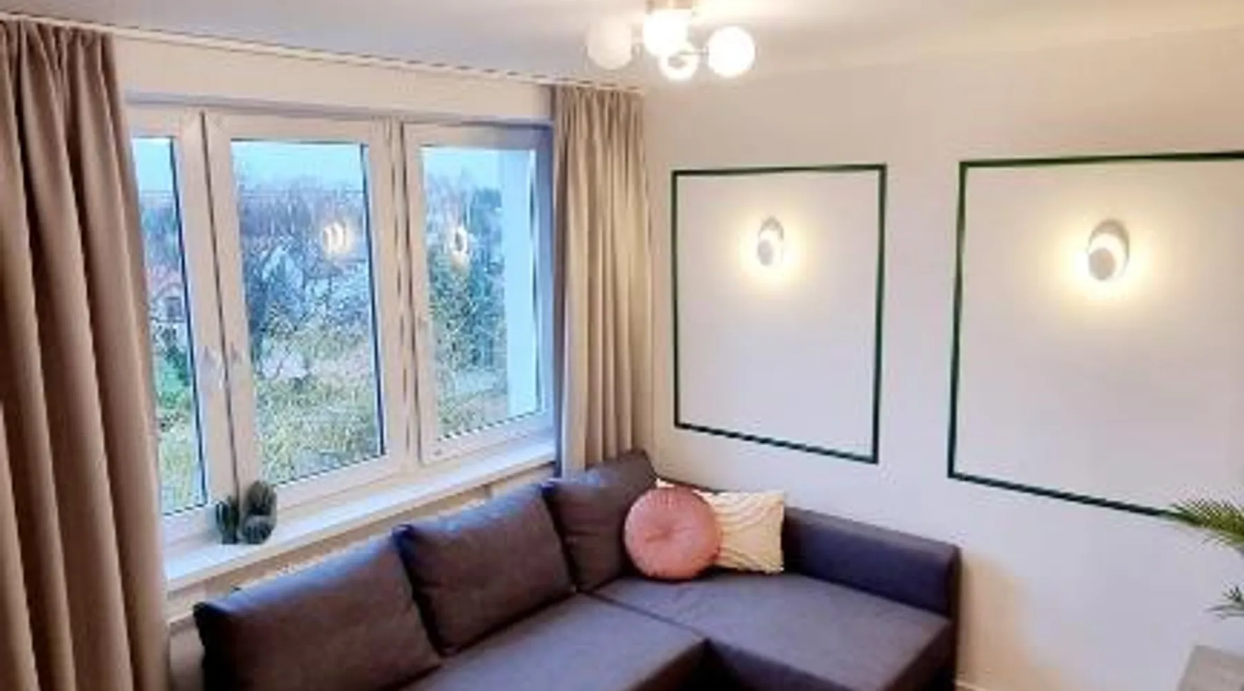 Comfortable Accommodations: Apartament Spokojna przy SUNTAGO DEEPSPOT Mszczonów in Mszczonów offers a one-bedroom apartment with a living room and a kitchenette. The property features a TV and free WiFi, ensuring a pleasant stay. Convenient Facilities: Guests benefit from private and express check-in and check-out services, family rooms, and free on-site parking. The apartment includes a bathroom and a comfortable living space, highly rated for room cleanliness and comfort. Local Attractions: Located 25 mi from Warsaw Frederic Chopin Airport, the apartment is near Babiniec, Zespół Domu Fabrykanta, and other attractions. Walking tours and hiking are popular activities in the surrounding area. The apartment's kitchenette is available for cooking and storing food. This apartment provides heating and a flat-screen TV. The unit offers 2 beds.