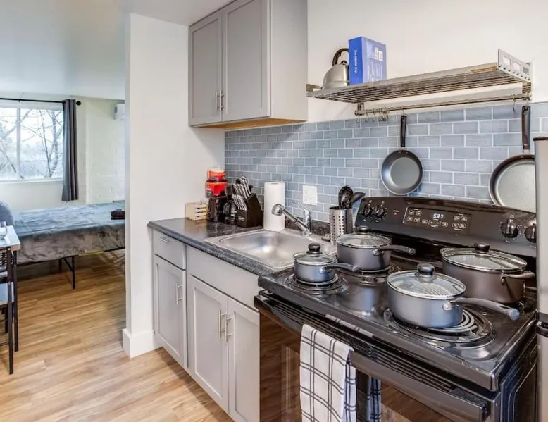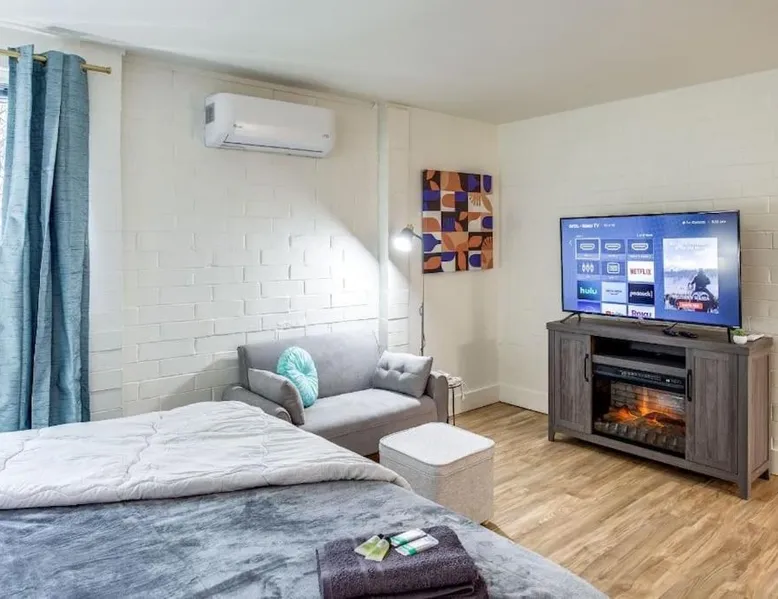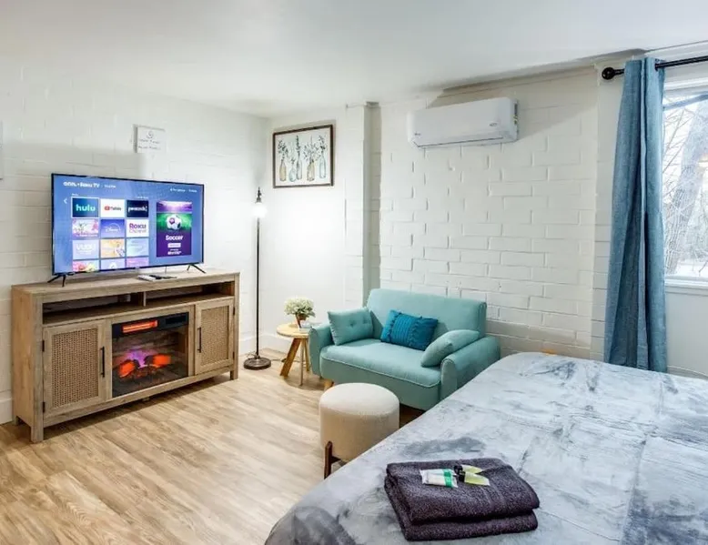 Comfortable Living Space: Studio w/ King Bed near Dwtn in Rochester offers a spacious apartment with one bedroom and one bathroom. Free on-site private parking is available for guests. Pet-Friendly Environment: The apartment welcomes pets, ensuring a comfortable stay for travelers with animals. Convenient Location: Located 8.1 mi from Greater Rochester International Airport, the property is a 19-minute walk from Seneca Park. Nearby attractions include Rochester Riverside Convention Center and The National Museum of Play, each 3.1 mi away. Highly Rated by Guests: Guests appreciate the spacious layout and excellent service. The unit has 1 bed.