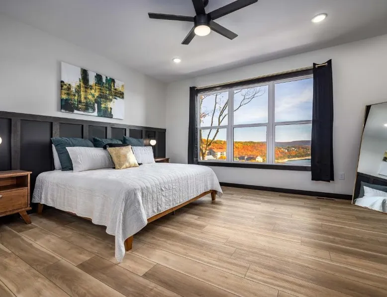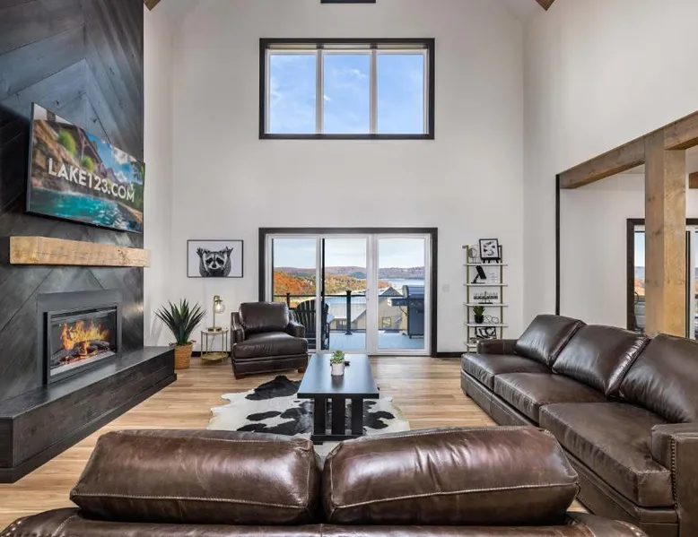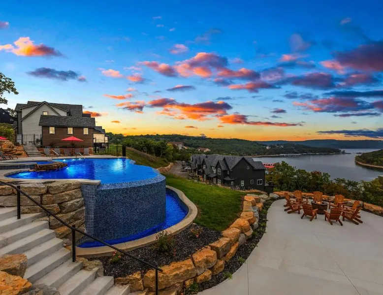 Spacious Accommodations: Luxury 7BED Lakefront Lodge in Kimberling City offers seven bedrooms and seven bathrooms. The spacious holiday home includes a living room, dining area, and balcony with lake views. Resort Amenities: Guests enjoy a year-round outdoor swimming pool, fitness room, hot tub, waterpark, games room, and children's playground. Additional amenities include air-conditioning, washing machine, and a fully equipped kitchen with modern appliances. Local Attractions: Silver Dollar City is 12 mi away, Mickey Gilley Theater and Titanic Museum are 16 mi distant, and Table Rock State Park lies 19 mi from the property. Other attractions include Branson Landing and College Of The Ozarks, each approximately 21 mi away. This holiday home's special features are the hot tub and the fireplace. Guests will find a stovetop, a refrigerator, a dishwasher and kitchenware in the fully equipped kitchen. The holiday home also provides guests with a barbecue. The spacious air-conditioned holiday home provides a TV with cable channels, a washing machine, a tea and coffee maker, a dining area as well as lake views. The unit offers 8 beds.