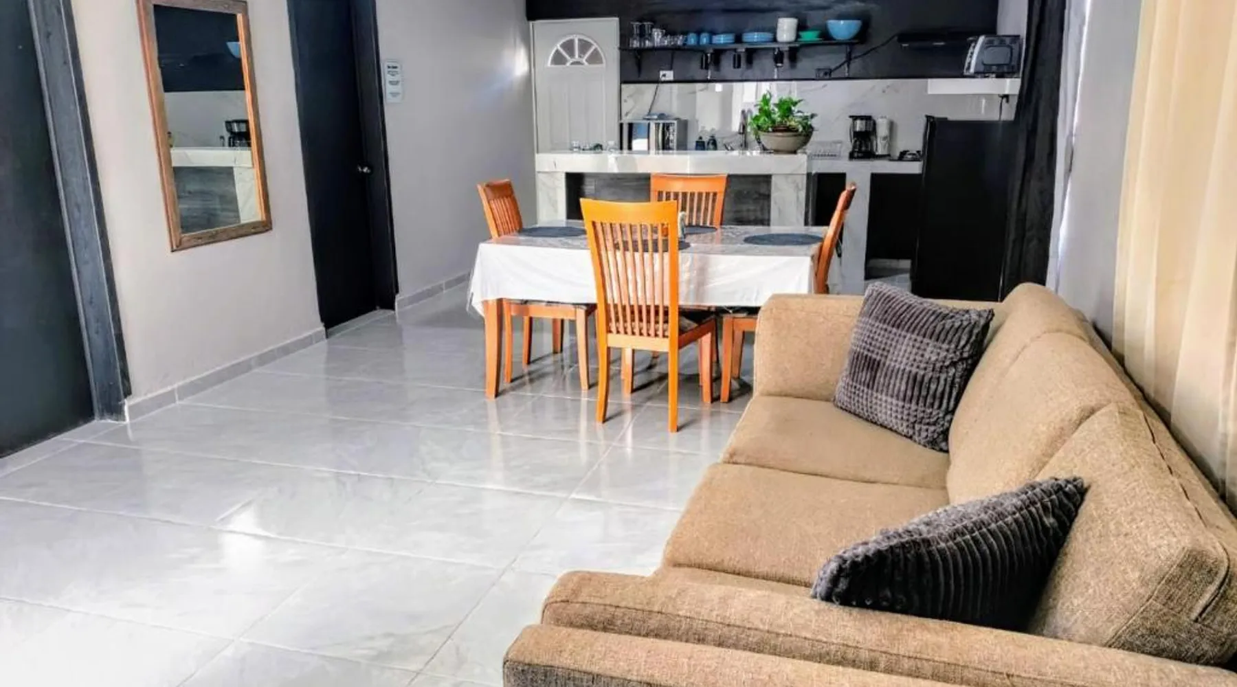Comfortable Accommodations: Casas centro Loreto in Loreto offers apartment-style accommodations with free WiFi, air-conditioning, and family rooms. Each unit includes a kitchenette, private bathroom, and streaming services. Modern Amenities: Guests can enjoy a balcony, patio, dining area, and sofa. Additional features include a coffee machine, microwave, and interconnected rooms. Convenient Location: Located 1.2 mi from Loreto International Airport, the property is a 17-minute walk from Zaragoza Beach. Nearby attractions include the Loreto Marina and the Loreto Museum. Guest Favorites: Guests appreciate the convenient location, nearby shops, and well-equipped kitchen. Featuring 2 bedrooms and 1 bathroom, this air-conditioned holiday home provides a well-fitted kitchen and a dining area. The holiday home's kitchen, which features a microwave, is available for cooking and storing food. Boasting a patio, this holiday home also features a coffee machine and a flat-screen TV with streaming services. The unit offers 3 beds.