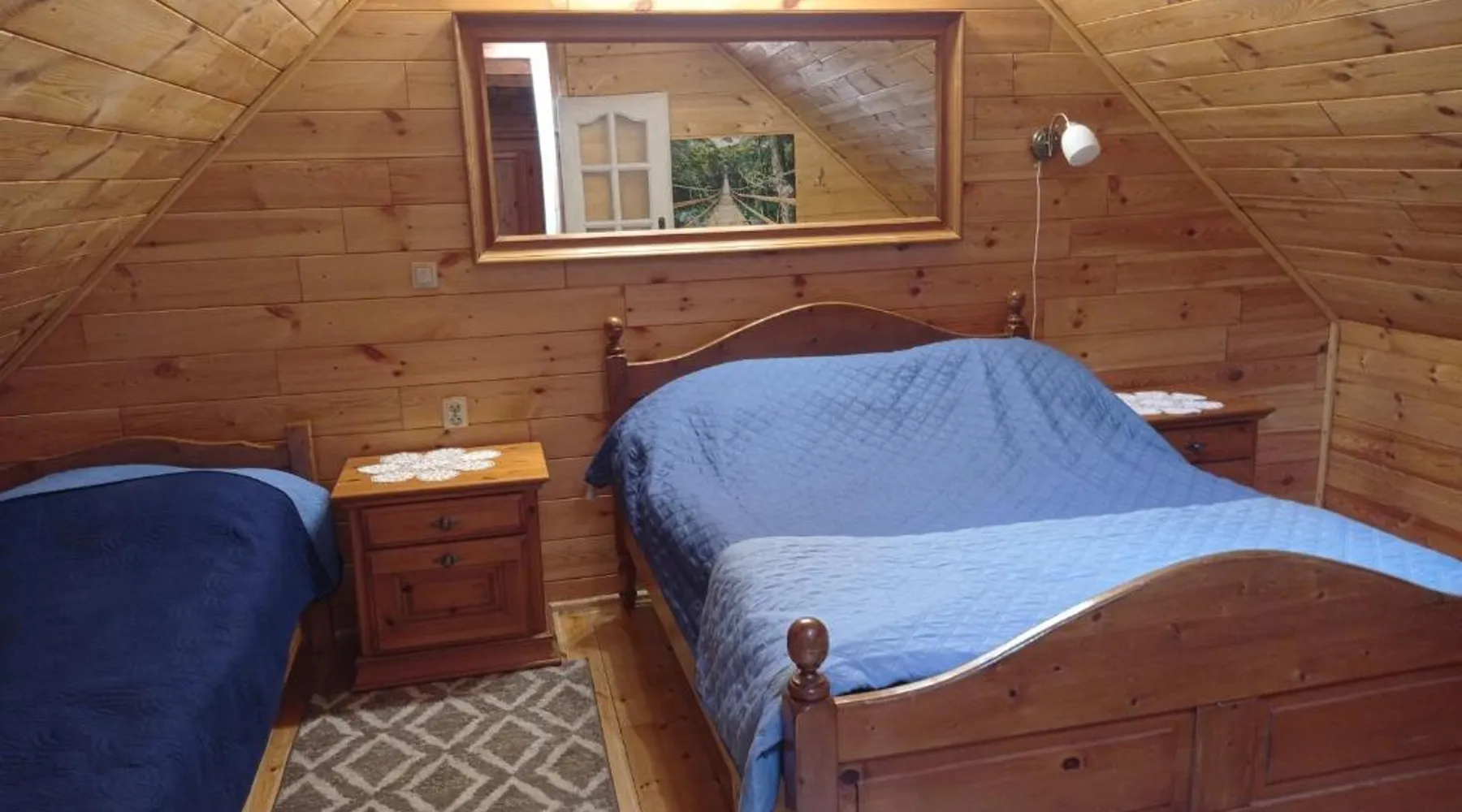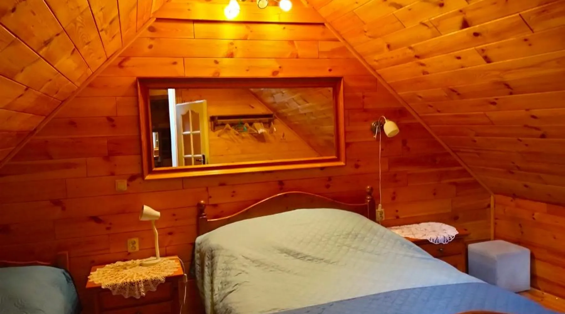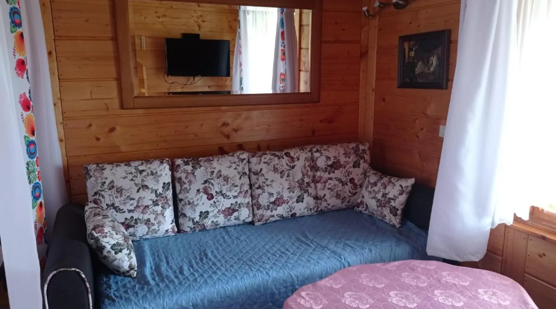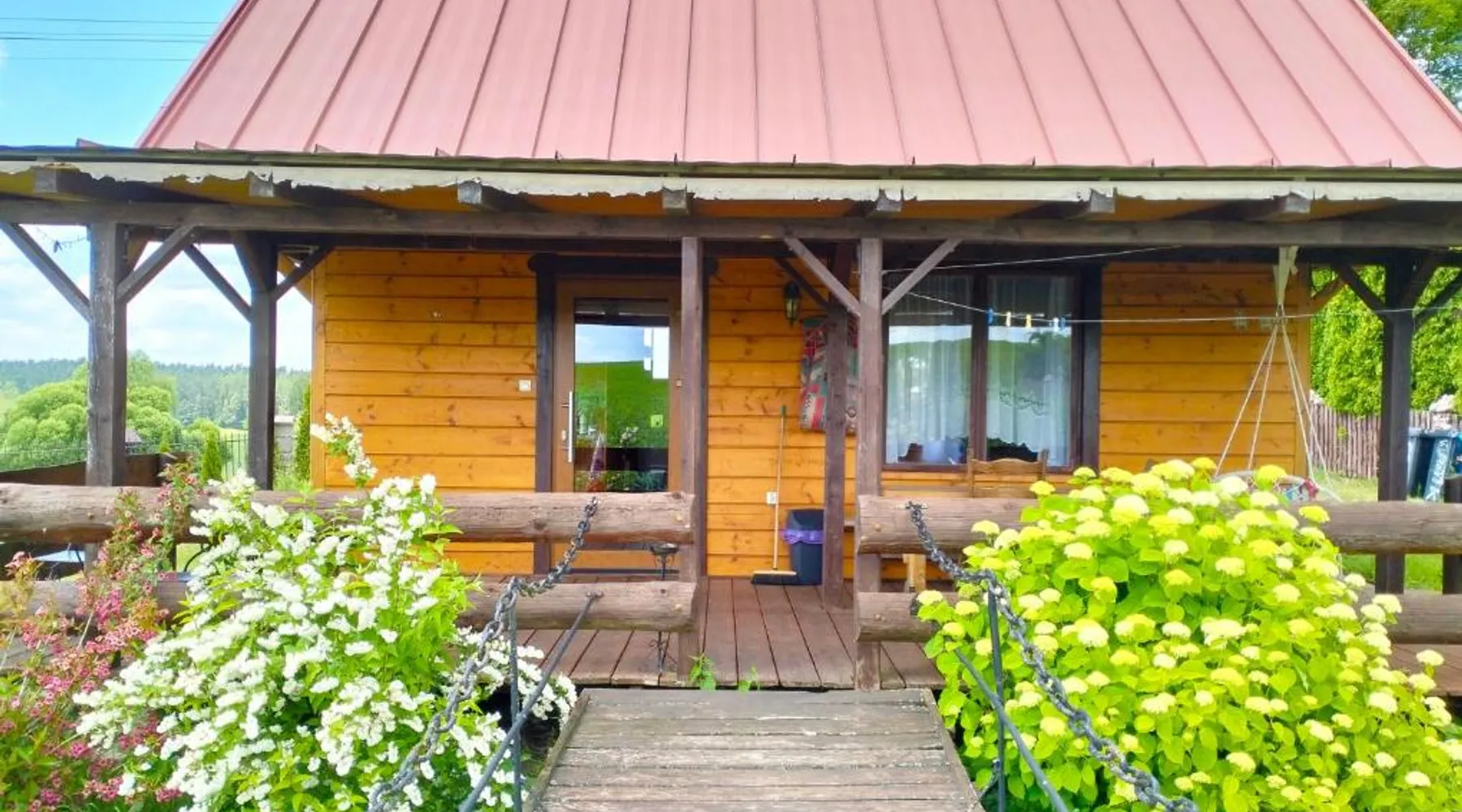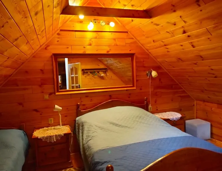 Comfortable Accommodations: Nad żabim stawem in Jałowo offers a holiday home with two bedrooms and a living room. The property features a fully equipped kitchenette, dining area, and a cozy sofa bed. Outdoor Spaces: Guests can enjoy a spacious garden and terrace with garden views. The terrace includes an outdoor fireplace and seating area, perfect for relaxation. Amenities: The holiday home provides free WiFi, a sauna, and barbecue facilities. Additional amenities include a dining table, microwave, and TV. Activities: Activities available include skiing, walking tours, and cycling. Nearby attractions include Hancza Lake (8.7 mi) and Castle Mountain (8.1 mi). The sauna and fireplace are the standout features of this holiday home. Guests will find a stovetop, a refrigerator, kitchenware and a microwave in the well-equipped kitchenette. The holiday home also provides guests with a barbecue. Featuring a terrace with garden views, this holiday home also provides a private entrance and a flat-screen TV. The unit offers 6 beds.