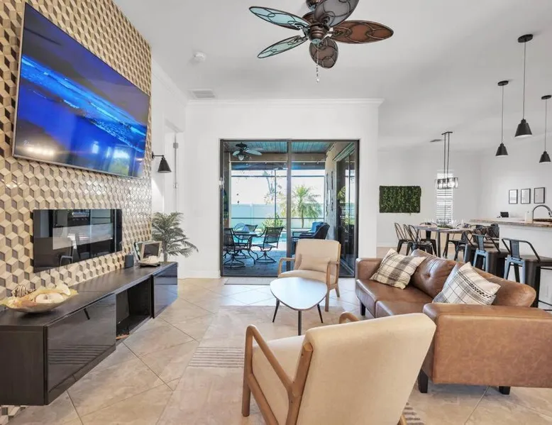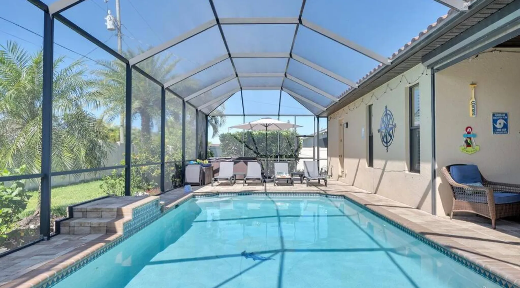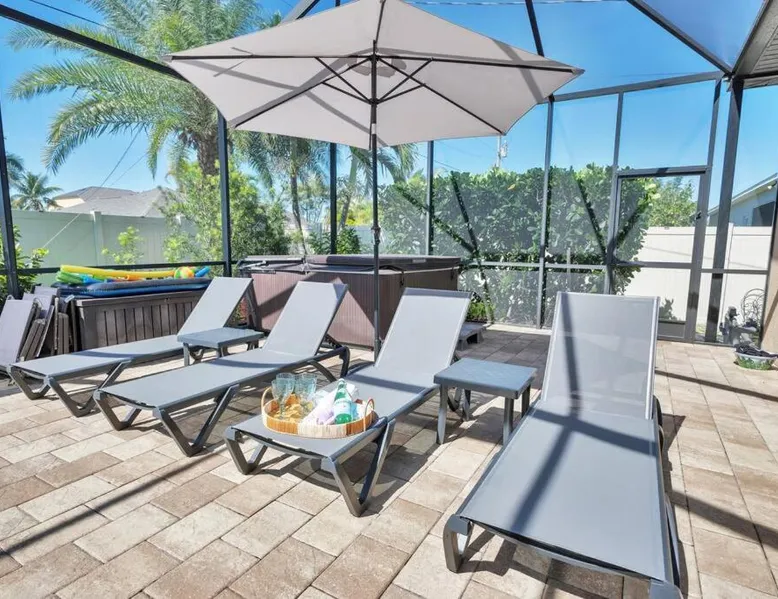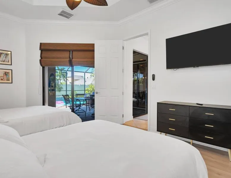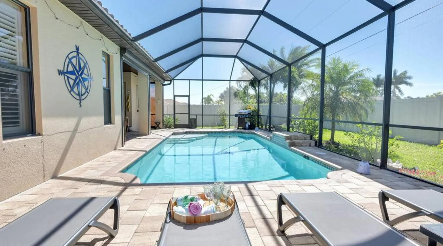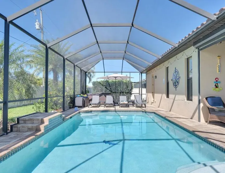 28 miles from Fishermen's Village in Cape Coral, Coral Palms features accommodations with access to a hot tub. This property offers a private pool and free private parking. Outdoor seating is also available at the vacation home. With free Wifi, this 4-bedroom vacation home provides a flat-screen TV, a washing machine, and a fully equipped kitchen with a dishwasher and oven. The air-conditioned unit at the property features a walk-in shower and a dressing room. For added privacy, the accommodation features a private entrance. Sanibel and Captiva Chamber of Commerce and Visitors Center is 18 miles from Coral Palms, while Sanibel Lighthouse is 20 miles away. The nearest airport is Southwest Florida International Airport, 19 miles from the accommodation. This holiday home features a hot tub and a private pool. The well-fitted kitchen has a stovetop, a refrigerator, a dishwasher and an oven. The spacious air-conditioned holiday home offers a flat-screen TV, a washing machine, a private entrance, a tea and coffee maker as well as pool views. The unit has 5 beds.