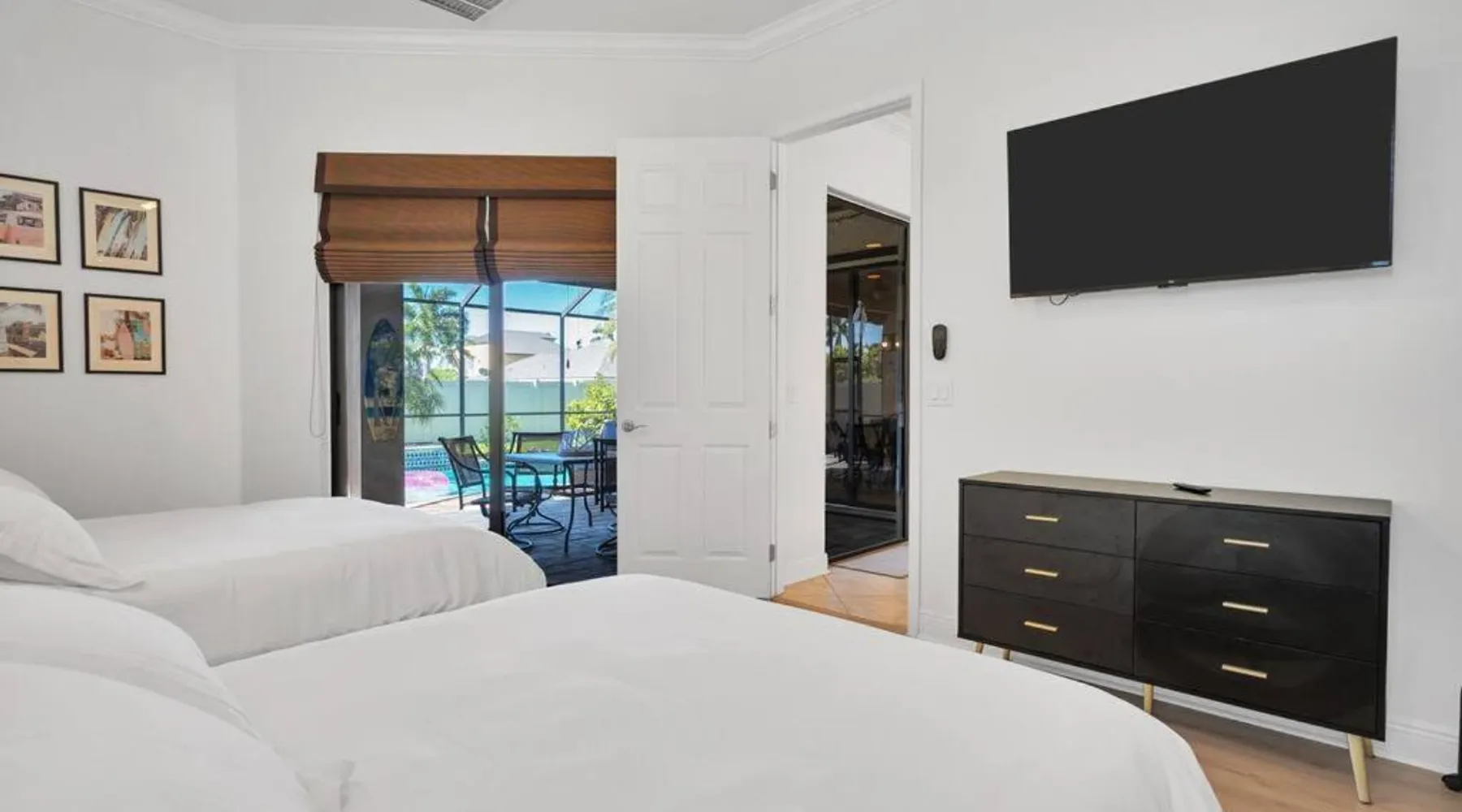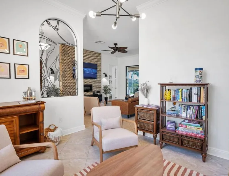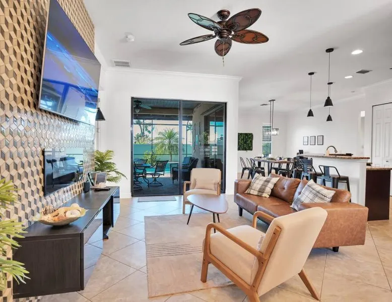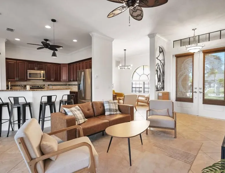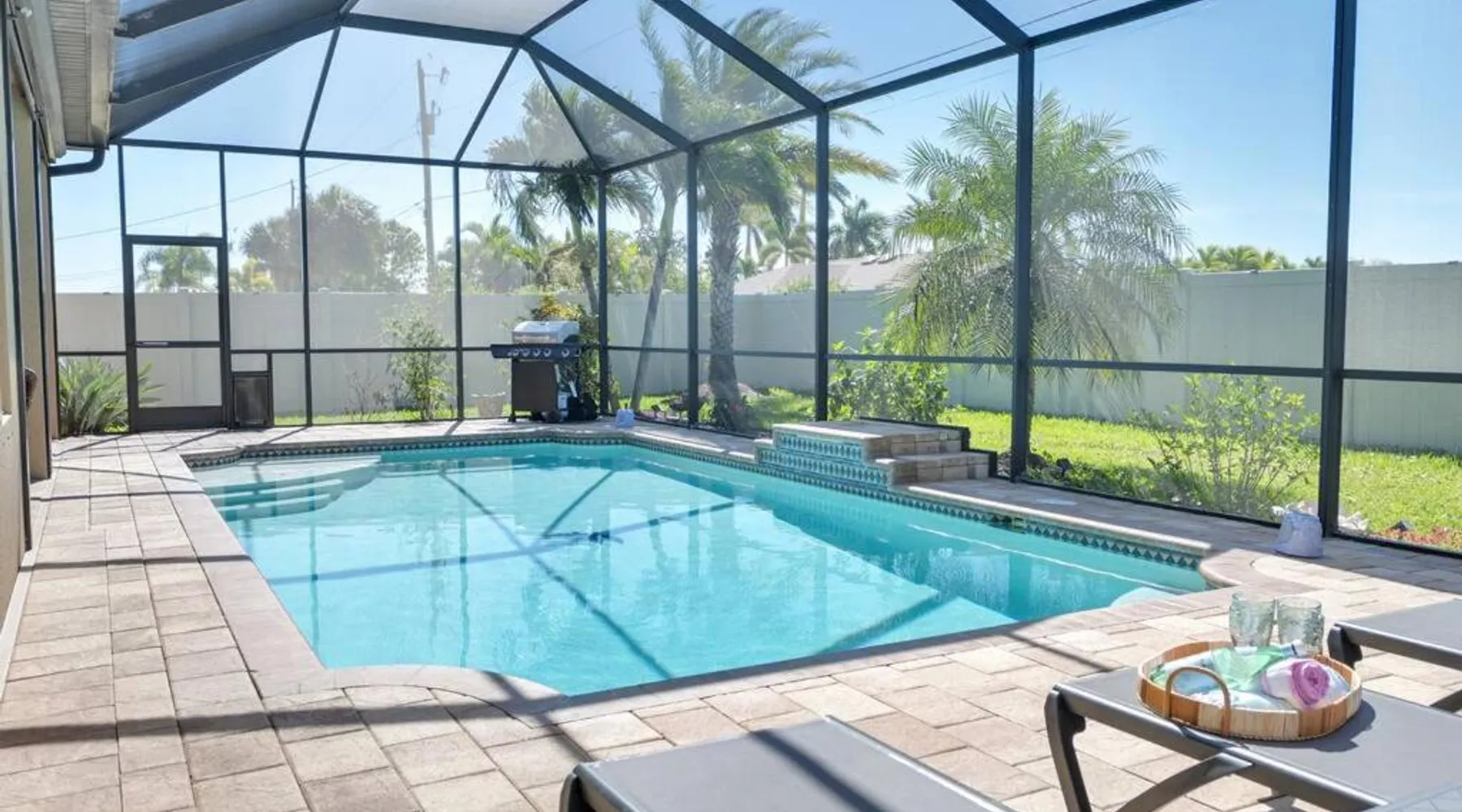 28 miles from Fishermen's Village in Cape Coral, Coral Palms features accommodations with access to a hot tub. This property offers a private pool and free private parking. Outdoor seating is also available at the vacation home. With free Wifi, this 4-bedroom vacation home provides a flat-screen TV, a washing machine, and a fully equipped kitchen with a dishwasher and oven. The air-conditioned unit at the property features a walk-in shower and a dressing room. For added privacy, the accommodation features a private entrance. Sanibel and Captiva Chamber of Commerce and Visitors Center is 18 miles from Coral Palms, while Sanibel Lighthouse is 20 miles away. The nearest airport is Southwest Florida International Airport, 19 miles from the accommodation. This holiday home features a hot tub and a private pool. The well-fitted kitchen has a stovetop, a refrigerator, a dishwasher and an oven. The spacious air-conditioned holiday home offers a flat-screen TV, a washing machine, a private entrance, a tea and coffee maker as well as pool views. The unit has 5 beds.