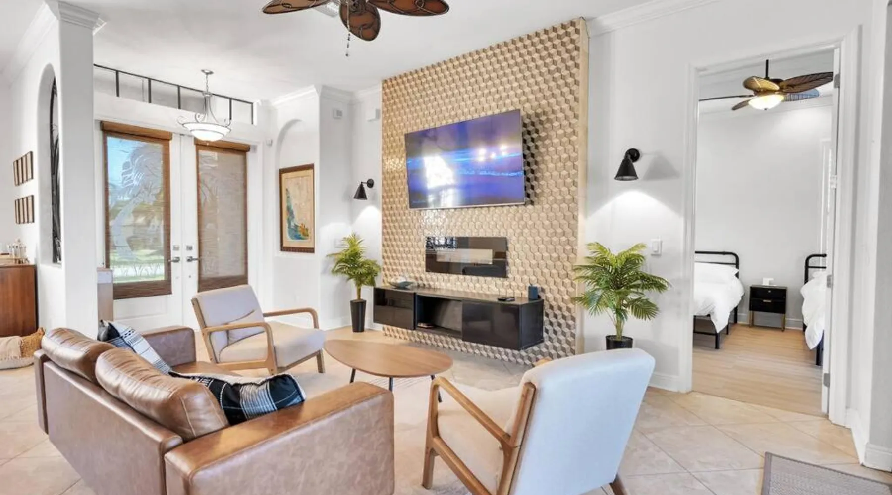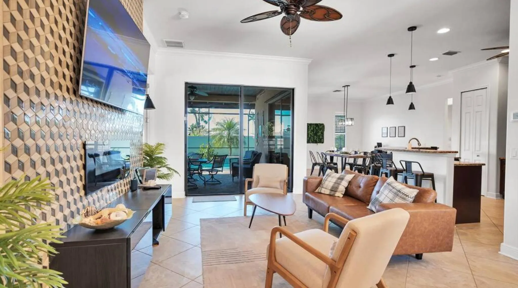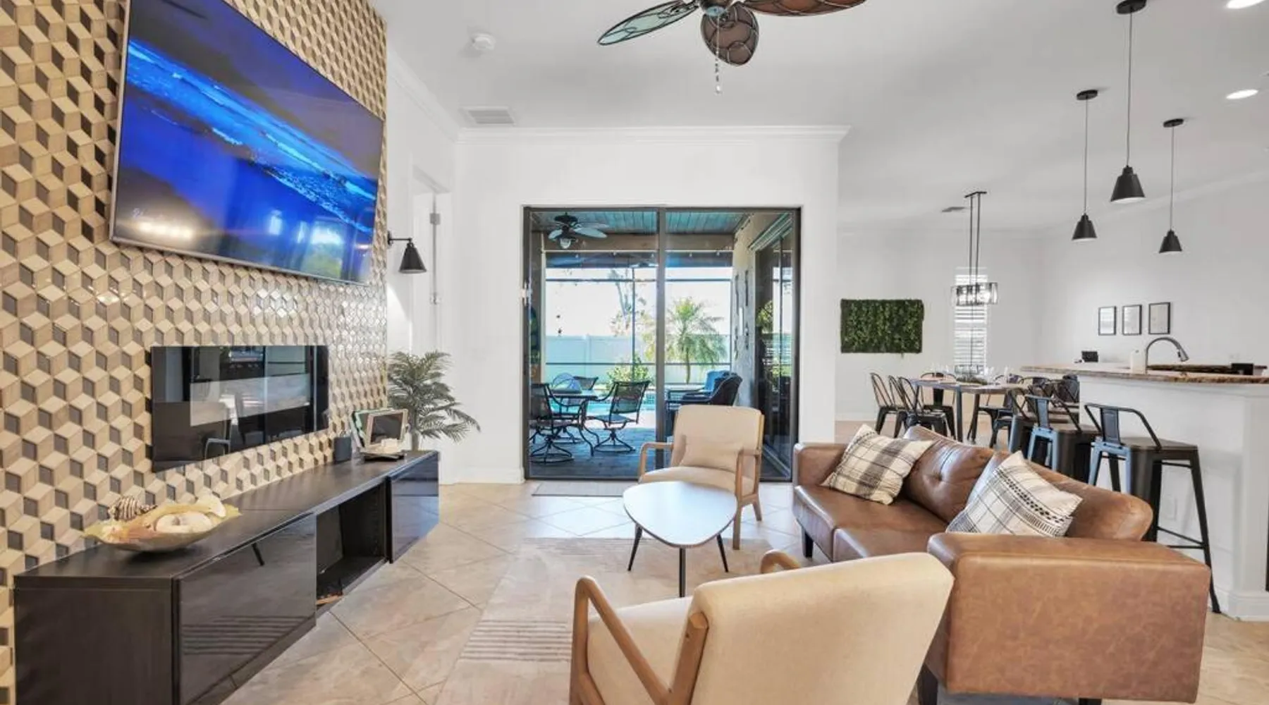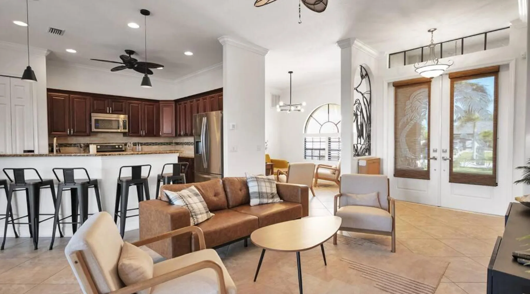 28 miles from Fishermen's Village in Cape Coral, Coral Palms features accommodations with access to a hot tub. This property offers a private pool and free private parking. Outdoor seating is also available at the vacation home. With free Wifi, this 4-bedroom vacation home provides a flat-screen TV, a washing machine, and a fully equipped kitchen with a dishwasher and oven. The air-conditioned unit at the property features a walk-in shower and a dressing room. For added privacy, the accommodation features a private entrance. Sanibel and Captiva Chamber of Commerce and Visitors Center is 18 miles from Coral Palms, while Sanibel Lighthouse is 20 miles away. The nearest airport is Southwest Florida International Airport, 19 miles from the accommodation. This holiday home features a hot tub and a private pool. The well-fitted kitchen has a stovetop, a refrigerator, a dishwasher and an oven. The spacious air-conditioned holiday home offers a flat-screen TV, a washing machine, a private entrance, a tea and coffee maker as well as pool views. The unit has 5 beds.
