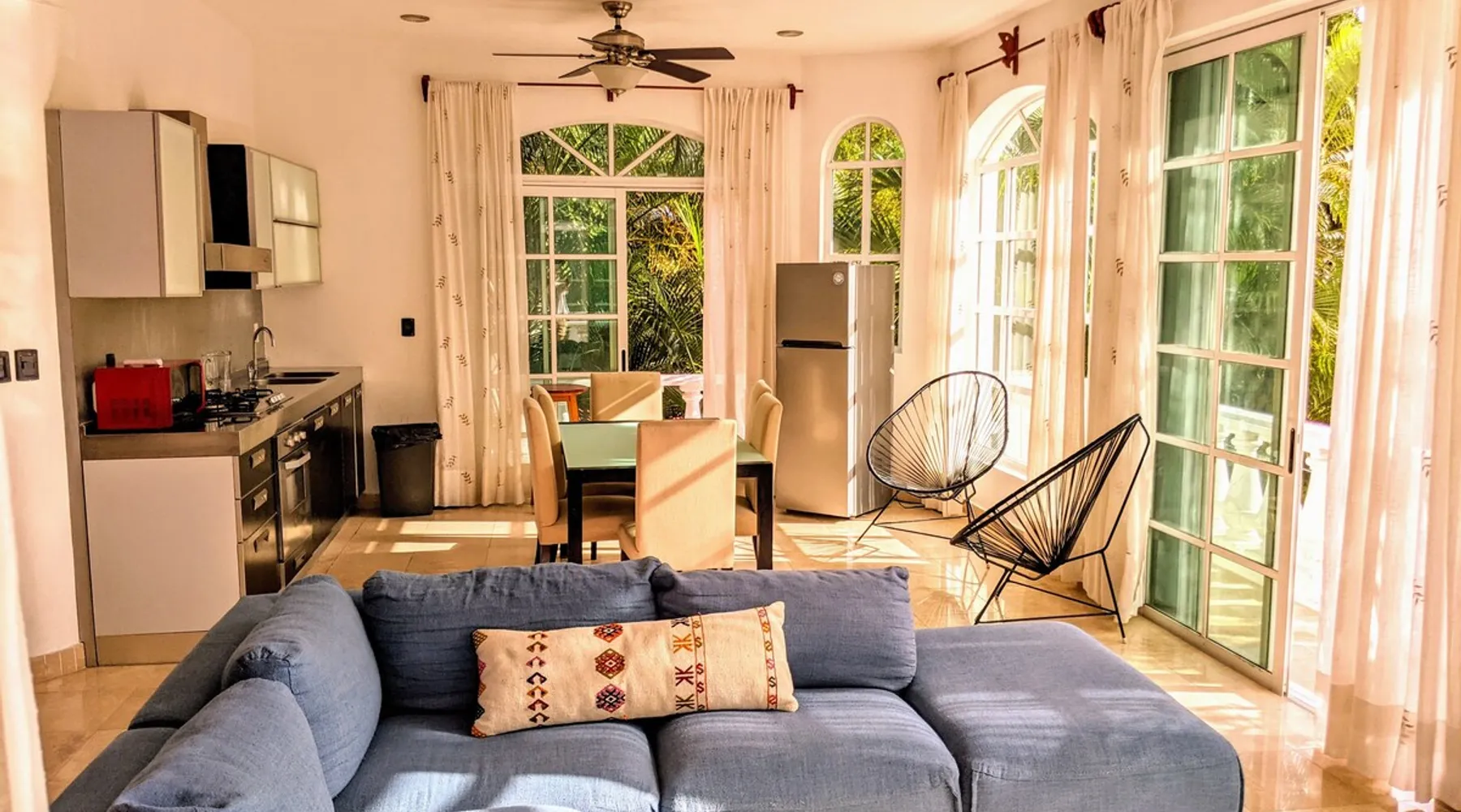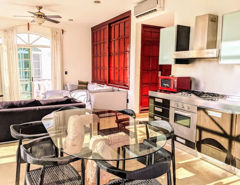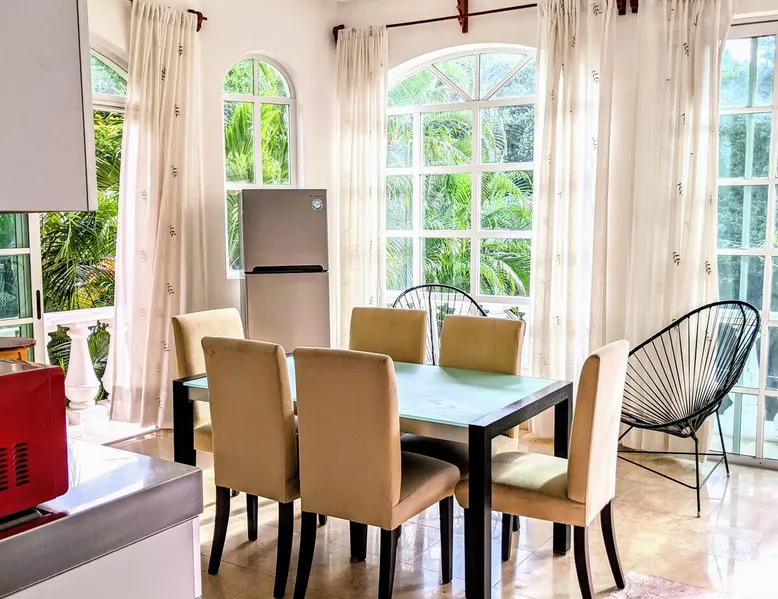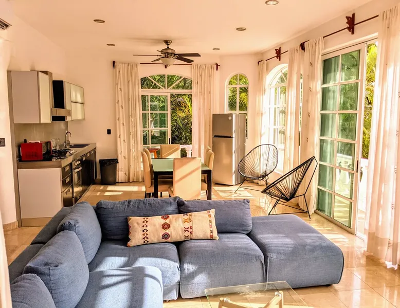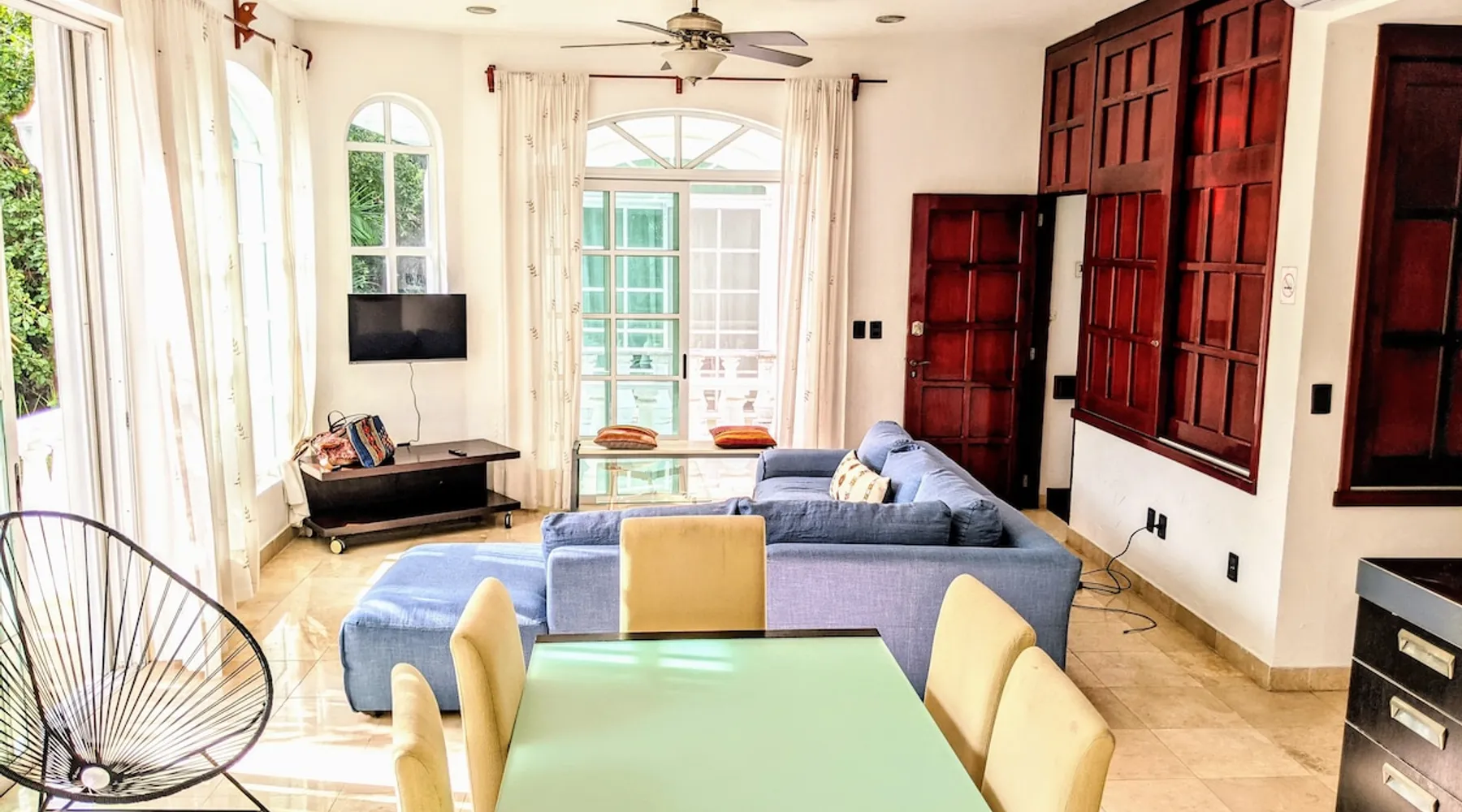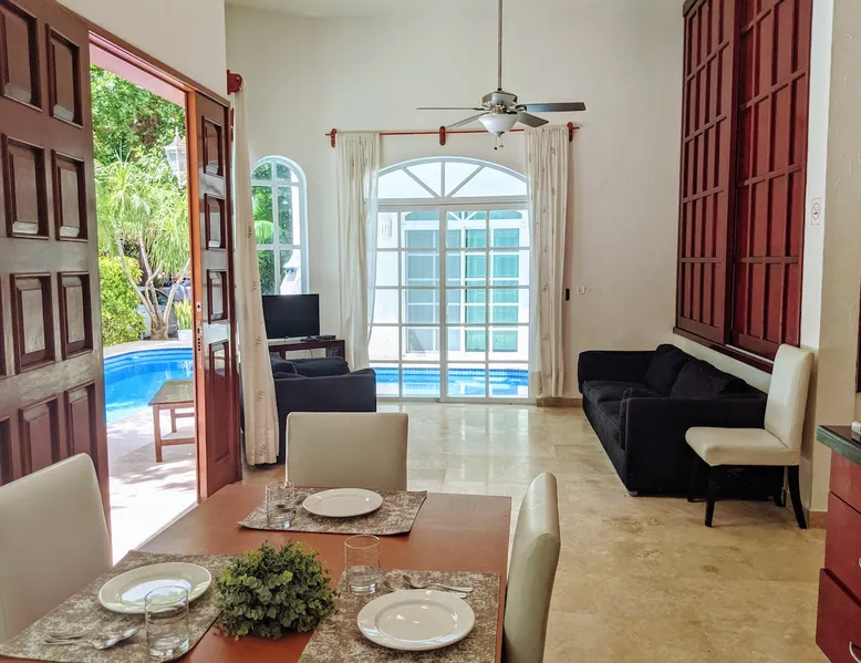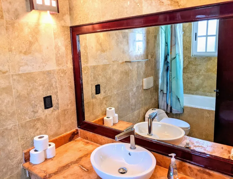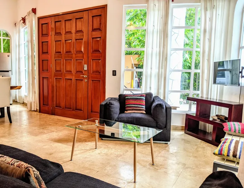 10 great reasons to stay at Los Castillos 1. Sleeps up to 25 guests 2. Perfect LOCATION walk to Beach 5th Ave, Starbucks, shopping, tours, restaurants 3. 3 Kitchens and living areas 4. Gated community 24hr security across st 5. Great for families one floor for each 6. Large balconies and open airy architecture 7. Ocean view from rooftop 8. WIFI 1000MBPS!!!! 9. Step from your living room into the front yard pool 10. 3 Parking spots For map location search 2 Castillos Playacar The space Experience the comfort and convenience of staying at our magnificent home in the exclusive Fase 1 Playacar neighborhood. This home, one of two "Castillos" on the property, is perfect for larger groups of up to 25 people, or can be booked for smaller parties. Book both Castillos for up to 50 guests. Located at the entrance of Fase 1, you'll be within walking distance of everything you need. The beach is just a short 150 meter walk away, and the vibrant 5th Ave is just around the corner. From the rooftop, you'll even have a small ocean view and seating area. Step outside the ground floor living room and you'll find yourself right by the shared pool. There's also an outdoor shower to wash off any beach sand before entering the house. The home is spread out over three levels, each with its own kitchen and living area, as well as three bedrooms. The open concept and open-air architecture allow for a tropical breeze to flow throughout the entire house. Enjoy a balcony or terrace on each bedroom and wrap around balconies on the second and 3rd floor kitchen and living area. This gated community is ultra-safe, with 24-hour security just across the street. If you're bringing a pet, please note that there is an additional fee of $40 per pet per night, which includes a $10 refundable deposit and a $30 fee. This fee is separate from the reservation and must be requested after booking. Enjoy fast internet with speeds of up to 1000MBPS during your stay. If you have any questions, don't hesitate to ask. We look forward to welcoming you to our tropical getaway! Guest access Pool out your front and side door roof terrace, grill, outdoor shower. Other things to note Keep in mind that we do not provide any groceries, drinking water or other beverages for you other than, oil, salt, pepper; so please arrange to travel for groceries to Chedraui after your arrival. It is a 2 minute cab ride and they are waiting outside for your return. We do provide hand soap and dish soap with sponges and towels, also shampoo in the showers with a beach towel and bath towel for each guest! Los Castillos villas offer a unique and comfortable vacation experience in a prime location in Playa del Carmen. Built in 1989 and renovated in 2000, they may not have the latest modern amenities, but they can accommodate large groups of up to 50 guests. Despite being an older property, our team works hard to keep the villas clean and well-maintained. However, due to the humidity, sun, and salty air in Playa del Carmen, older homes like these may require ongoing maintenance. If any issues arise during your stay, our team, led by Danny, is ready to address them promptly. If you are looking for a newer property, we have other listings available. However, if you appreciate the charm and character of an older home, the Los Castillos villas may be the perfect choice for your vacation. We are connected to Airbnb with API software and thus are responsible for damages at our home. This requires a security deposit of $1750usd fully refundable OR a $69 fee that is not refundable, outside of the Airbnb platform. You will see this noted at your Airbnb check out just below your total.