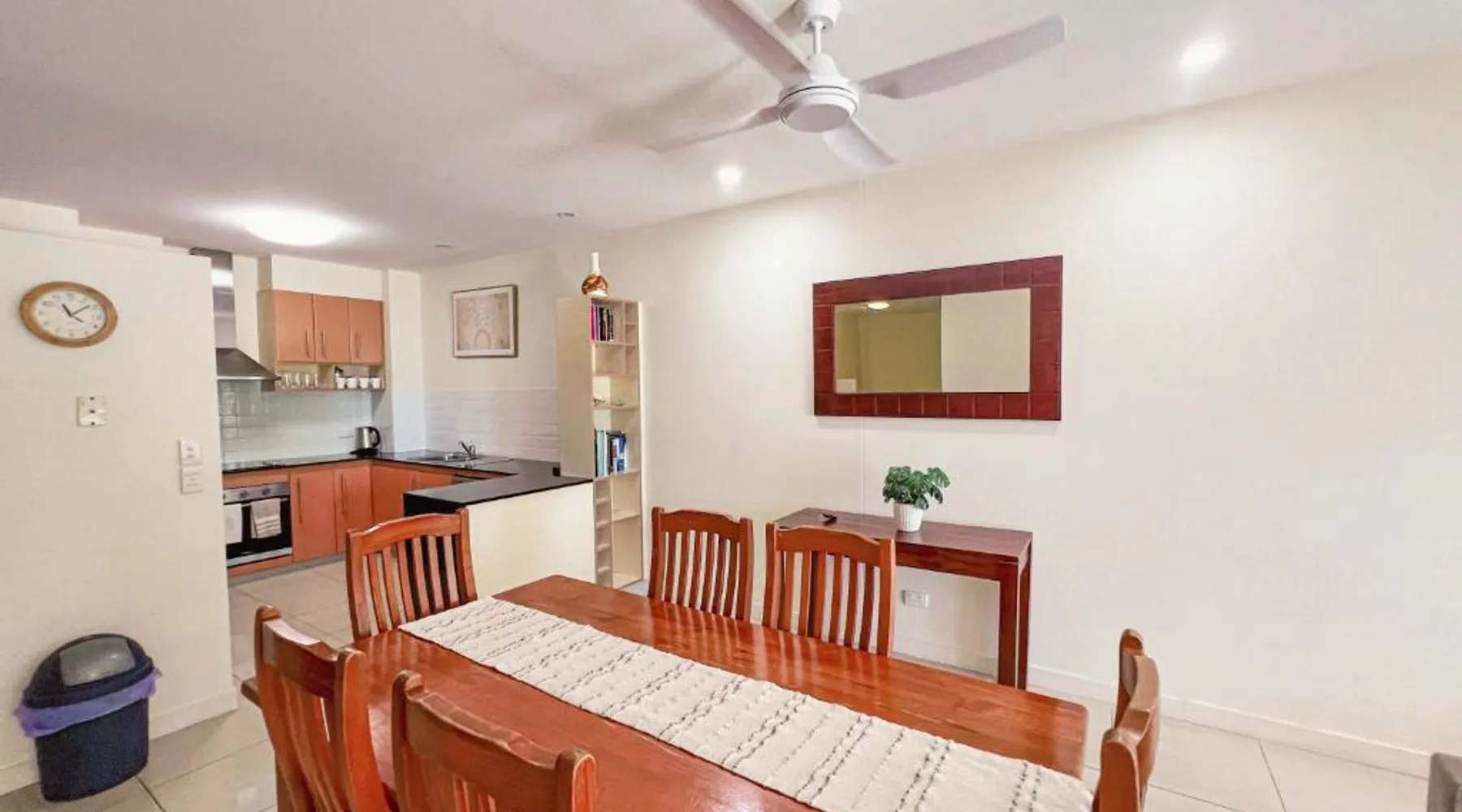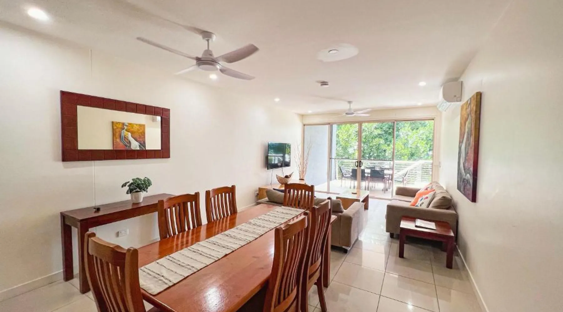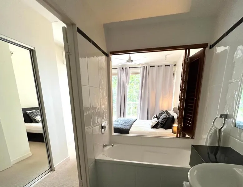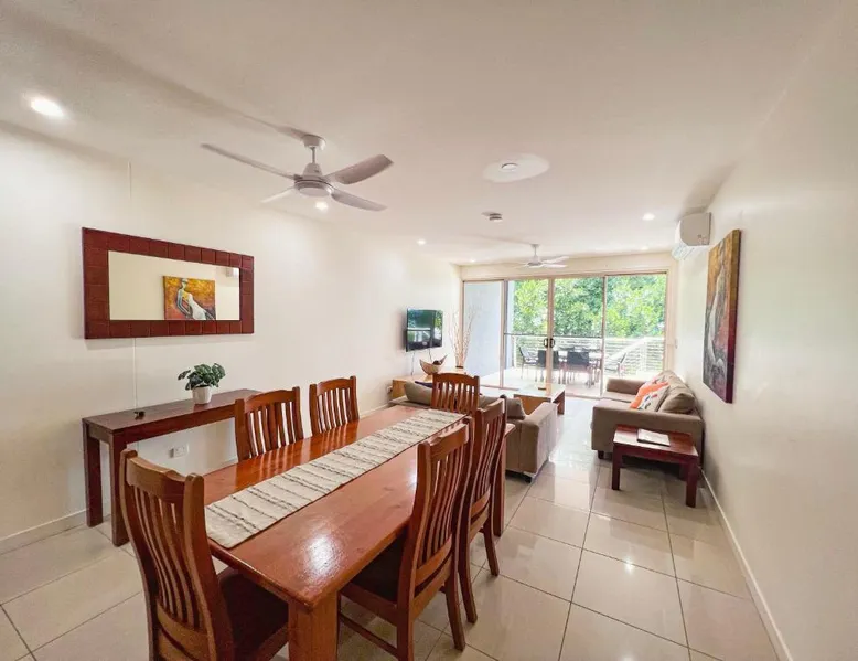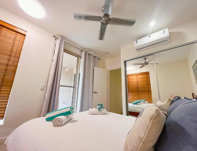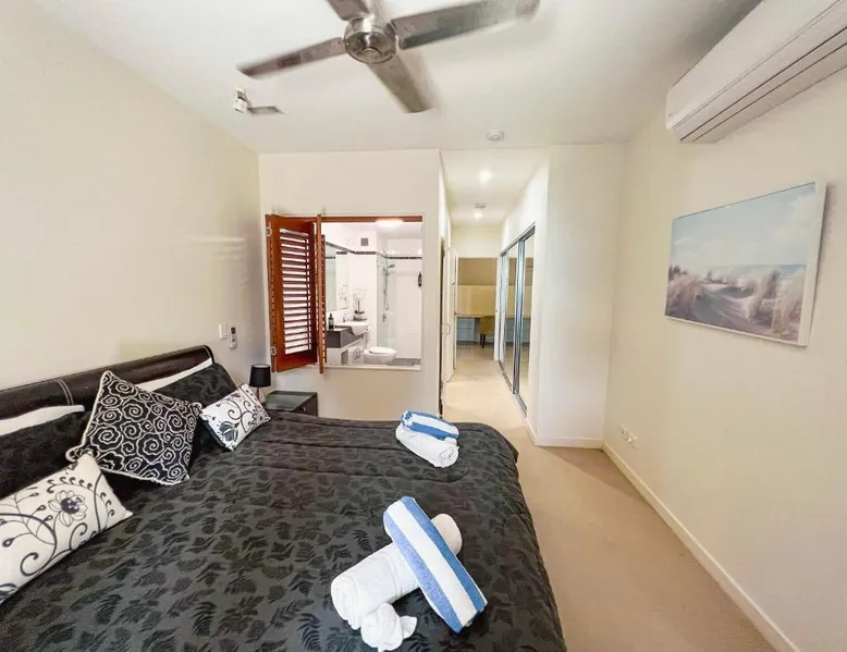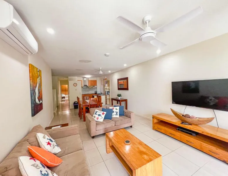 Beachfront Living: BHA 4- Beachfront Bliss in Mission Beach offers direct beachfront access and an outdoor swimming pool. Guests can relax on the spacious patio or take a dip in the inviting waters. Comfortable Accommodations: The apartment features two bedrooms and two bathrooms, ensuring ample space for all visitors. Air-conditioning, a washing machine, and free on-site parking provide added comfort. Modern Amenities: Equipped with a fully fitted kitchen, dining area, and a barbecue, the property caters to all culinary needs. Additional amenities include a TV, microwave, dishwasher, and free toiletries. Nearby Attractions: Narragon Beach is located 1.4 mi away, offering easy beach access and scenic views. Other nearby points of interest include the Great Barrier Reef and Daintree Rainforest. The spacious apartment features 2 bedrooms and 2 bathrooms with a hairdryer and free toiletries. Guests will find a stovetop, a refrigerator, a dishwasher and kitchenware in the kitchen. The apartment also offers a barbecue. This apartment has air conditioning, a washing machine, a TV and a patio. The unit offers 3 beds.