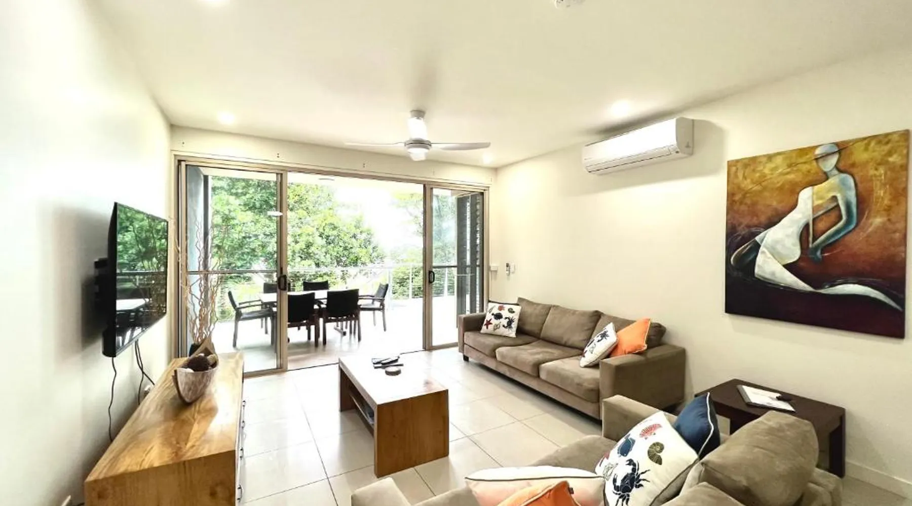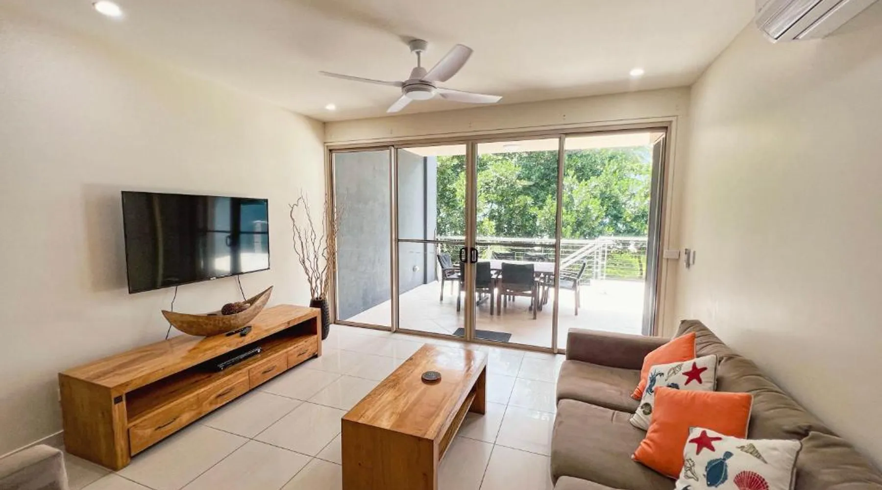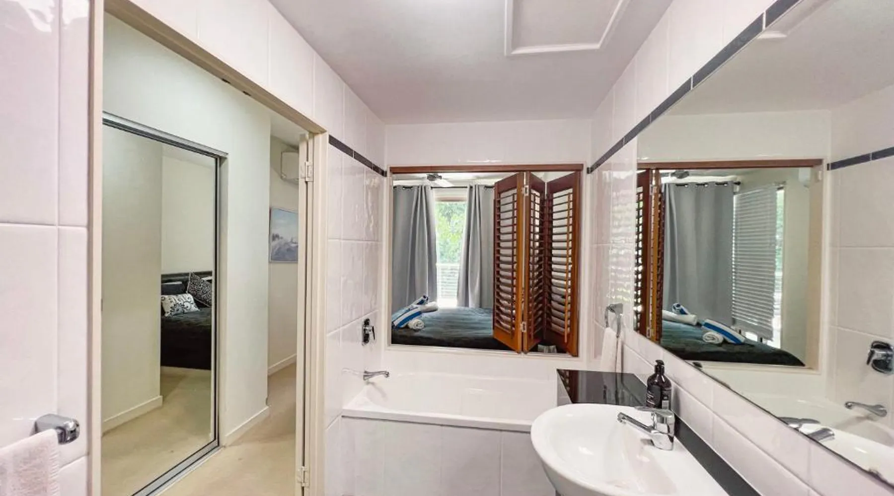 Beachfront Living: BHA 4- Beachfront Bliss in Mission Beach offers direct beachfront access and an outdoor swimming pool. Guests can relax on the spacious patio or take a dip in the inviting waters. Comfortable Accommodations: The apartment features two bedrooms and two bathrooms, ensuring ample space for all visitors. Air-conditioning, a washing machine, and free on-site parking provide added comfort. Modern Amenities: Equipped with a fully fitted kitchen, dining area, and a barbecue, the property caters to all culinary needs. Additional amenities include a TV, microwave, dishwasher, and free toiletries. Nearby Attractions: Narragon Beach is located 1.4 mi away, offering easy beach access and scenic views. Other nearby points of interest include the Great Barrier Reef and Daintree Rainforest. The spacious apartment features 2 bedrooms and 2 bathrooms with a hairdryer and free toiletries. Guests will find a stovetop, a refrigerator, a dishwasher and kitchenware in the kitchen. The apartment also offers a barbecue. This apartment has air conditioning, a washing machine, a TV and a patio. The unit offers 3 beds.