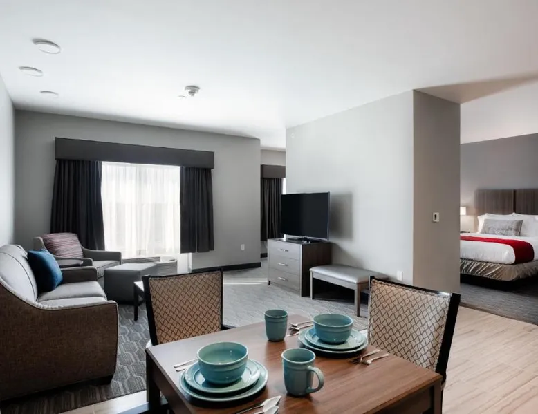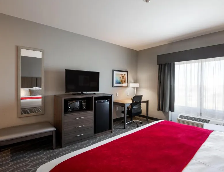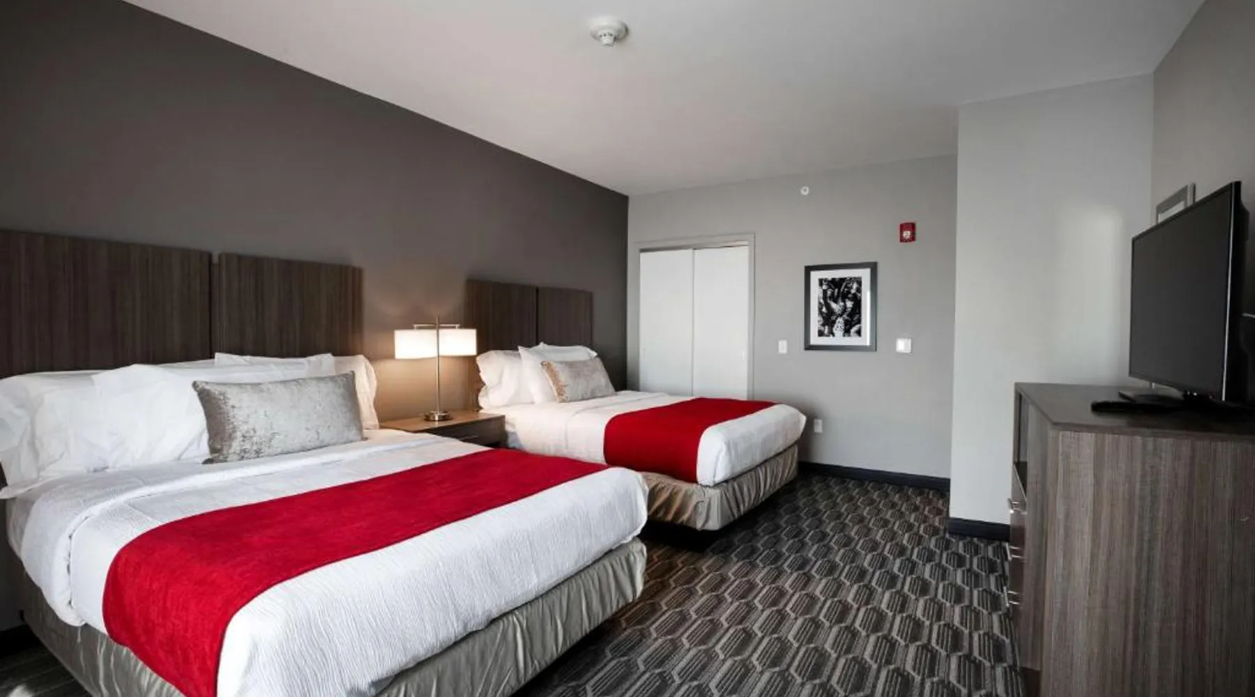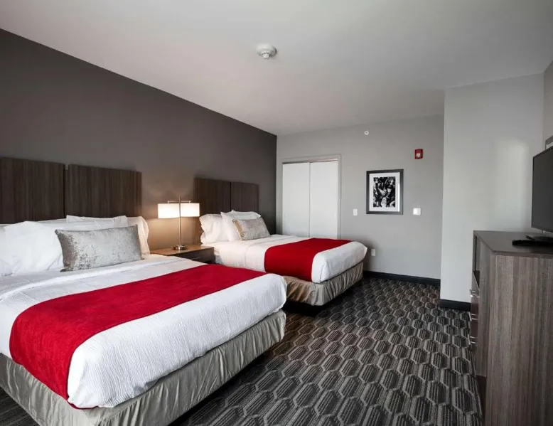 Comfortable Accommodations: StoneHill Lawrence, Trademark Collection by Wyndham in Lawrence offers family rooms with air-conditioning, private bathrooms, and free WiFi. Each room includes a TV, wardrobe, and work desk. Leisure Facilities: Guests can enjoy a saltwater swimming pool, indoor pool, and bar. Additional amenities include an outdoor fireplace, lounge, and outdoor seating area. Convenient Services: The hotel provides free private parking, a 24-hour front desk, housekeeping, and a business area. Free toiletries, a coffee machine, and a microwave are available in each room. Nearby Attractions: Kansas Memorial Stadium is 5.6 mi away, and Kansas City International Airport is 48 mi from the property. This air-conditioned quadruple room includes a flat-screen TV with cable channels and a private bathroom. The unit offers 1 bed.