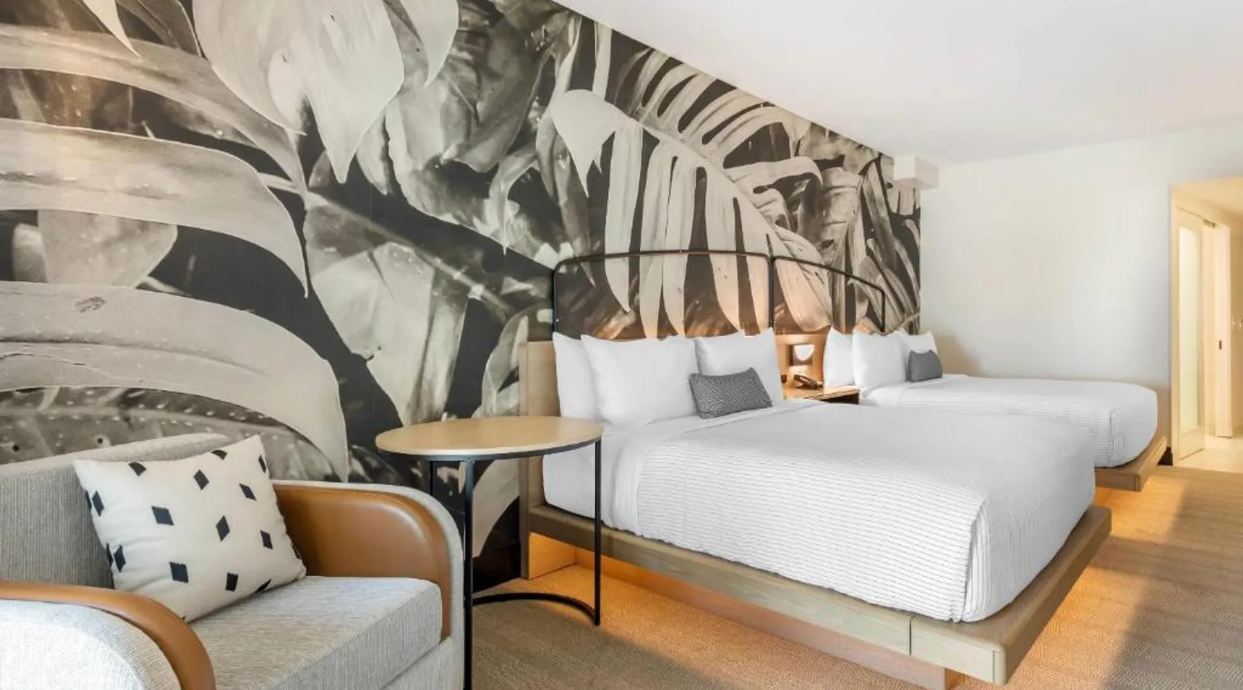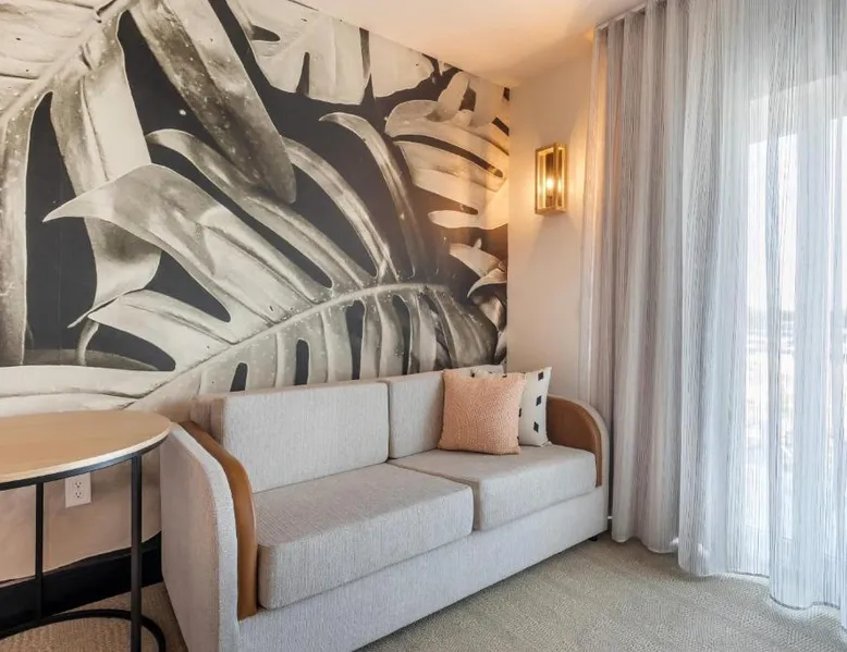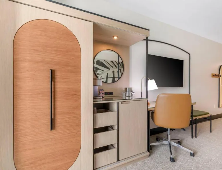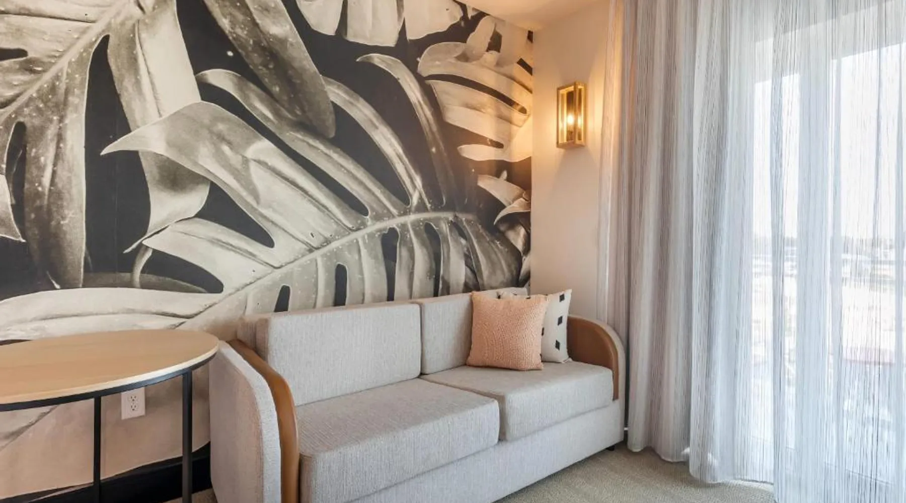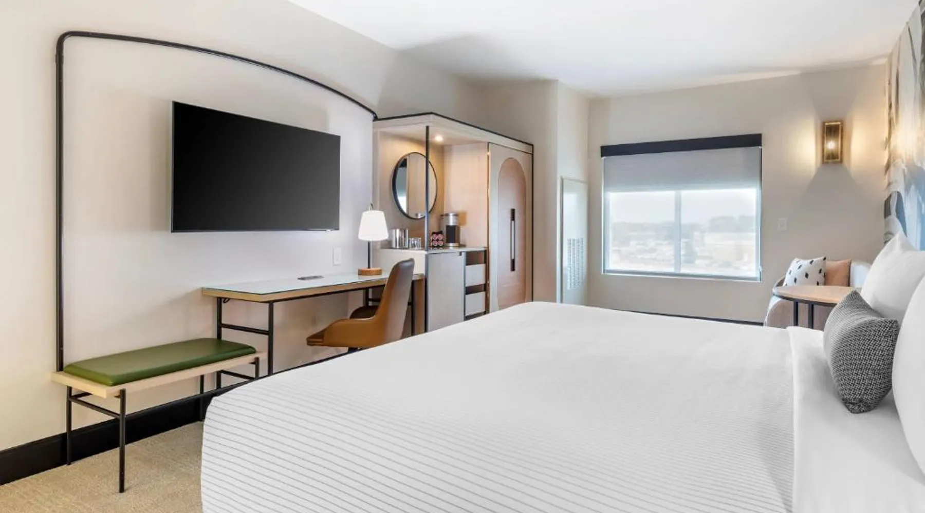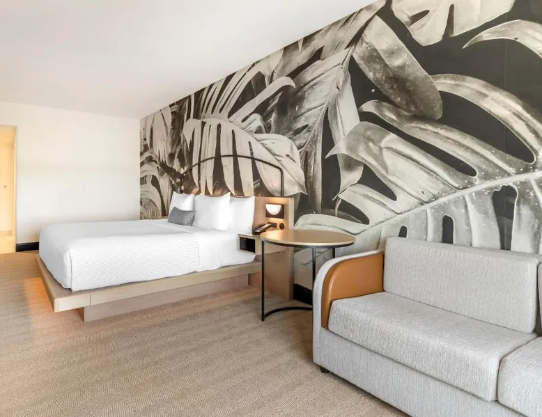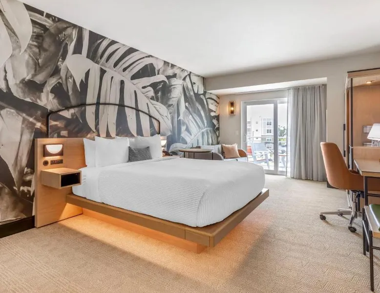 Comfortable Accommodations: Cambria Hotel Rehoboth Beach in Rehoboth Beach offers family rooms with air-conditioning, private entrances, and balconies. Each room includes a wardrobe, refrigerator, work desk, and microwave. Exceptional Facilities: Guests enjoy a fitness center, indoor swimming pool, and free WiFi in public areas. Additional amenities include a restaurant, bar, lounge, outdoor fireplace, hot tub, and games room. Dining Experience: The modern, family-friendly restaurant serves American cuisine with brunch, lunch, and dinner. The bar offers cocktails in a relaxed setting. Prime Location: Located 4.3 mi from Rehoboth Beach Boardwalk and near attractions such as Thunder Lagoon Waterpark (21 mi) and Ocean City Harbor (29 mi). Free on-site parking is available. Guest Satisfaction: Highly rated for room cleanliness, attentive staff, and excellent swimming pool. The spacious quadruple room features air conditioning, a private entrance, a wardrobe as well as a balcony with pool views. The unit has 2 beds.