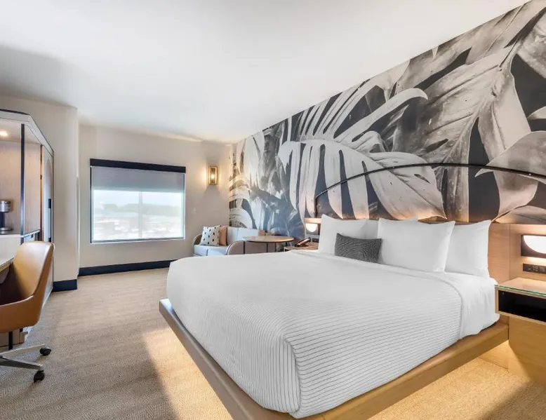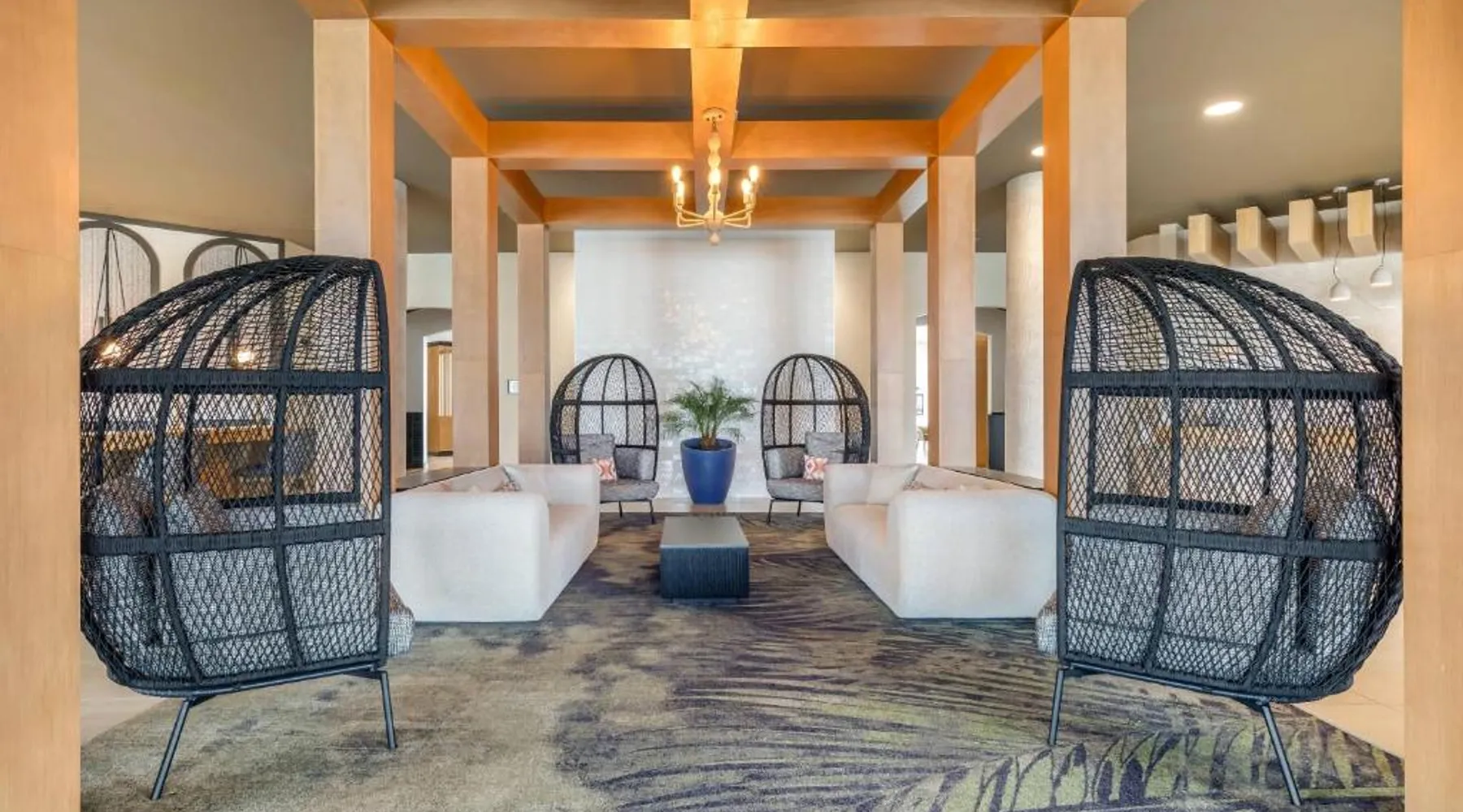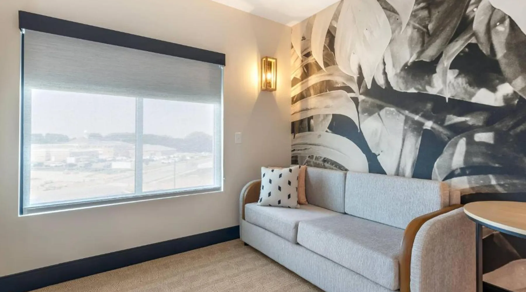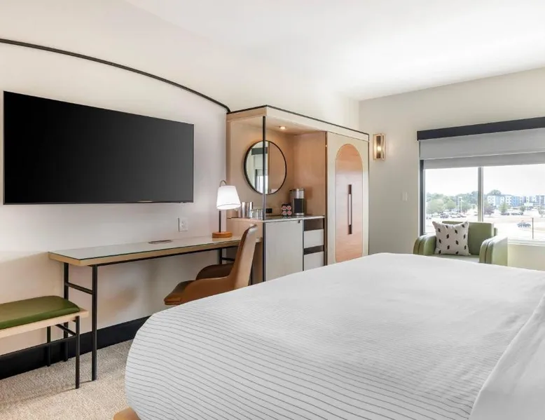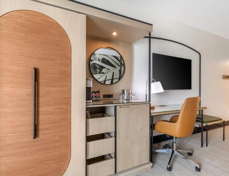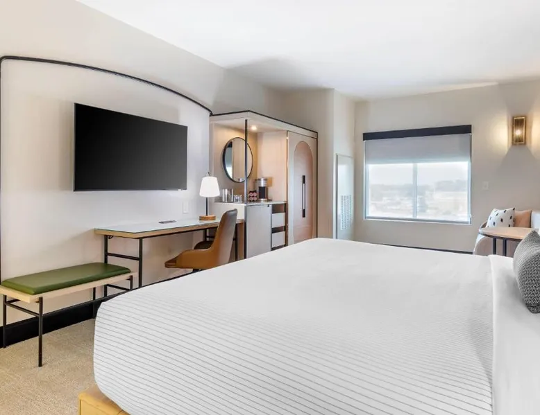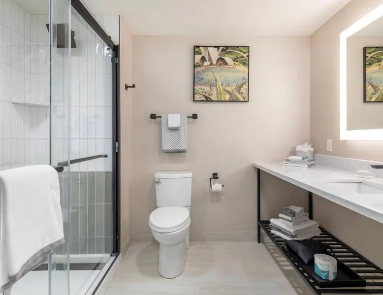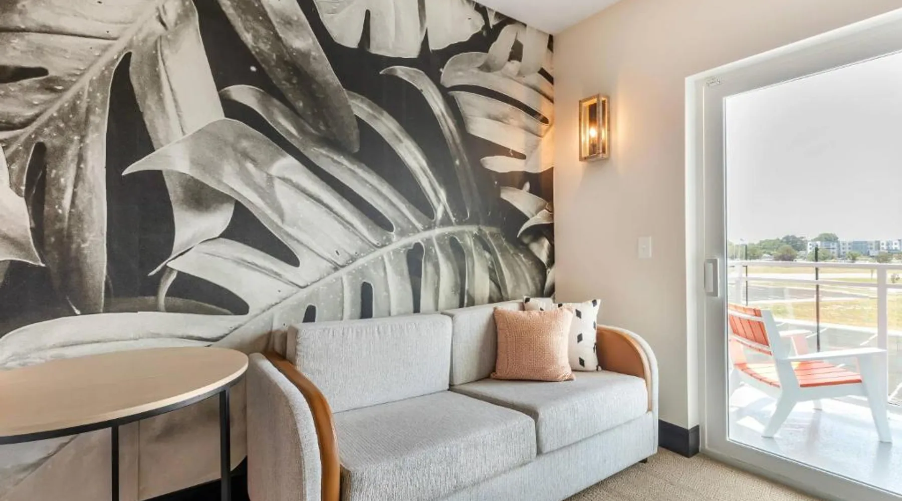 Comfortable Accommodations: Cambria Hotel Rehoboth Beach in Rehoboth Beach offers family rooms with air-conditioning, private entrances, and balconies. Each room includes a wardrobe, refrigerator, work desk, and microwave. Exceptional Facilities: Guests enjoy a fitness center, indoor swimming pool, and free WiFi in public areas. Additional amenities include a restaurant, bar, lounge, outdoor fireplace, hot tub, and games room. Dining Experience: The modern, family-friendly restaurant serves American cuisine with brunch, lunch, and dinner. The bar offers cocktails in a relaxed setting. Prime Location: Located 4.3 mi from Rehoboth Beach Boardwalk and near attractions such as Thunder Lagoon Waterpark (21 mi) and Ocean City Harbor (29 mi). Free on-site parking is available. Guest Satisfaction: Highly rated for room cleanliness, attentive staff, and excellent swimming pool. The spacious quadruple room features air conditioning, a private entrance, a wardrobe as well as a balcony with pool views. The unit has 2 beds.