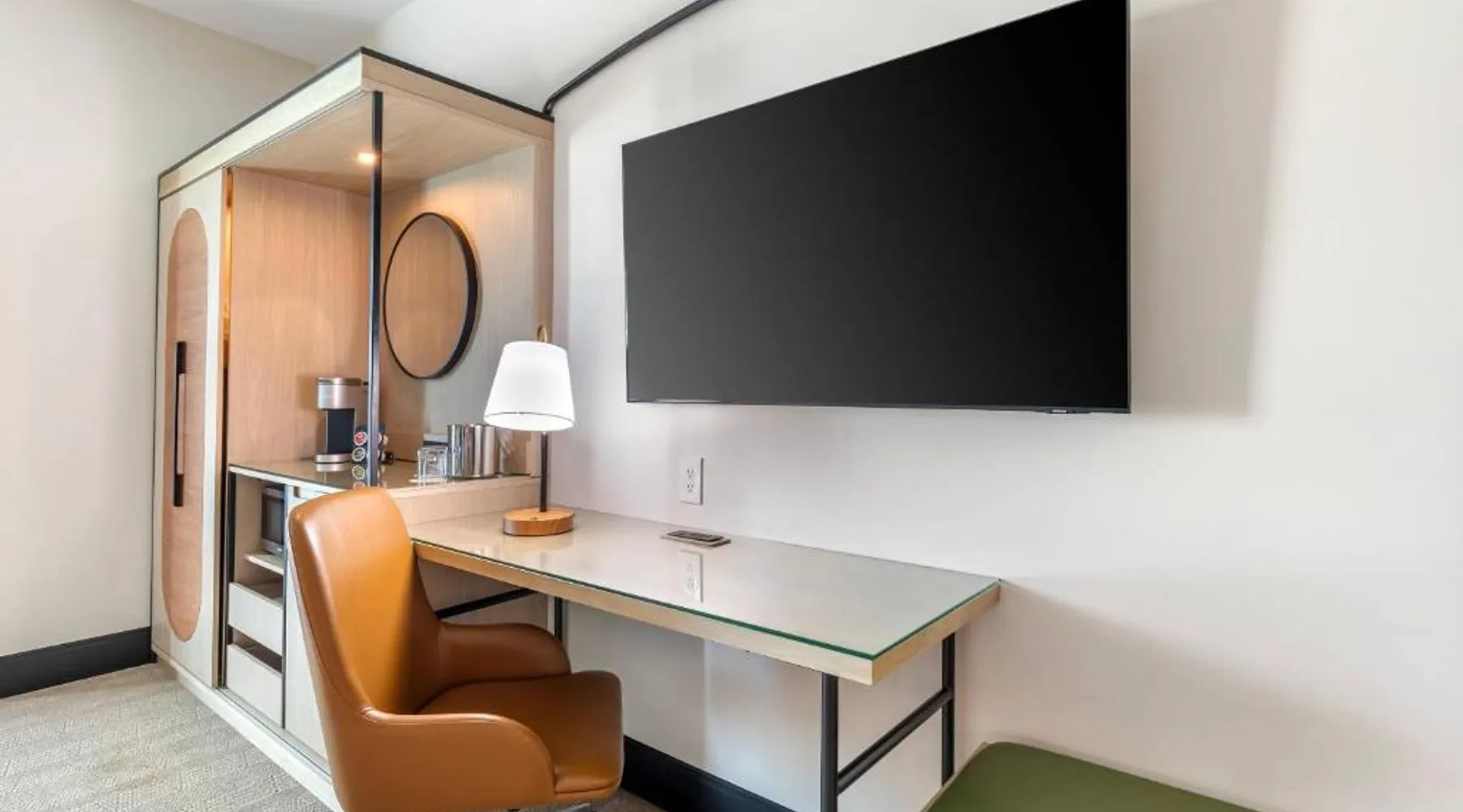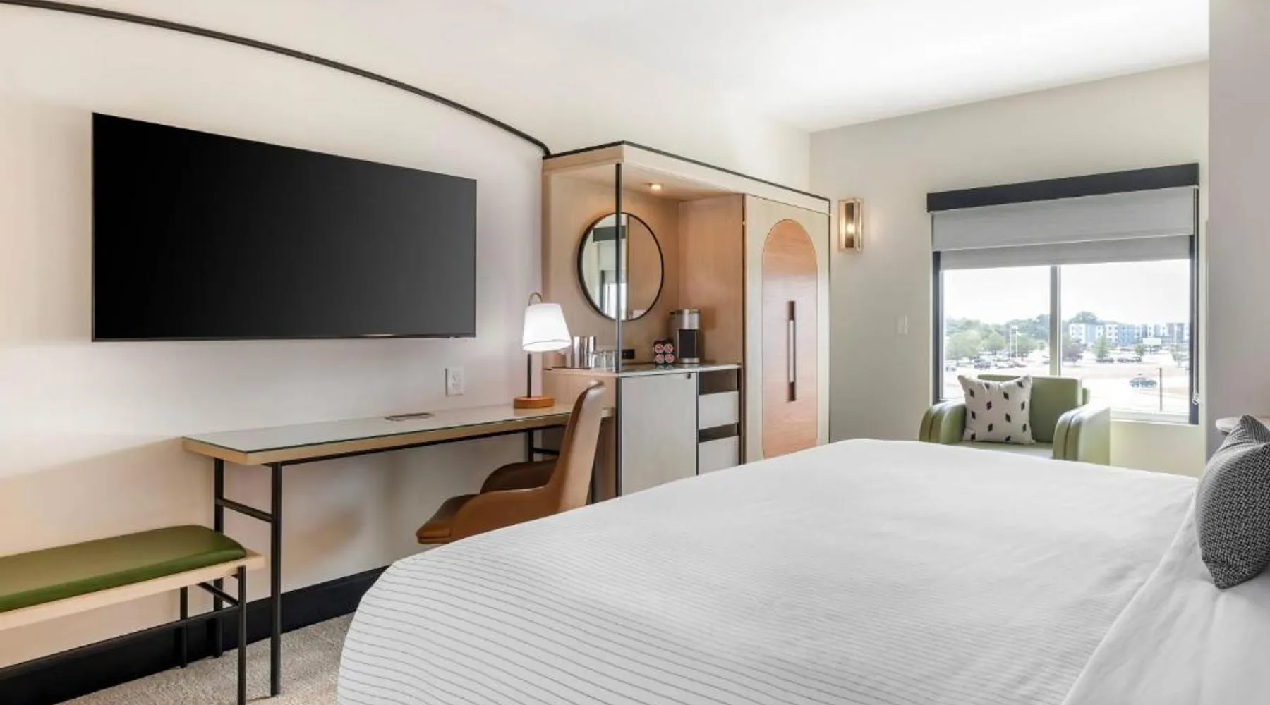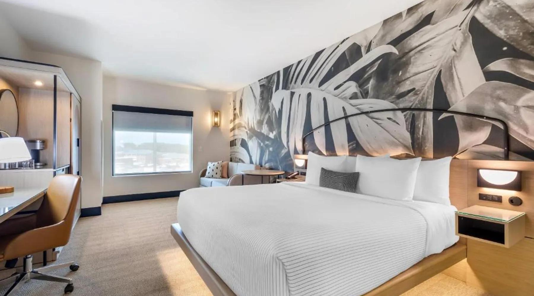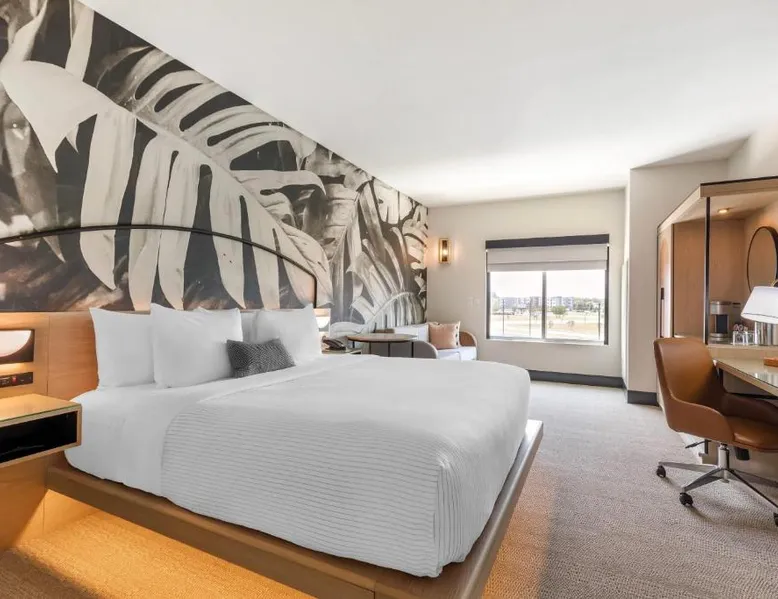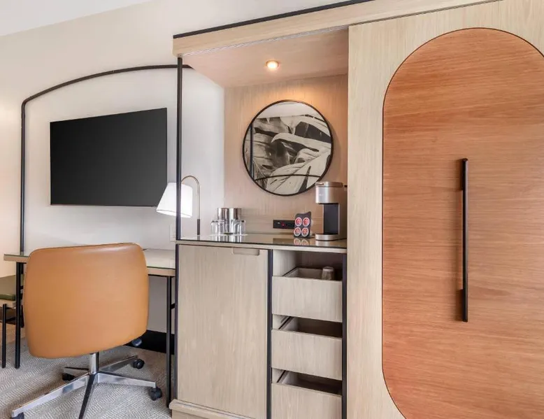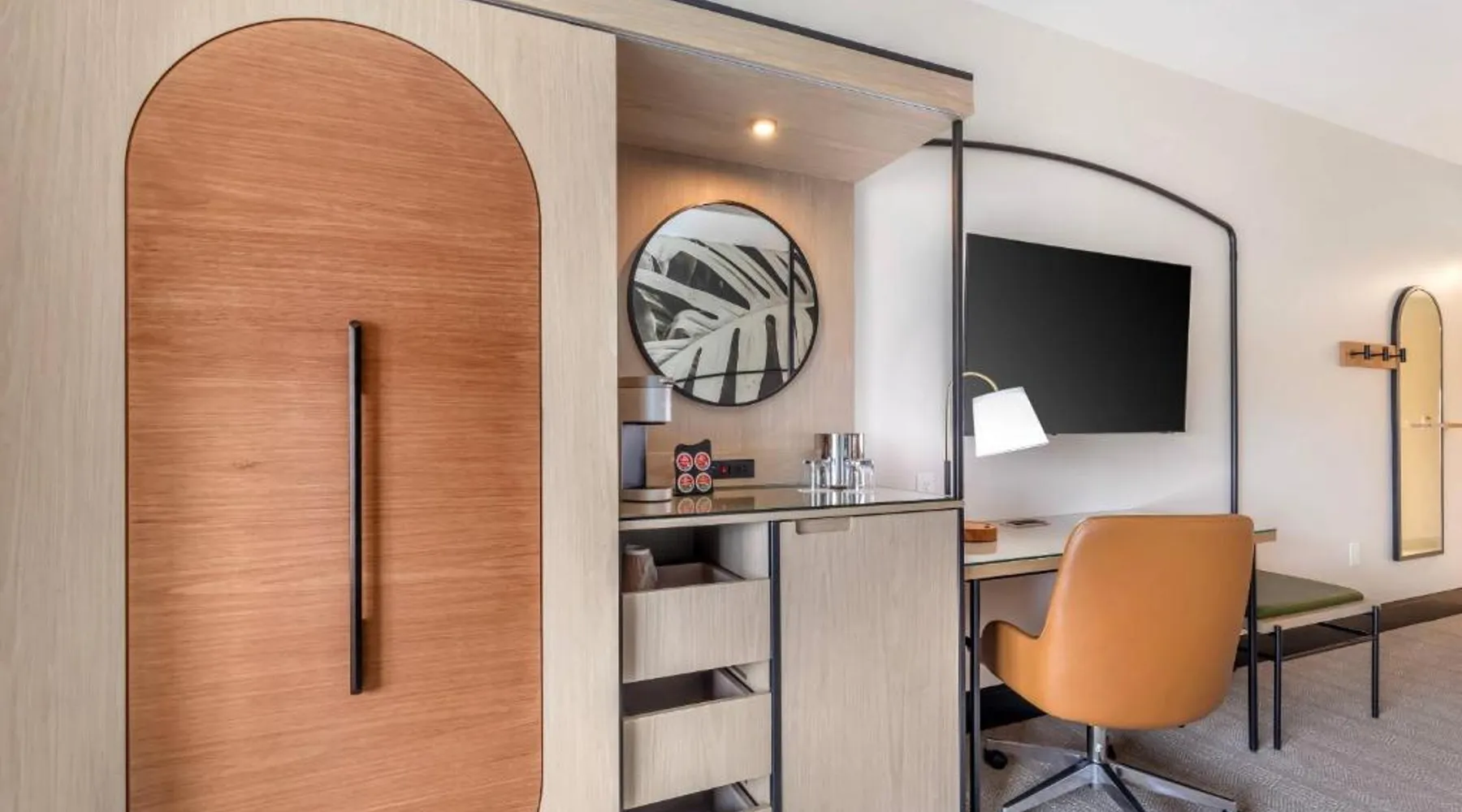 Comfortable Accommodations: Cambria Hotel Rehoboth Beach in Rehoboth Beach offers family rooms with air-conditioning, private entrances, and balconies. Each room includes a wardrobe, refrigerator, work desk, and microwave. Exceptional Facilities: Guests enjoy a fitness center, indoor swimming pool, and free WiFi in public areas. Additional amenities include a restaurant, bar, lounge, outdoor fireplace, hot tub, and games room. Dining Experience: The modern, family-friendly restaurant serves American cuisine with brunch, lunch, and dinner. The bar offers cocktails in a relaxed setting. Prime Location: Located 4.3 mi from Rehoboth Beach Boardwalk and near attractions such as Thunder Lagoon Waterpark (21 mi) and Ocean City Harbor (29 mi). Free on-site parking is available. Guest Satisfaction: Highly rated for room cleanliness, attentive staff, and excellent swimming pool. The spacious quadruple room features air conditioning, a private entrance, a wardrobe as well as a balcony with pool views. The unit has 2 beds.