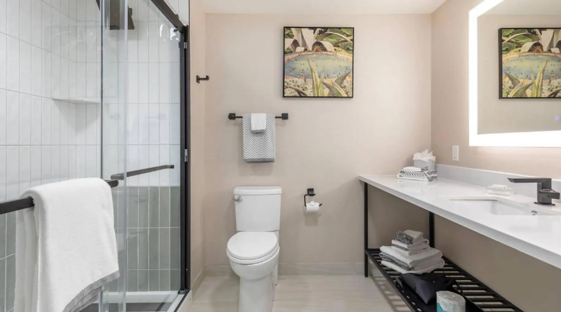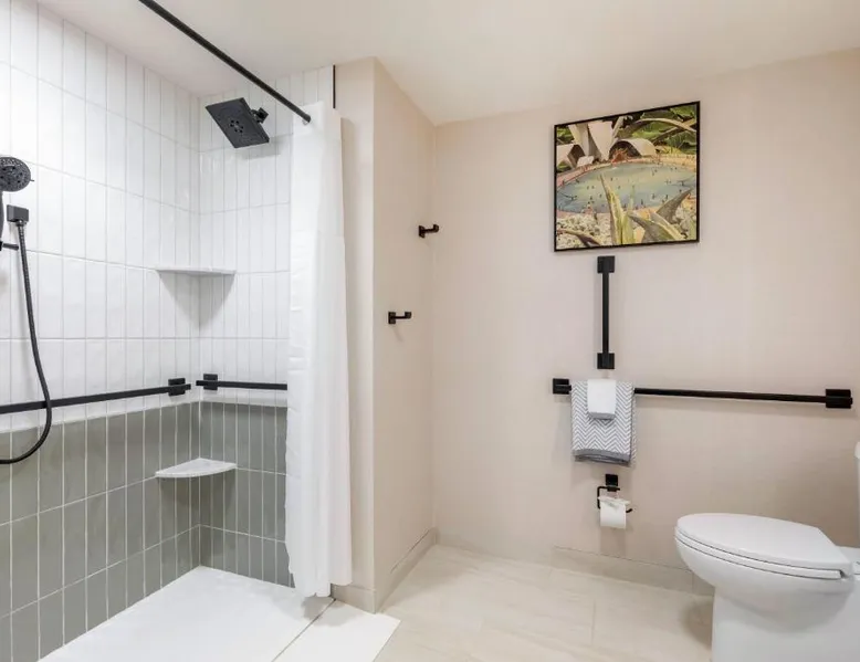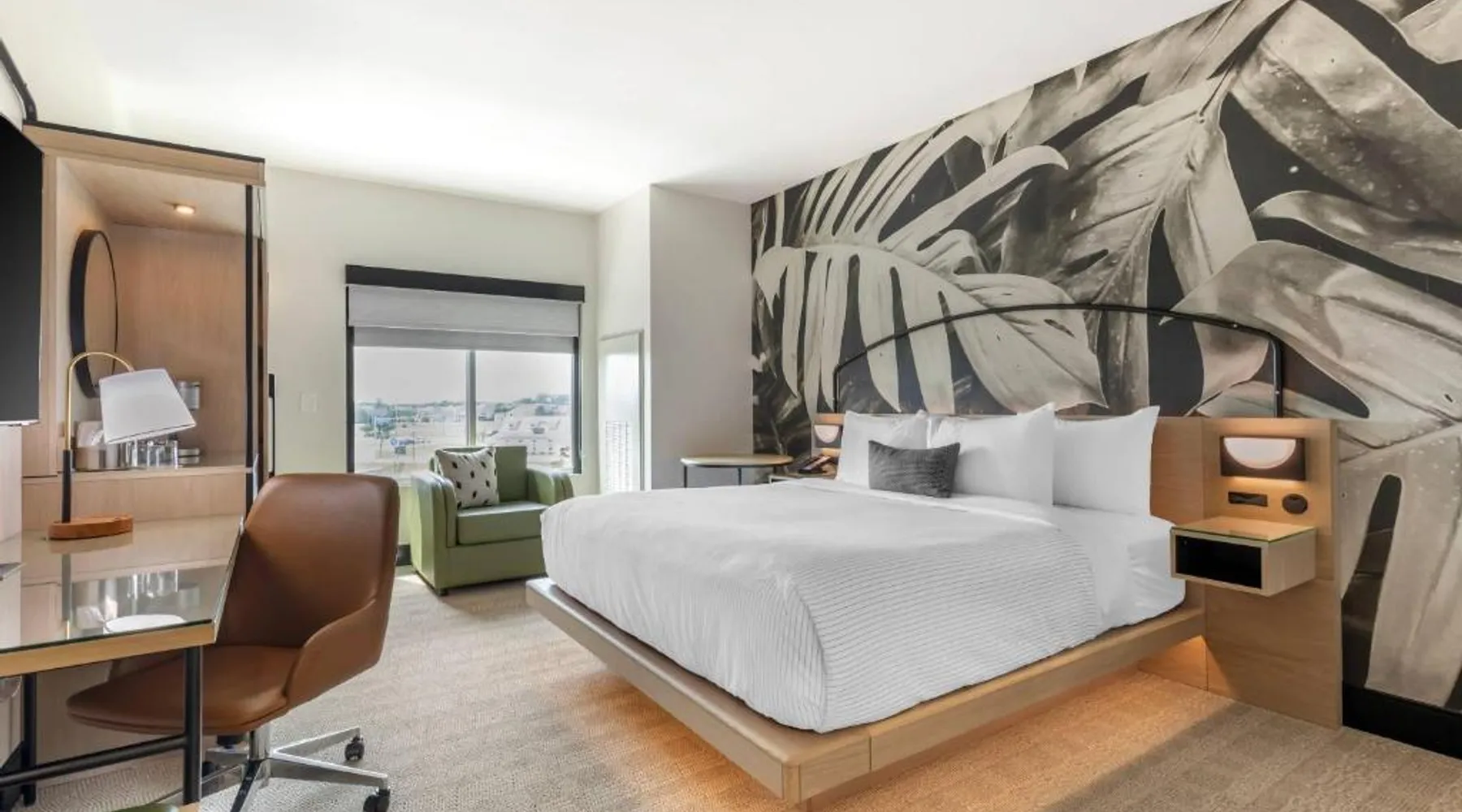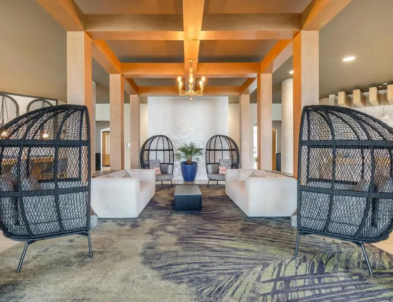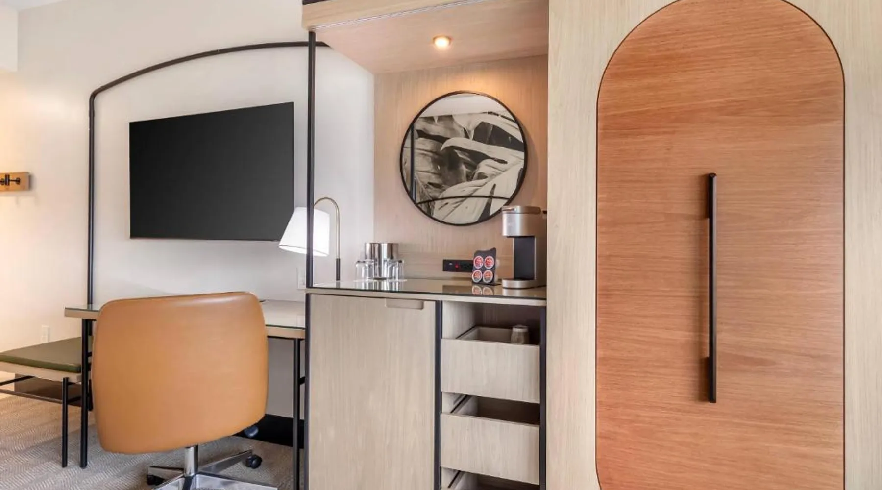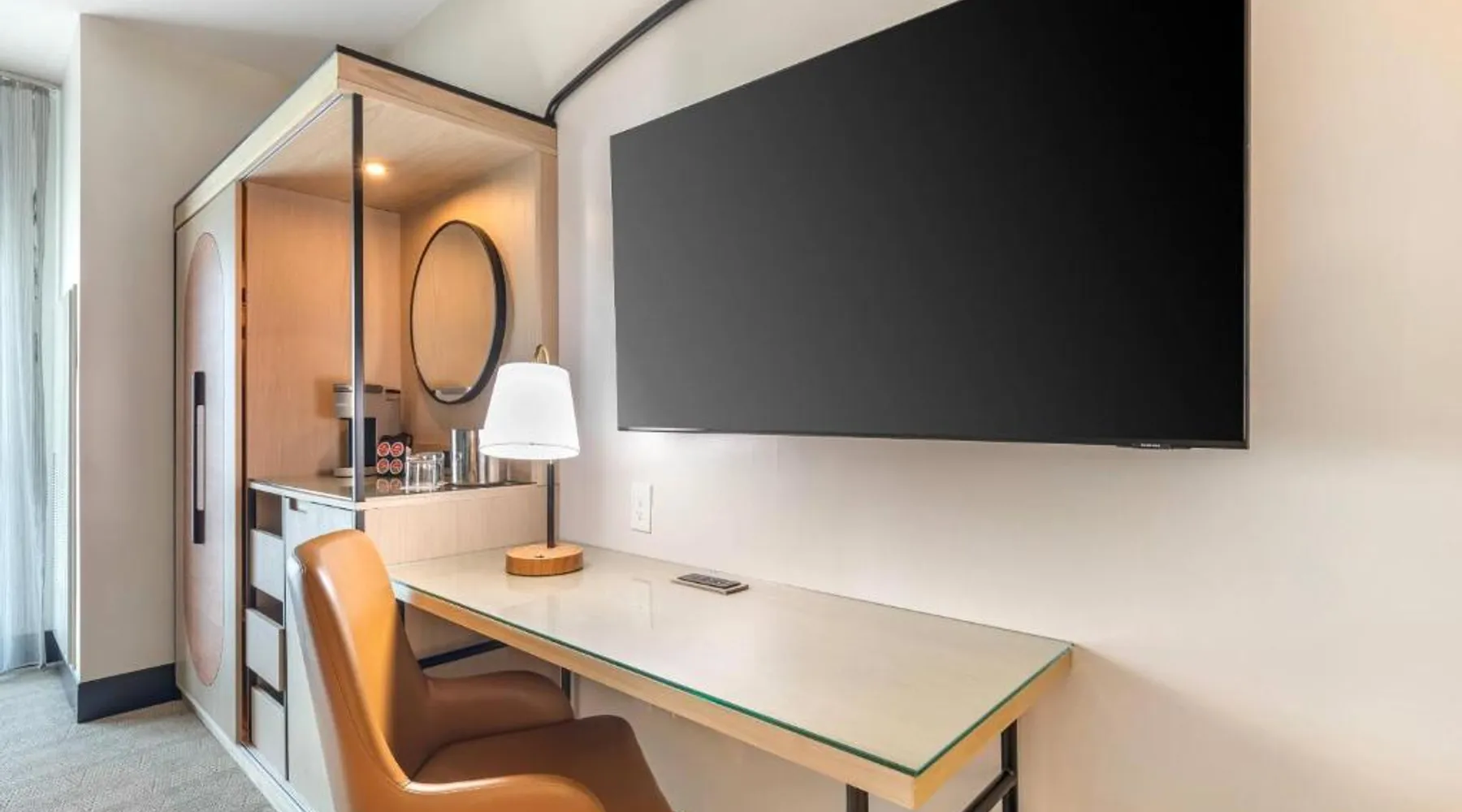 Comfortable Accommodations: Cambria Hotel Rehoboth Beach in Rehoboth Beach offers family rooms with air-conditioning, private entrances, and balconies. Each room includes a wardrobe, refrigerator, work desk, and microwave. Exceptional Facilities: Guests enjoy a fitness center, indoor swimming pool, and free WiFi in public areas. Additional amenities include a restaurant, bar, lounge, outdoor fireplace, hot tub, and games room. Dining Experience: The modern, family-friendly restaurant serves American cuisine with brunch, lunch, and dinner. The bar offers cocktails in a relaxed setting. Prime Location: Located 4.3 mi from Rehoboth Beach Boardwalk and near attractions such as Thunder Lagoon Waterpark (21 mi) and Ocean City Harbor (29 mi). Free on-site parking is available. Guest Satisfaction: Highly rated for room cleanliness, attentive staff, and excellent swimming pool. The spacious quadruple room features air conditioning, a private entrance, a wardrobe as well as a balcony with pool views. The unit has 2 beds.