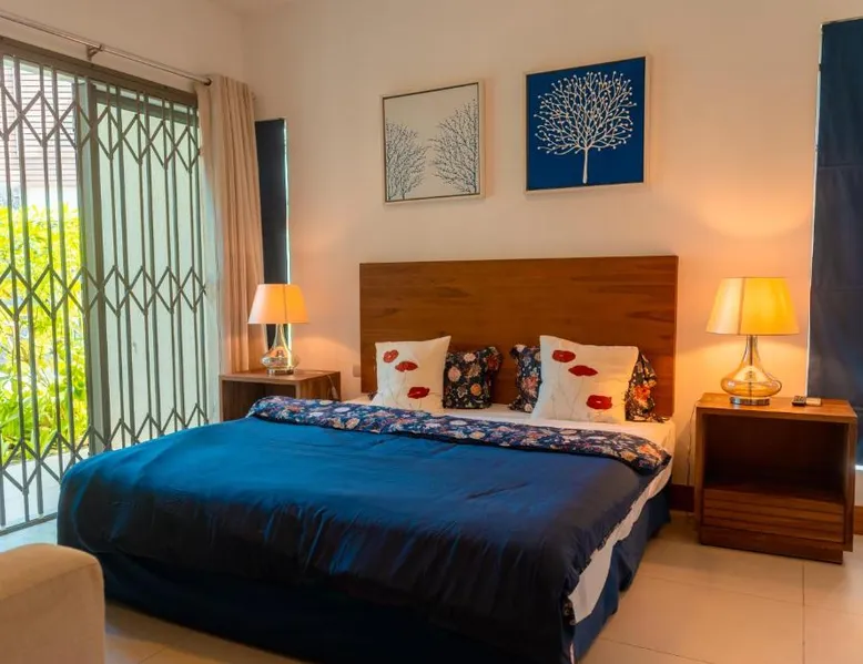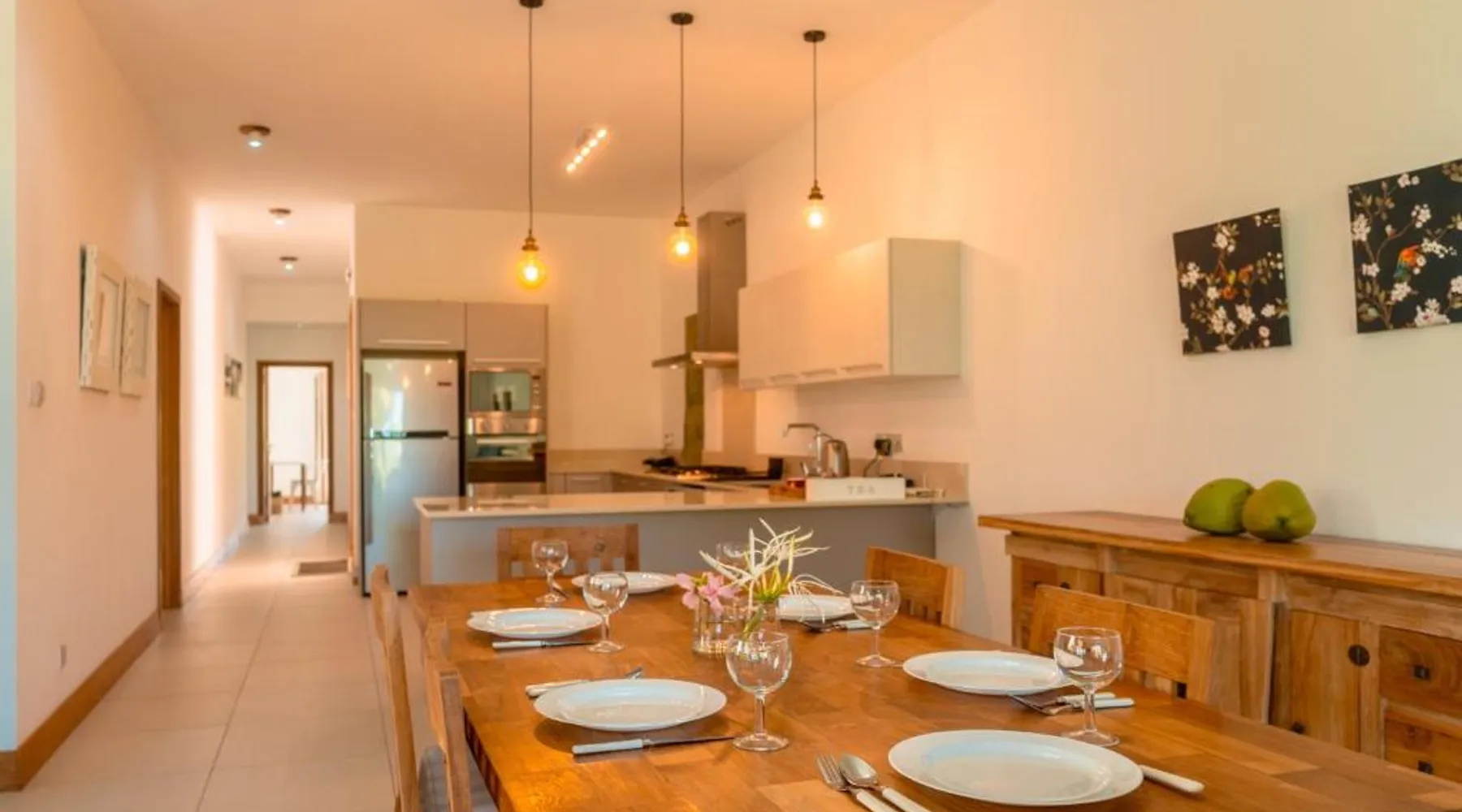 Prime Beachfront Location: Stunning Belle Mare luxury Beachfront Apartment in Flacq offers direct access to Belle Mare Beach, just a 3-minute walk away. Guests enjoy a private beach area, beachfront, sun terrace, and a year-round outdoor swimming pool. Comfortable Accommodations: The spacious apartment features three bedrooms, two bathrooms, and a living room. Equipped with air-conditioning, a terrace, balcony, and a fully fitted kitchen, it ensures a comfortable stay. Exceptional Facilities: Guests benefit from free WiFi, a hot tub, lounge, and a 24-hour front desk. Additional amenities include a shared kitchen, outdoor seating area, and free on-site private parking. Nearby Attractions: Located 29 mi from Sir Seewoosagur Ramgoolam Airport, the property is close to Le Touessrok Golf Course (12 mi) and Sir Seewoosagur Ramgoolam Botanical Garden (18 mi). The pool with a view and hot tub are the standout features of this apartment. Featuring a private entrance, this air-conditioned apartment consists of 1 living room, 3 separate bedrooms and 2 bathrooms with a bath and a shower. In the well-fitted kitchen, guests will find a refrigerator, kitchenware, a microwave and a toaster. The spacious apartment provides a washing machine, a tea and coffee maker, a seating area as well as a terrace with sea views. The unit offers 3 beds.