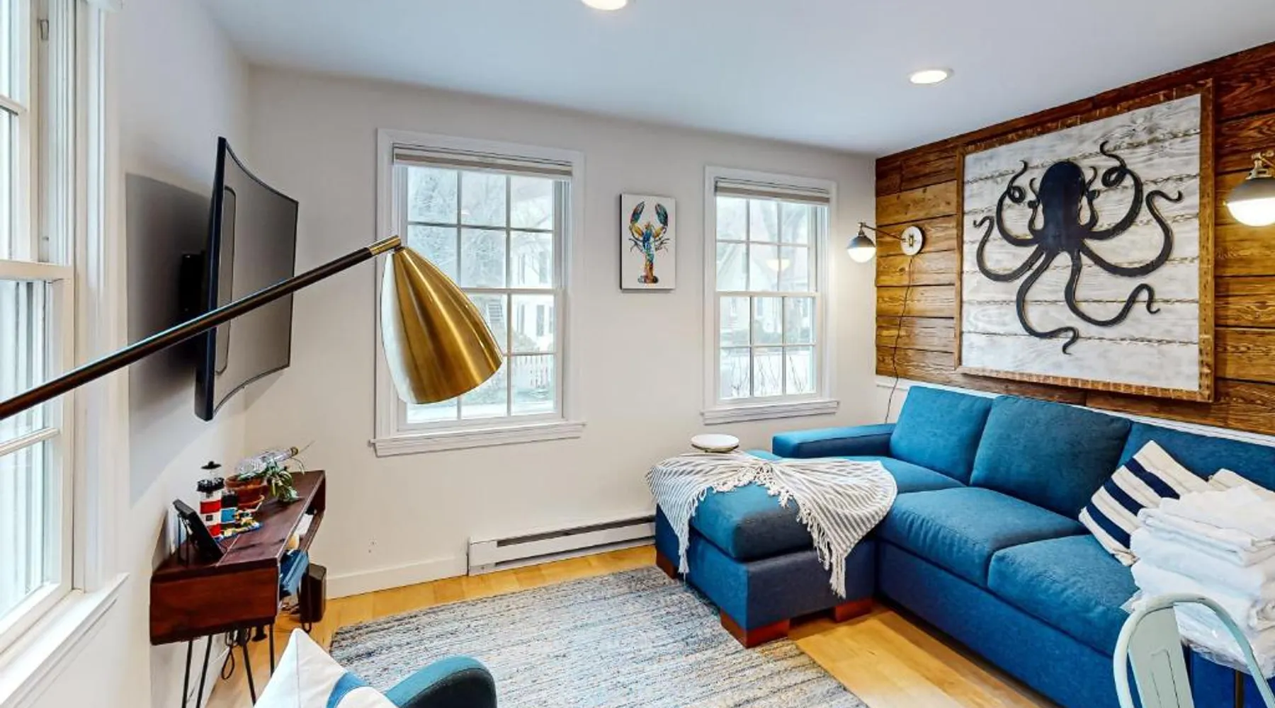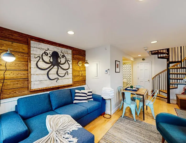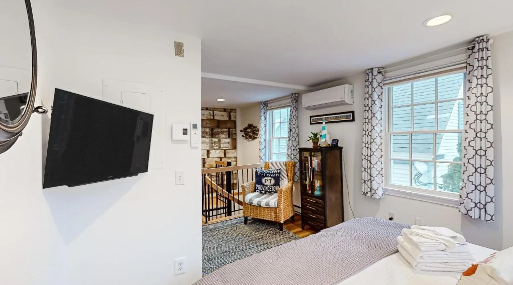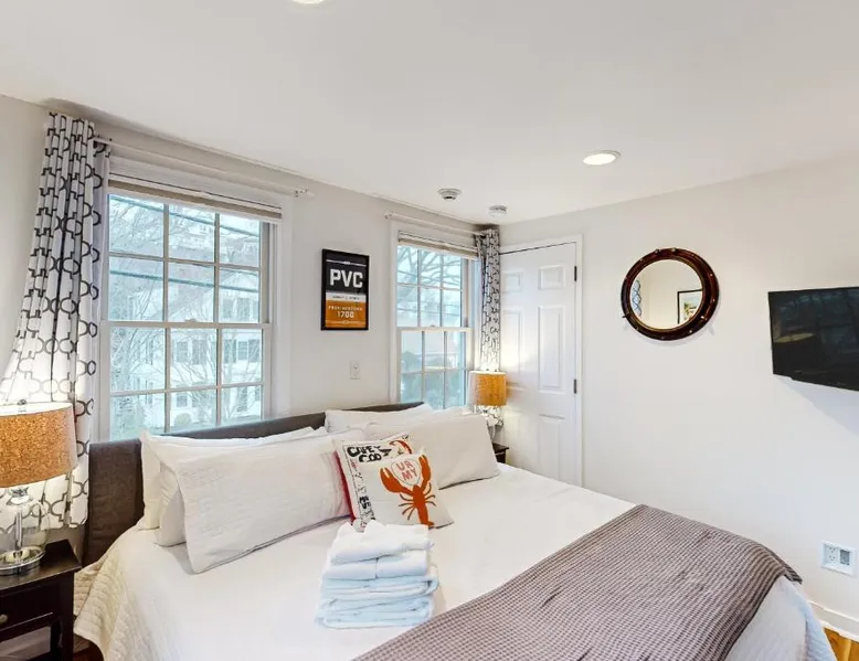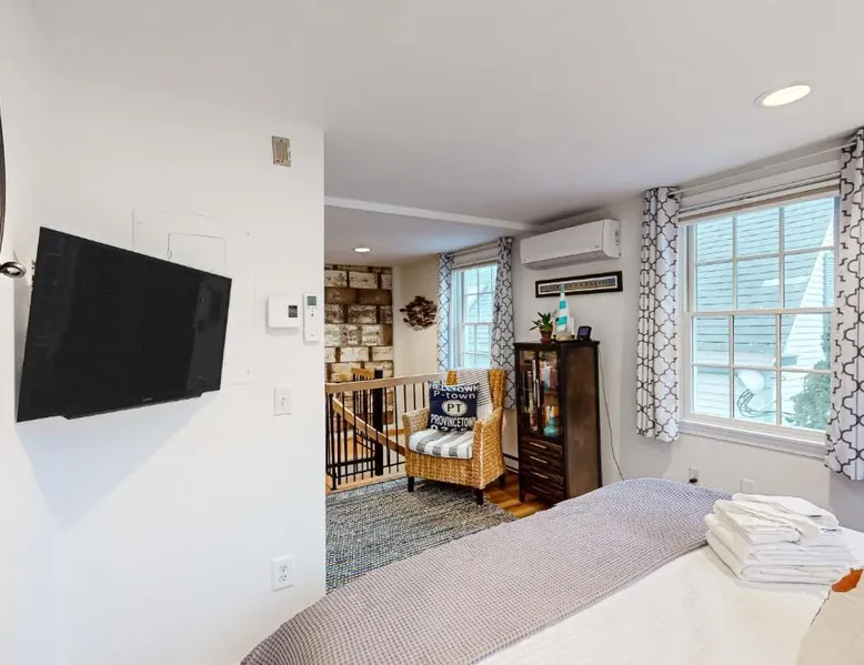 Comfortable Living: West End Getaway in Provincetown offers a one-bedroom apartment with two bathrooms and a spacious living room. The property features sea views, air-conditioning, and a fully equipped kitchen with modern appliances. Convenient Amenities: Guests can enjoy streaming services, a washing machine, and a work desk. The apartment includes a dining area, sofa bed, and outdoor seating area with furniture. Additional amenities include a dishwasher, microwave, and free toiletries. Prime Location: Located 4.3 mi from Provincetown Municipal Airport, the apartment is steps from Dog Beach and a short walk to the Pilgrim Monument. Commercial Street and Provincetown Library are 1.2 mi away. Boating opportunities are available in the surrounding area. Featuring a private entrance, this air-conditioned apartment is consisted of of 1 living room, 1 separate bedroom and 2 bathrooms with a hairdryer. Guests can make meals in the kitchen that is fitted with a stovetop, a refrigerator, a dishwasher and kitchenware. The apartment offers a TV with streaming services, a washing machine, a tea and coffee maker, a seating area as well as sea views. The unit offers 2 beds.