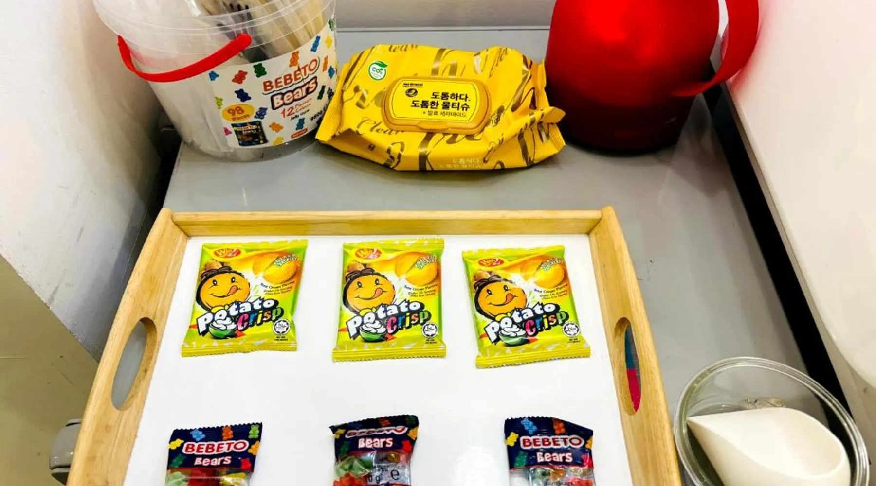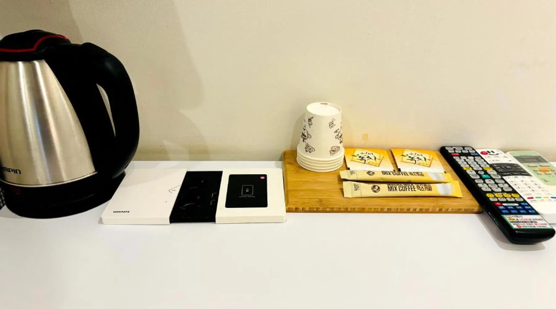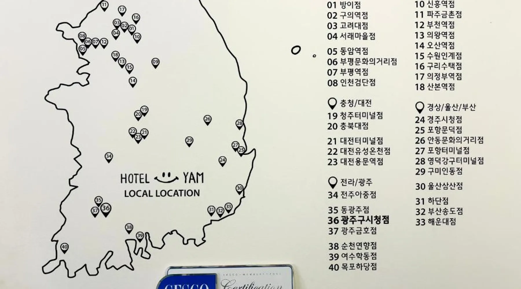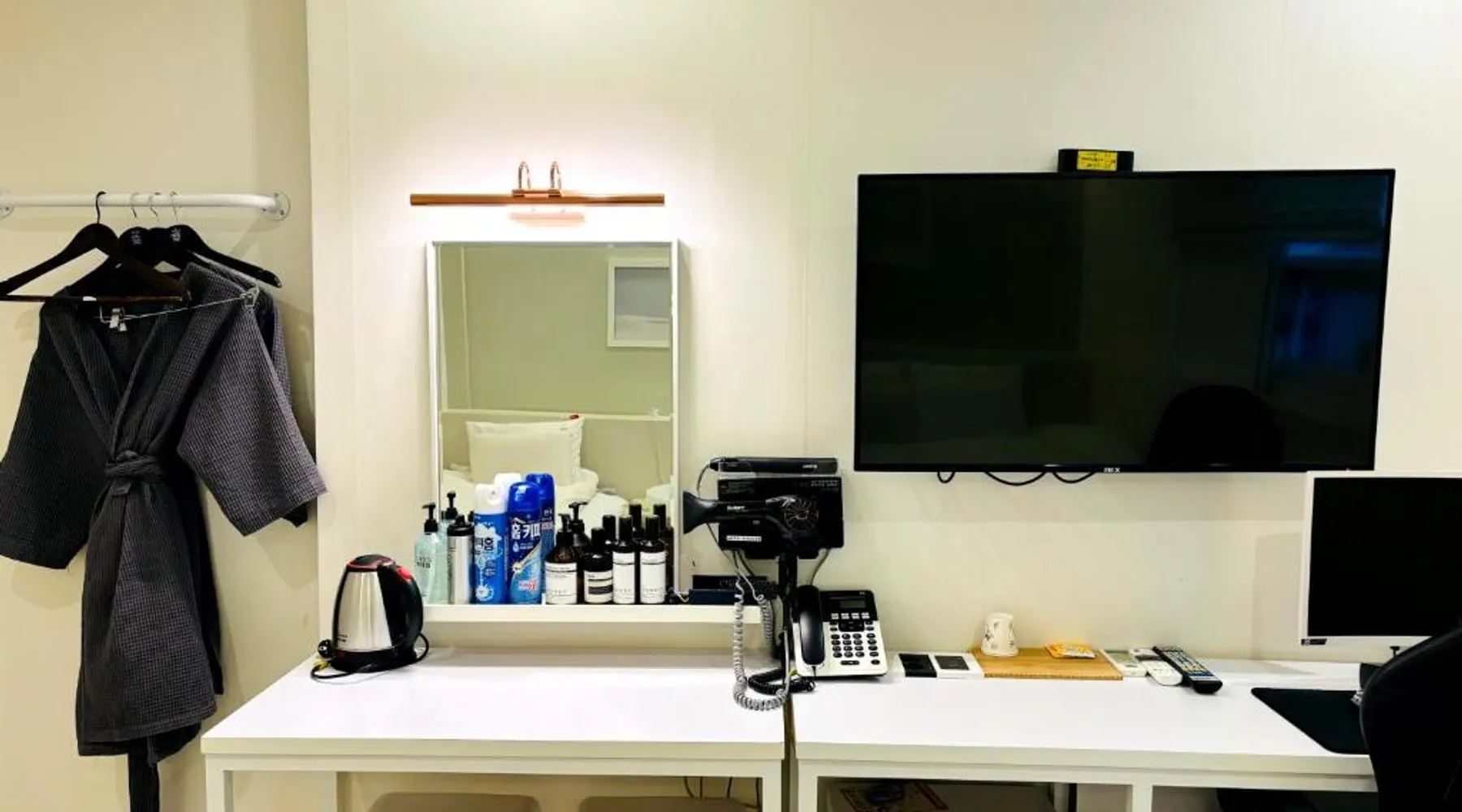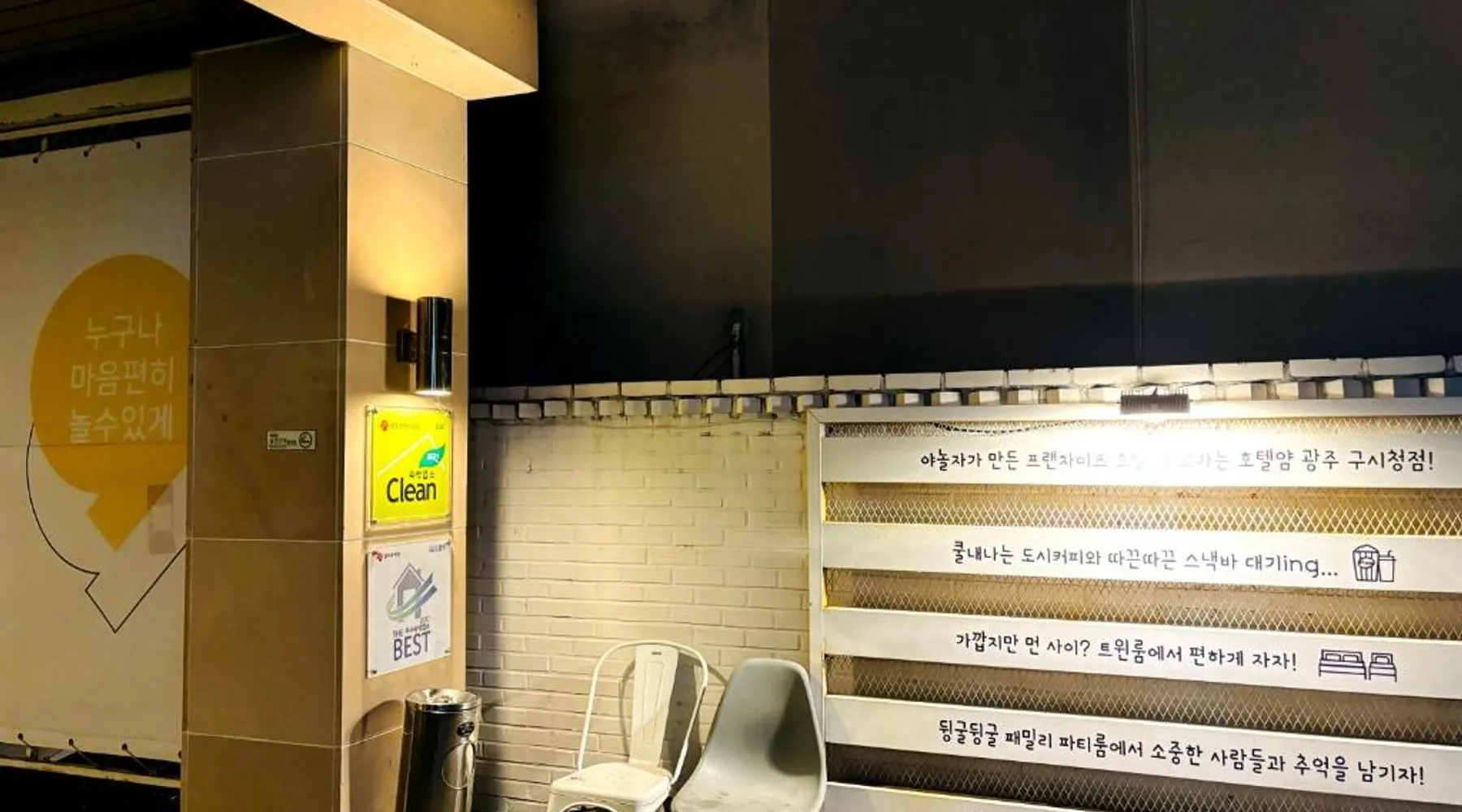 Comfortable Accommodations: Hotel Yam in Gwangju offers family rooms with air-conditioning, private bathrooms, and modern amenities. Each room includes a tea and coffee maker, refrigerator, and free toiletries. Essential Facilities: Guests enjoy free WiFi, private check-in and check-out, a 24-hour front desk, and free on-site parking. Additional services include a minimarket, housekeeping, bicycle parking, and luggage storage. Prime Location: Located 7.5 mi from Gwangju Airport, the motel is a short walk from Asian Culture Complex and near Gwangju Art Street. Other attractions include Mudŭngsan Jisan Amusement Park and Gwangju National Museum. Providing free toiletries and bathrobes, this double room includes a private bathroom with a shower, a hairdryer and slippers. This double room features air conditioning, a tea and coffee maker, flat-screen TV with streaming services, as well as chocolate for guests. The unit offers 1 bed.