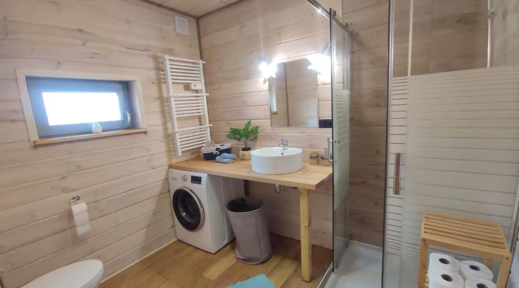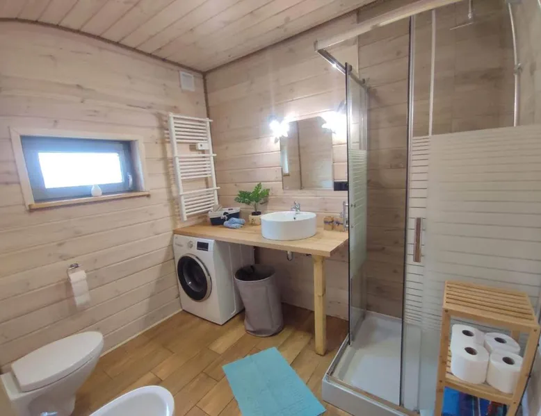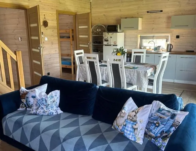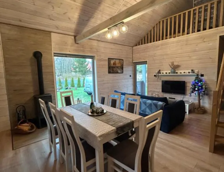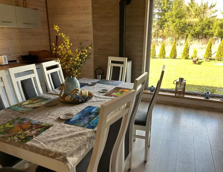 Spacious Holiday Home in Szczytno: Mazury Dom Oluś nad jeziorem Sasek Wielki z gorącą balia z funkcją jakuzzi offers a spacious holiday home in Szczytno. The property features three bedrooms, a living room, and a bathroom, ensuring comfort for all guests. Outdoor Amenities: Guests can enjoy a sun terrace, garden, and outdoor fireplace. The terrace provides a perfect spot for relaxation, while the garden offers a peaceful retreat. Free WiFi is available throughout the property, ensuring connectivity. Modern Facilities: The holiday home includes a kitchenette, washing machine, and streaming services. Additional amenities include air-conditioning, a hot tub, and a barbecue area. Free on-site private parking is provided for convenience. Local Attractions: Located 12 mi from Olsztyn-Mazury Airport, the property is close to attractions such as Olsztyn Stadium (27 mi) and Old Town (29 mi). Guests can enjoy walking tours, bike tours, hiking, and cycling in the surrounding area. The hot tub and fireplace are the standout features of this chalet. Boasting a private entrance, this air-conditioned chalet features 1 living room, 3 separate bedrooms and 1 bathroom with a shower and a bidet. Guests will find a stovetop, a refrigerator, a dishwasher and kitchenware in the fully equipped kitchen. The chalet also comes with a barbecue. The spacious chalet features a washing machine, a tea and coffee maker, a seating area, a flat-screen TV with streaming services, as well as garden views. The unit has 6 beds.