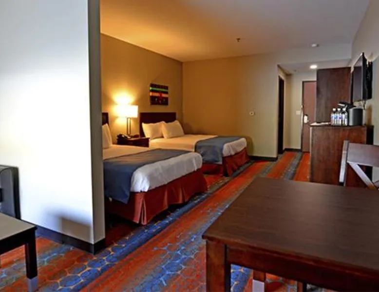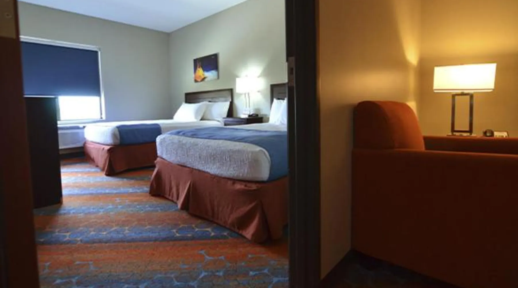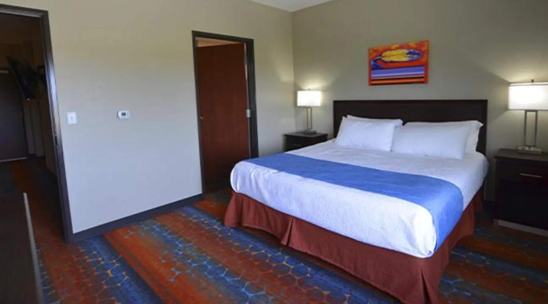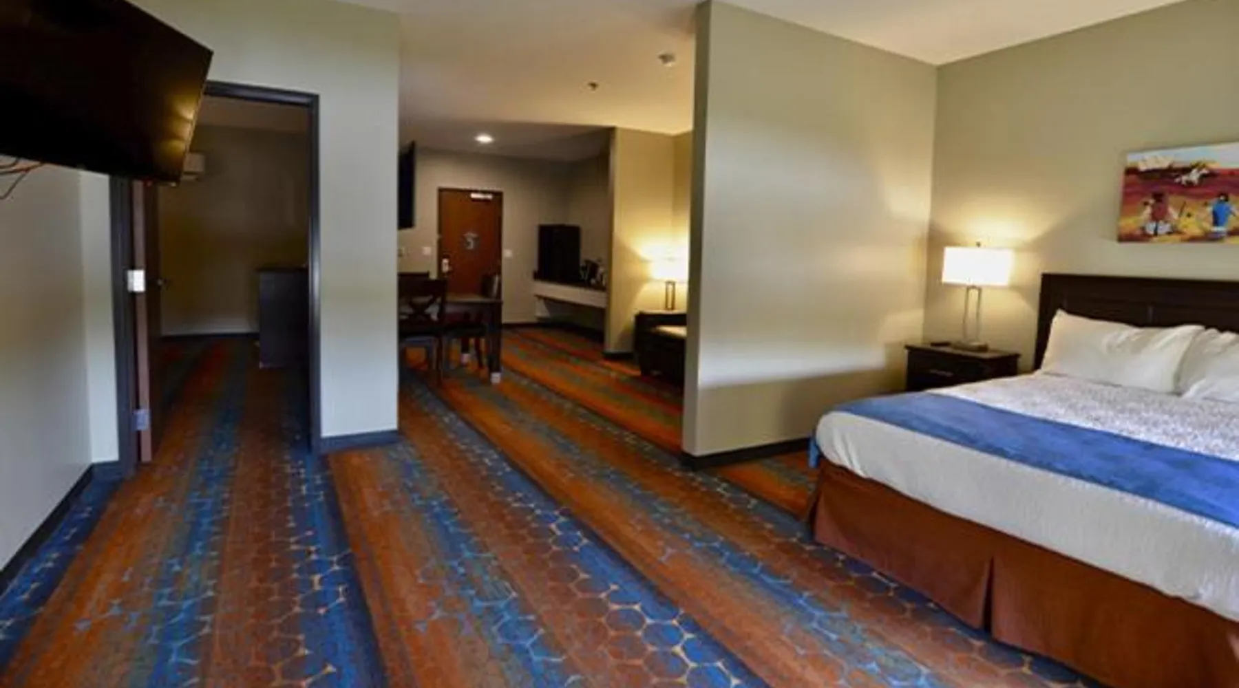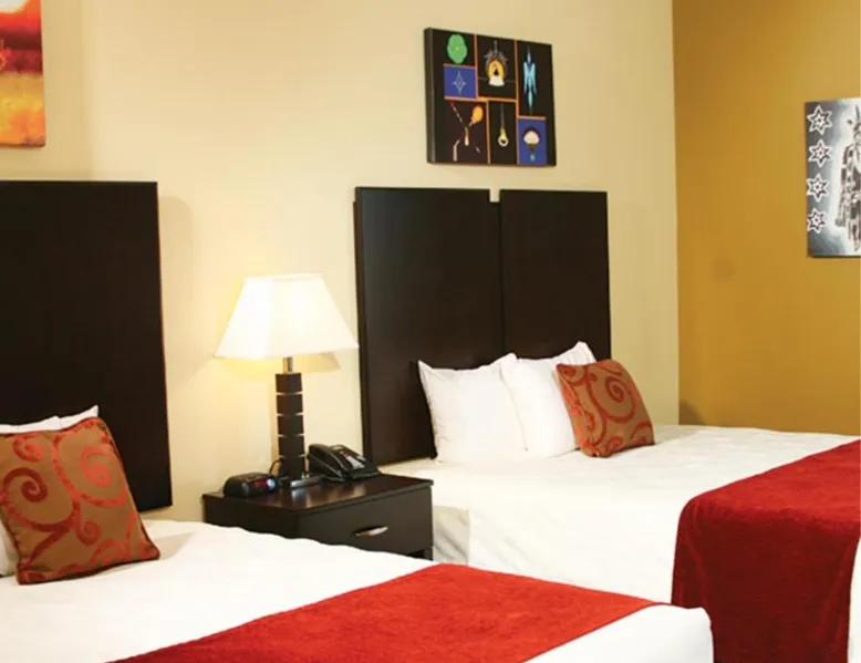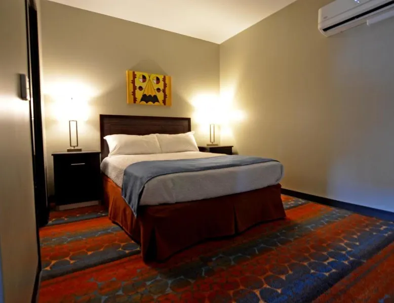 Comfortable Accommodations: 7Clans Hotel & Resort in Newkirk offers family rooms with air-conditioning, private bathrooms, and modern amenities including TV and bath. Exceptional Facilities: Guests enjoy a fitness center, indoor swimming pool, restaurant, bar, and free WiFi. Additional facilities include a elevator, 24-hour front desk, minimarket, waterpark, and business area. Dining Experience: The family-friendly restaurant serves American cuisine for dinner, complemented by fresh pastries for breakfast. Convenient Location: Located 58 mi from Stillwater Regional Airport, the hotel is near theme parks and attractions. Guests appreciate the attentive staff and child-friendly environment. This double room features air conditioning and a flat-screen TV. The unit has 2 beds.