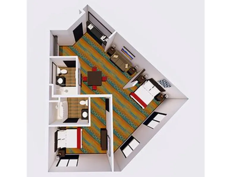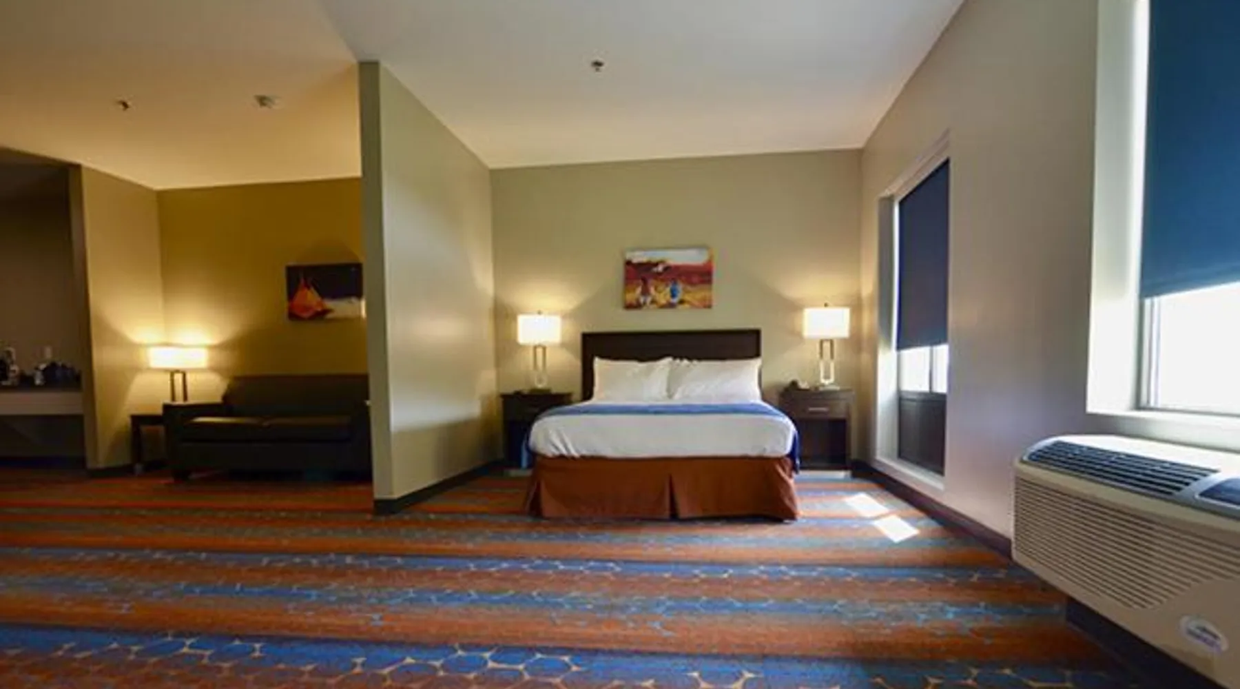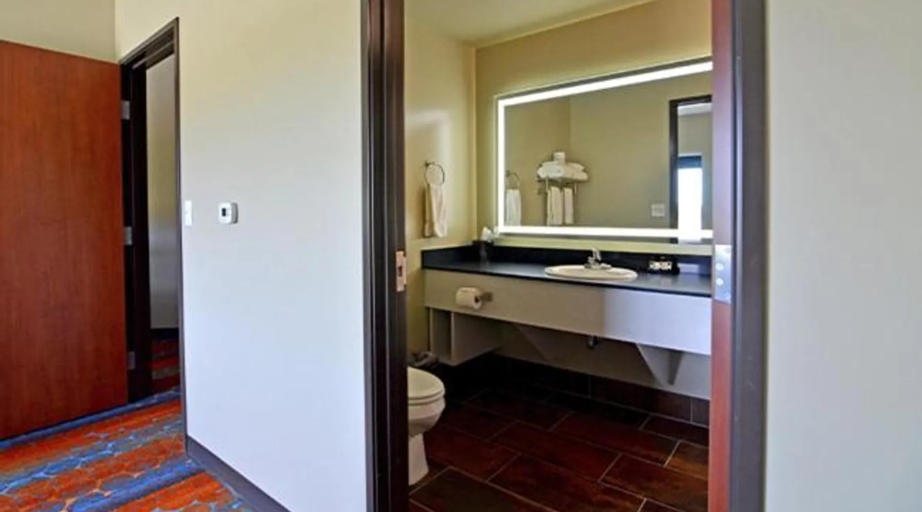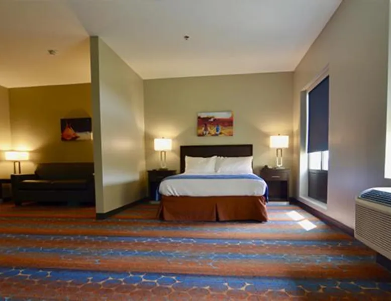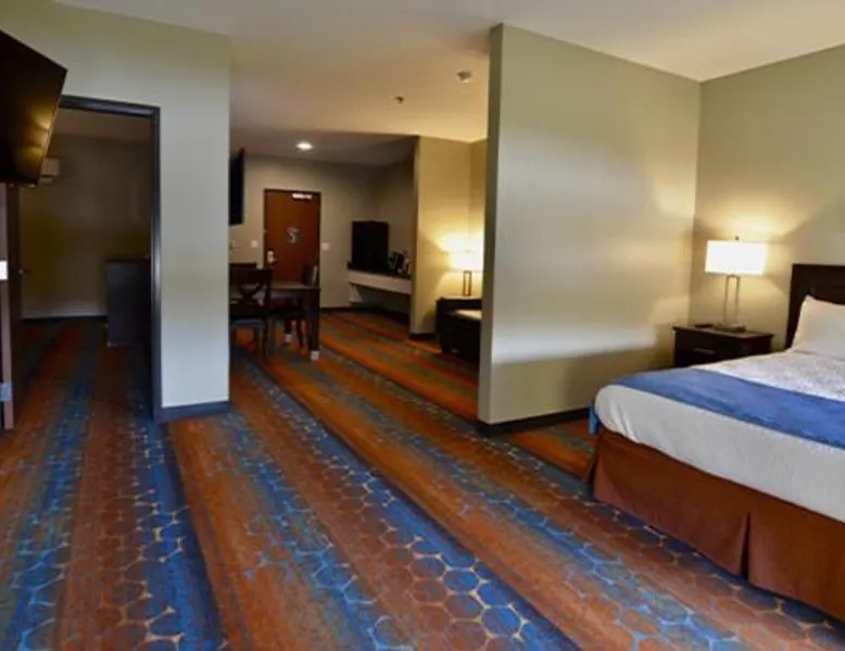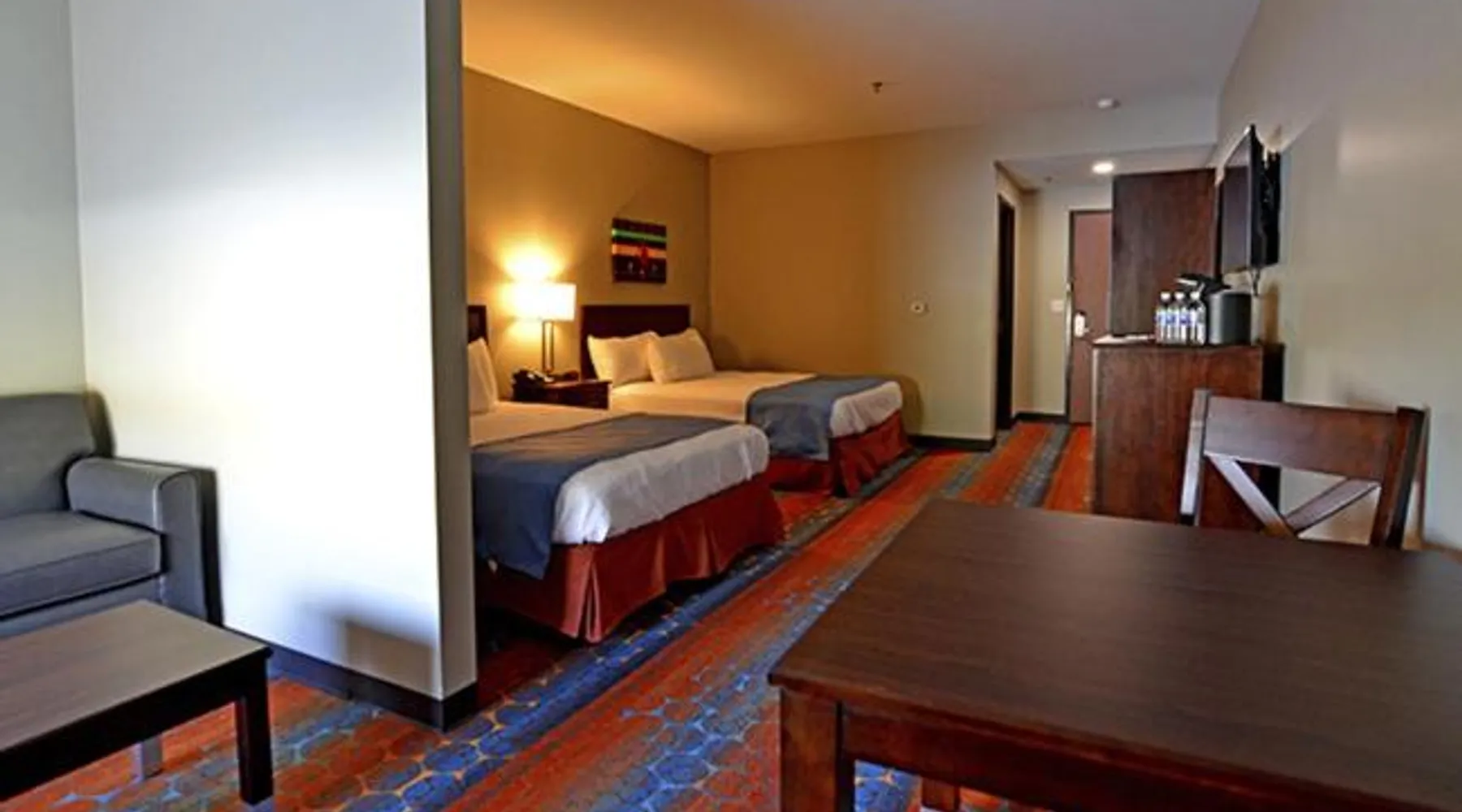 Comfortable Accommodations: 7Clans Hotel & Resort in Newkirk offers family rooms with air-conditioning, private bathrooms, and modern amenities including TV and bath. Exceptional Facilities: Guests enjoy a fitness center, indoor swimming pool, restaurant, bar, and free WiFi. Additional facilities include a elevator, 24-hour front desk, minimarket, waterpark, and business area. Dining Experience: The family-friendly restaurant serves American cuisine for dinner, complemented by fresh pastries for breakfast. Convenient Location: Located 58 mi from Stillwater Regional Airport, the hotel is near theme parks and attractions. Guests appreciate the attentive staff and child-friendly environment. This double room features air conditioning and a flat-screen TV. The unit has 2 beds.