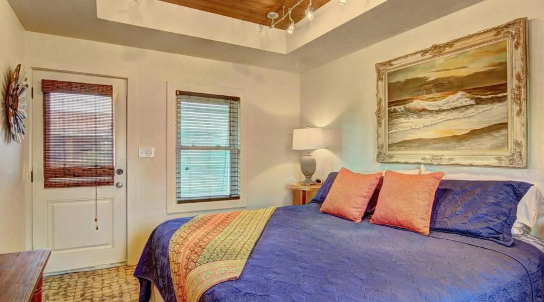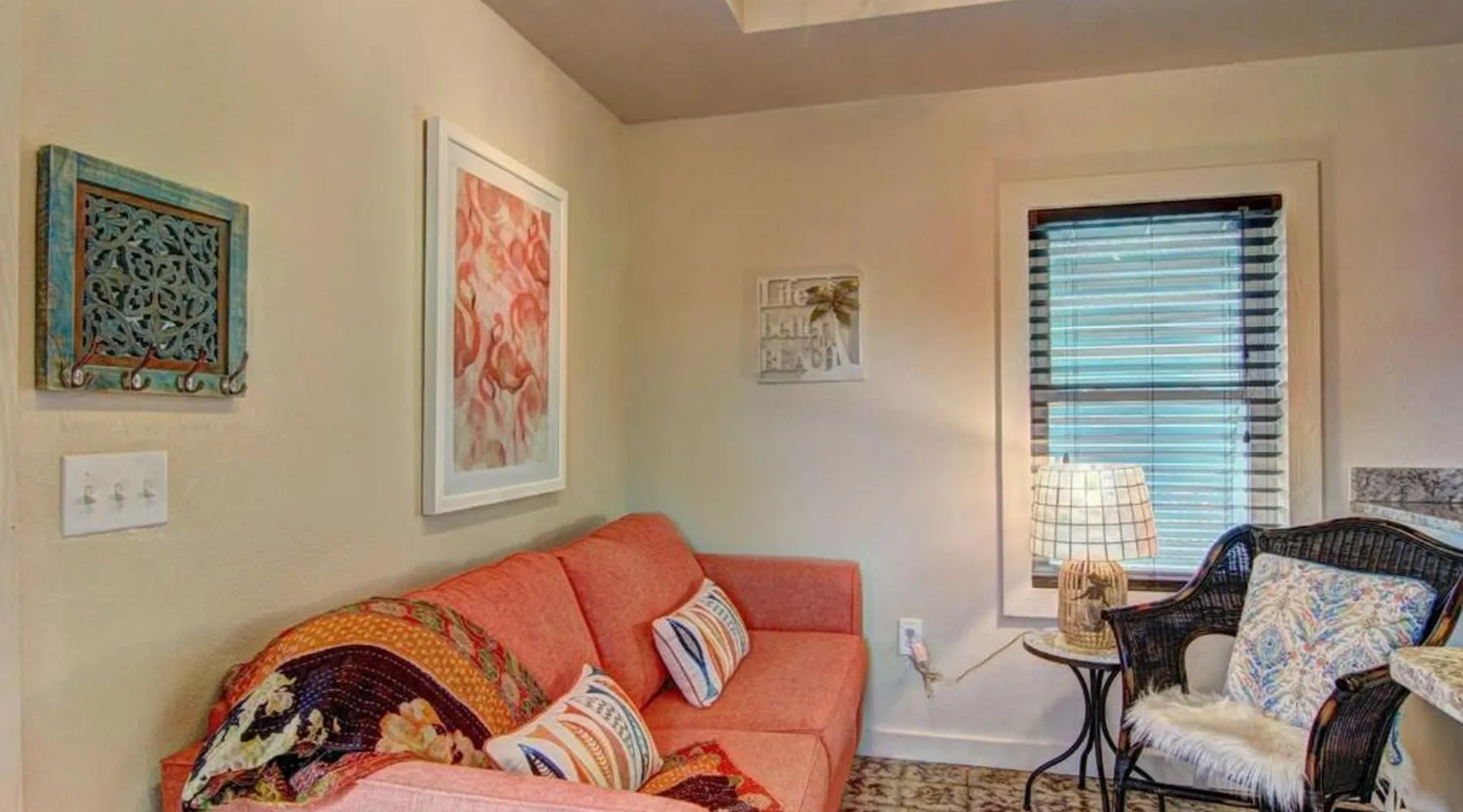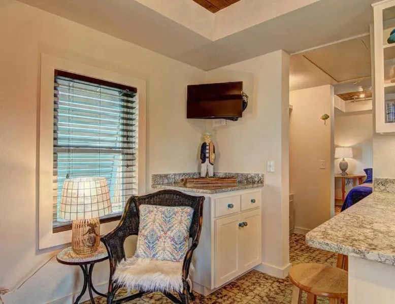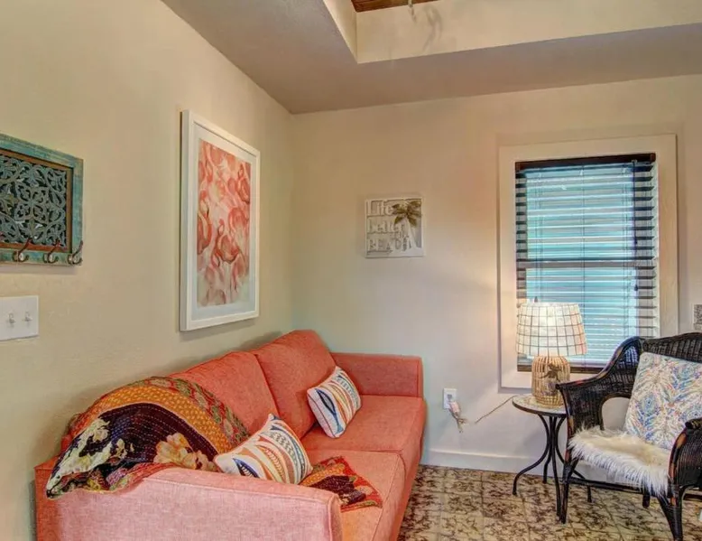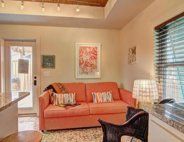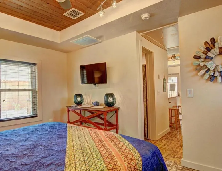 Comfortable Living: Lorna Beach Cottage at Spanish Village in Port Aransas offers a holiday home with one bedroom, a bathroom, and a spacious living room. Guests enjoy free WiFi, air-conditioning, and a private entrance. Outdoor Amenities: The property features a garden and a patio with outdoor furniture. A barbecue is available for outdoor dining, and the kitchen is equipped with a refrigerator, microwave, oven, stovetop, and kitchenware. Convenient Location: Located 39 mi from Corpus Christi International Airport, the cottage is a short walk from Port Aransas Beach (13 minutes) and Port Aransas Marina (1.1 mi). Nearby attractions include Port Aransas Art Center (656 feet) and Port Aransas Museum (7-minute walk). Boasting a private entrance, this air-conditioned holiday home comes with 1 living room, 1 separate bedroom and 1 bathroom with a hairdryer. Guests will find a stovetop, a refrigerator, kitchenware and an oven in the fully equipped kitchen. The holiday home also includes a barbecue. This holiday home has a tea and coffee maker, a wardrobe, a TV and a patio. The unit has 2 beds.