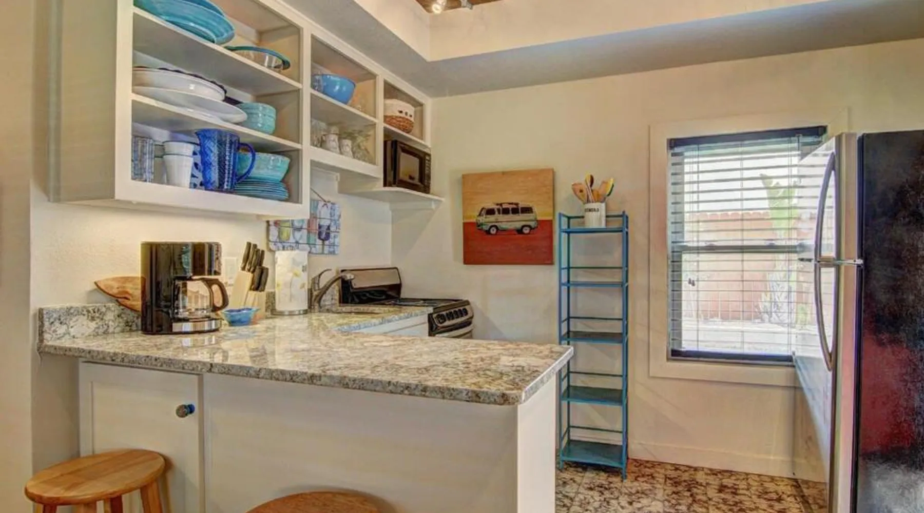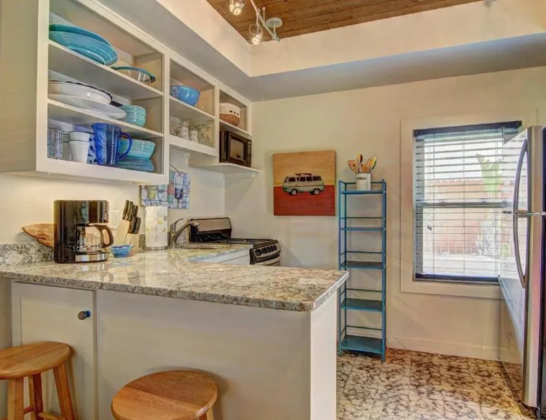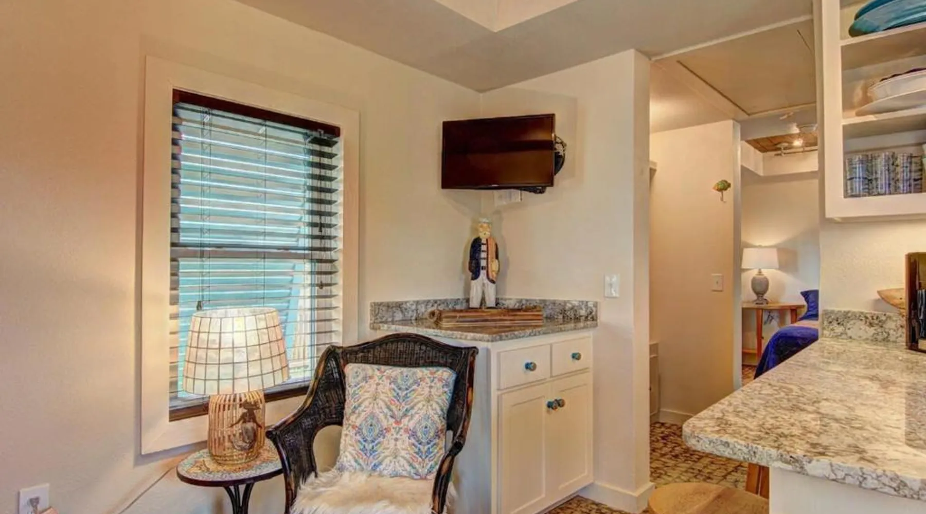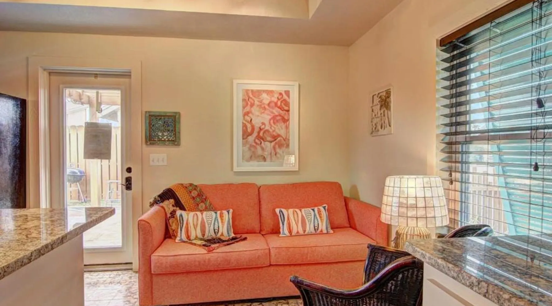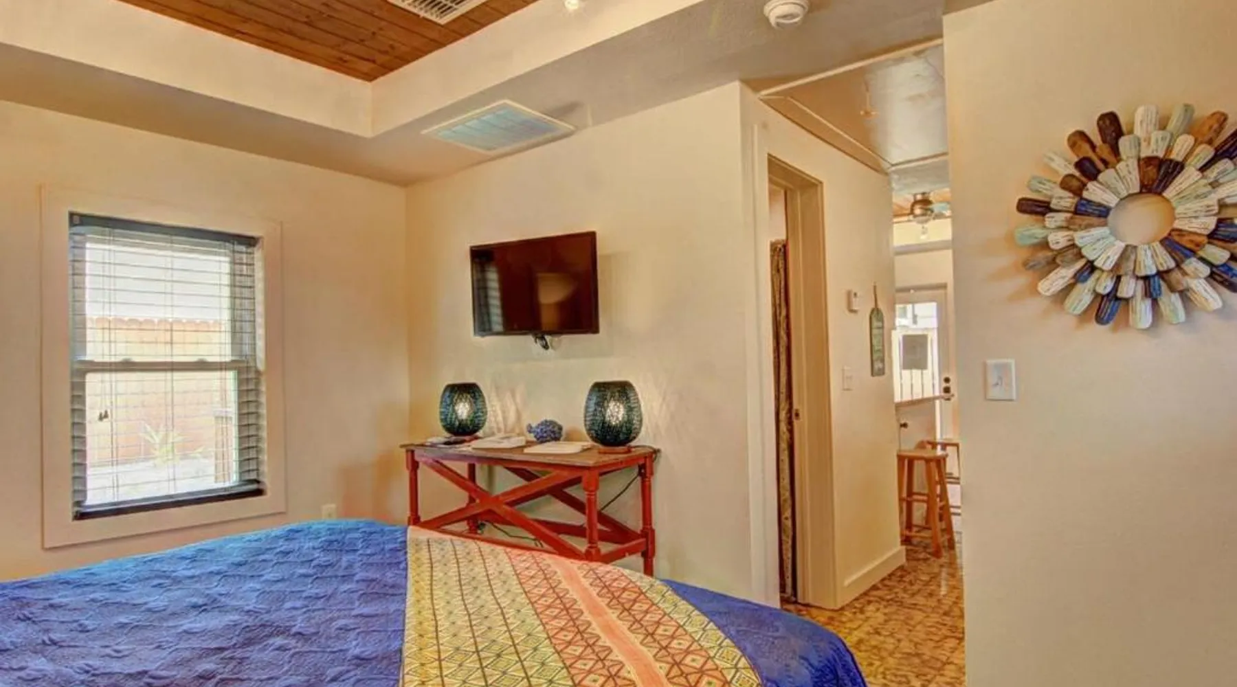 Comfortable Living: Lorna Beach Cottage at Spanish Village in Port Aransas offers a holiday home with one bedroom, a bathroom, and a spacious living room. Guests enjoy free WiFi, air-conditioning, and a private entrance. Outdoor Amenities: The property features a garden and a patio with outdoor furniture. A barbecue is available for outdoor dining, and the kitchen is equipped with a refrigerator, microwave, oven, stovetop, and kitchenware. Convenient Location: Located 39 mi from Corpus Christi International Airport, the cottage is a short walk from Port Aransas Beach (13 minutes) and Port Aransas Marina (1.1 mi). Nearby attractions include Port Aransas Art Center (656 feet) and Port Aransas Museum (7-minute walk). Boasting a private entrance, this air-conditioned holiday home comes with 1 living room, 1 separate bedroom and 1 bathroom with a hairdryer. Guests will find a stovetop, a refrigerator, kitchenware and an oven in the fully equipped kitchen. The holiday home also includes a barbecue. This holiday home has a tea and coffee maker, a wardrobe, a TV and a patio. The unit has 2 beds.