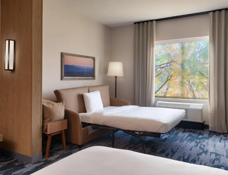 Comfortable Accommodations: Fairfield by Marriott Inn & Suites Salt Lake City Cottonwood in Holladay offers family rooms with mountain or city views, work desks, and free WiFi. Each room includes a bath, shower, and a coffee machine. Exceptional Facilities: Guests can enjoy a fitness center, indoor swimming pool, and hot tub. Additional amenities include a lounge, outdoor fireplace, and electric vehicle charging station. Free on-site private parking is available. Delicious Breakfast: A continental buffet breakfast with gluten-free options is served daily, featuring warm dishes, fresh pastries, fruits, and juice. Prime Location: Located 16 mi from Salt Lake City International Airport, the hotel is near attractions such as Trolley Square (9.3 mi) and Utah Museum of Natural History (13 mi). Guests appreciate the room cleanliness and excellent service. The double room features a coffee machine and city views. The unit has 2 beds.