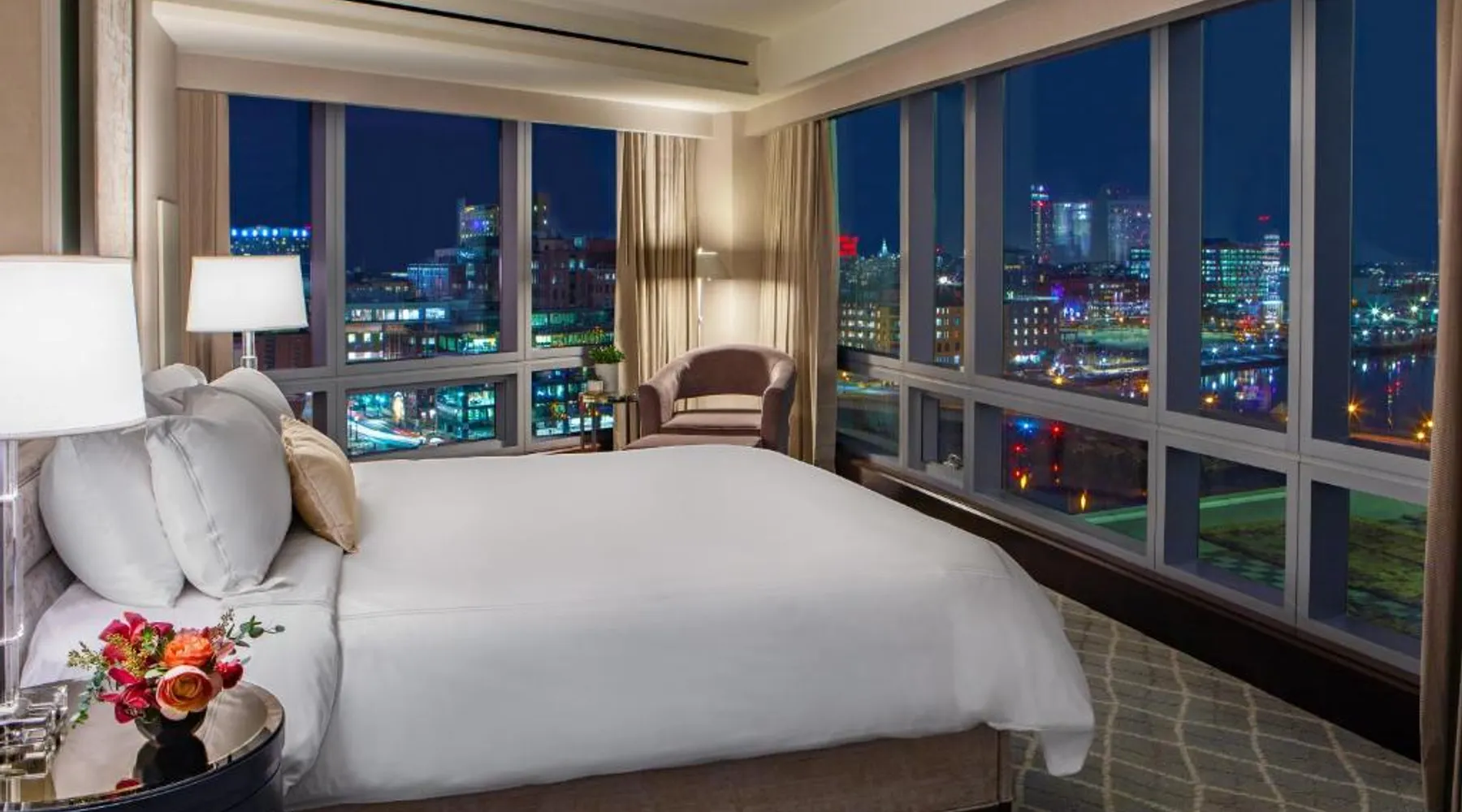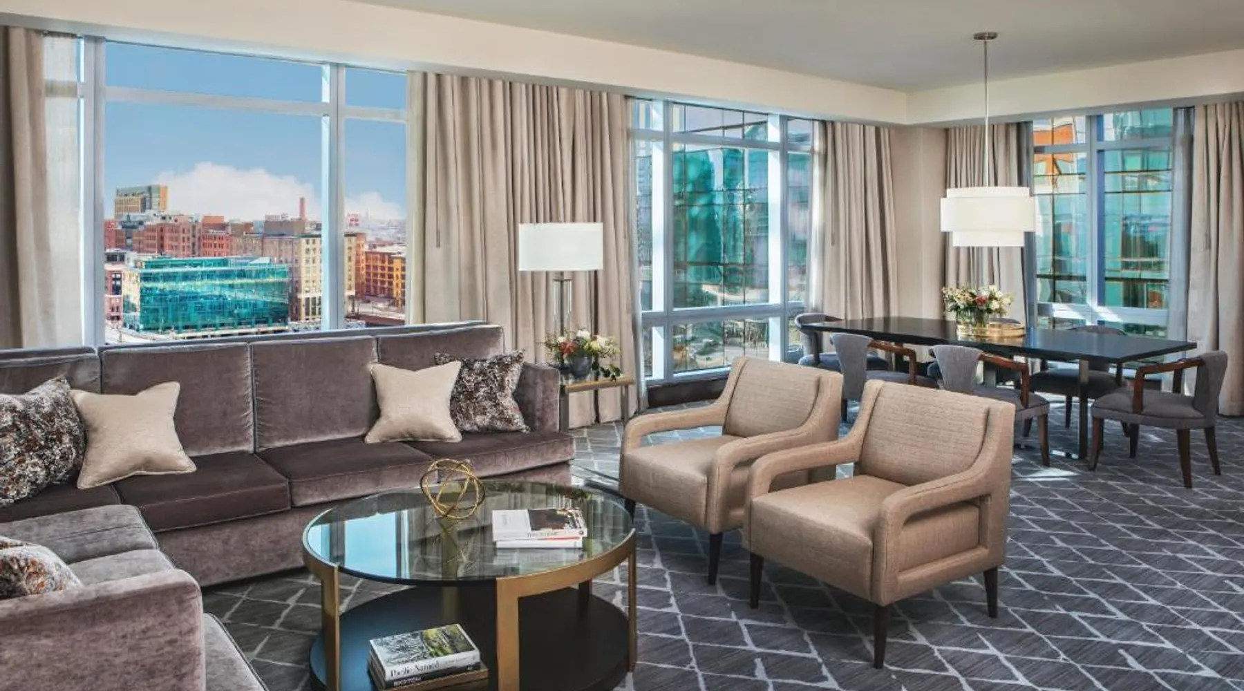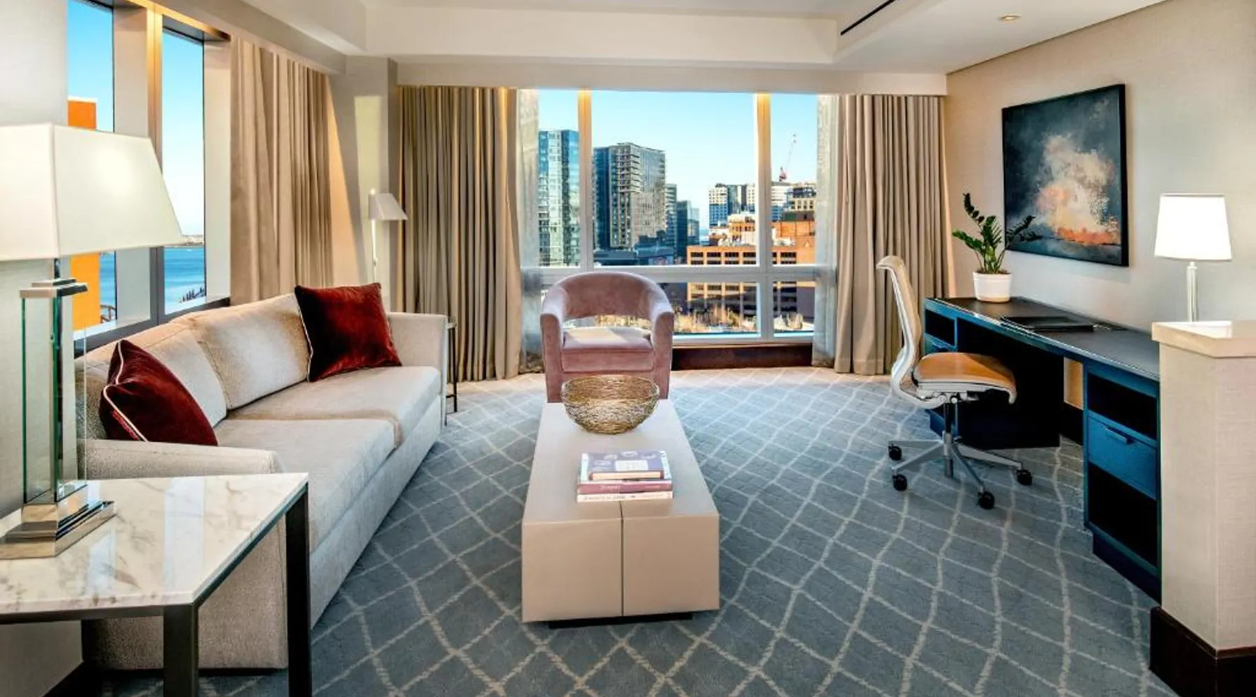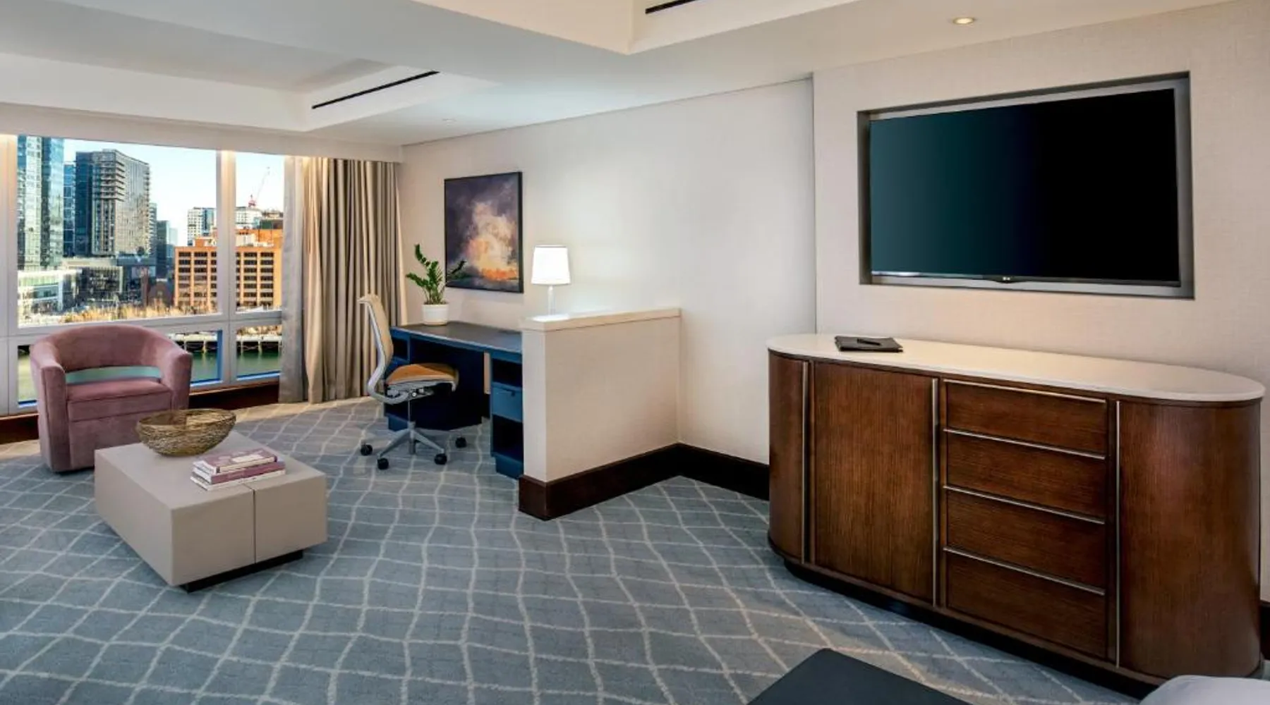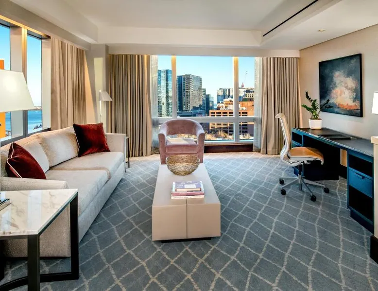 This hotel is 0.6 mi from Boston Common and Faneuil Hall, set along the city’s scenic waterfront. It features an on-site spa, fitness center, and a range of refined dining experiences. Each modern guest room at InterContinental Boston offers floor-to-ceiling windows, soothing coastal-inspired tones, and views of either the Boston Harbor or city skyline. Amenities include a 55" flat-screen TV, coffee maker, in-room safe, and complimentary Wi-Fi for IHG One Rewards members. Dining options include Matria, serving spirited Northern Italian cuisine in a vibrant, modern setting; Bar Fellini, an Italian-inspired cocktail lounge that brings Boston a taste of aperitivo culture; and The Loyall Counting Room, a hidden speakeasy honoring the city’s revolutionary roots. Guests can also enjoy Matria Terrace for alfresco dining and handcrafted cocktails with harbor views, or relax with In-Room Dining featuring locally inspired favorites. Spa InterContinental offers revitalizing body and facial treatments, steam rooms, and a full-service fitness center. The spa opens at 6:00 a.m. on weekdays and 7:00 a.m. on weekends, with treatments available from 9:00 a.m. to 8:00 p.m. The Boston Convention and Exhibition Center is less than 0.8 mi from the hotel, and Logan International Airport is 3.7 mi away. Following a multi-phase renovation, the hotel now features a newly redesigned lobby, meeting spaces, guestrooms, and Club Lounge—reflecting the shimmering beauty of the Fort Point Channel and Boston’s maritime heritage. Offering free toiletries and bathrobes, this suite includes a private bathroom with a walk-in shower, a bath and a hairdryer. The spacious air-conditioned suite offers a flat-screen TV with cable channels, a mini-bar, a tea and coffee maker, executive lounge access as well as sea views. The unit offers 1 bed.