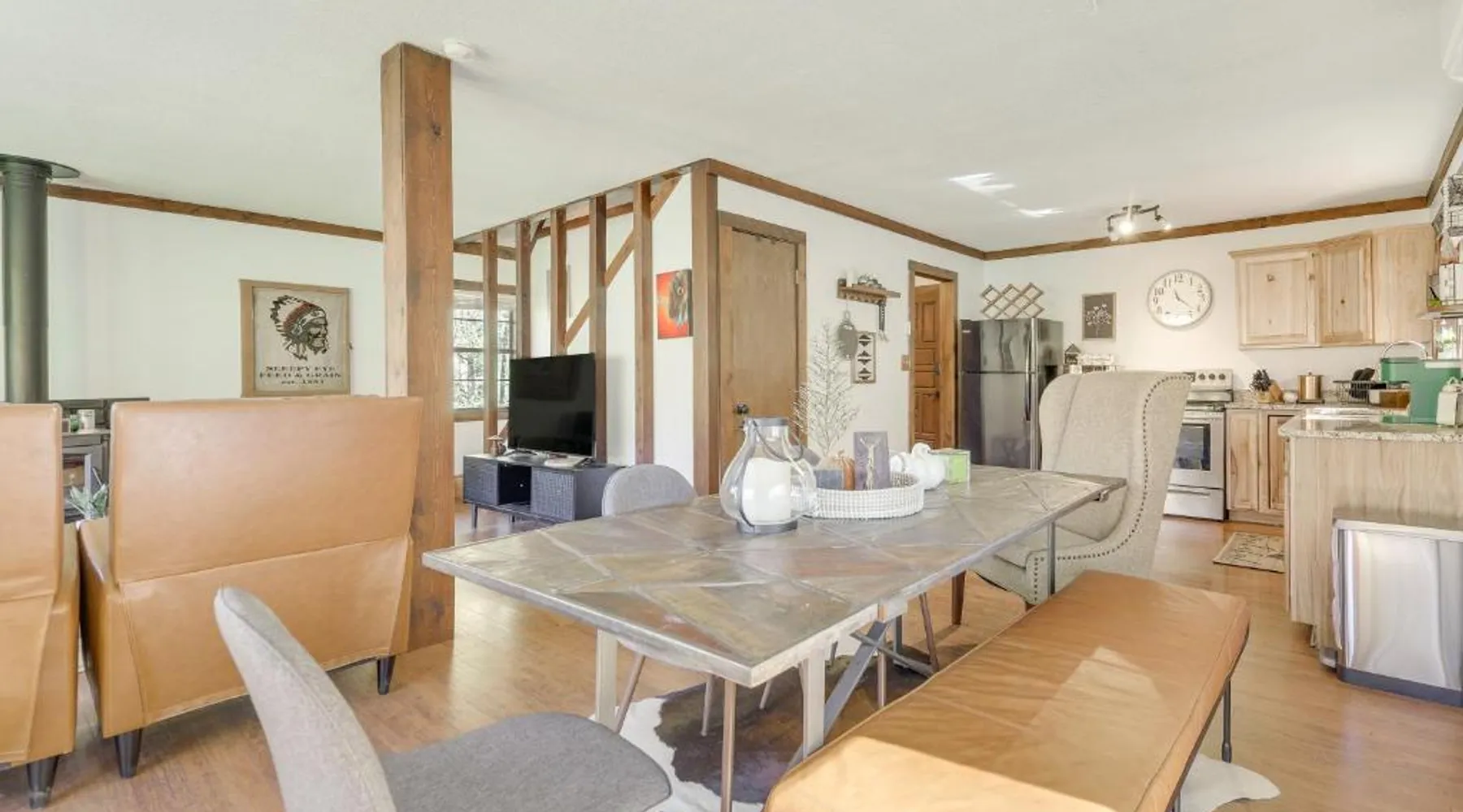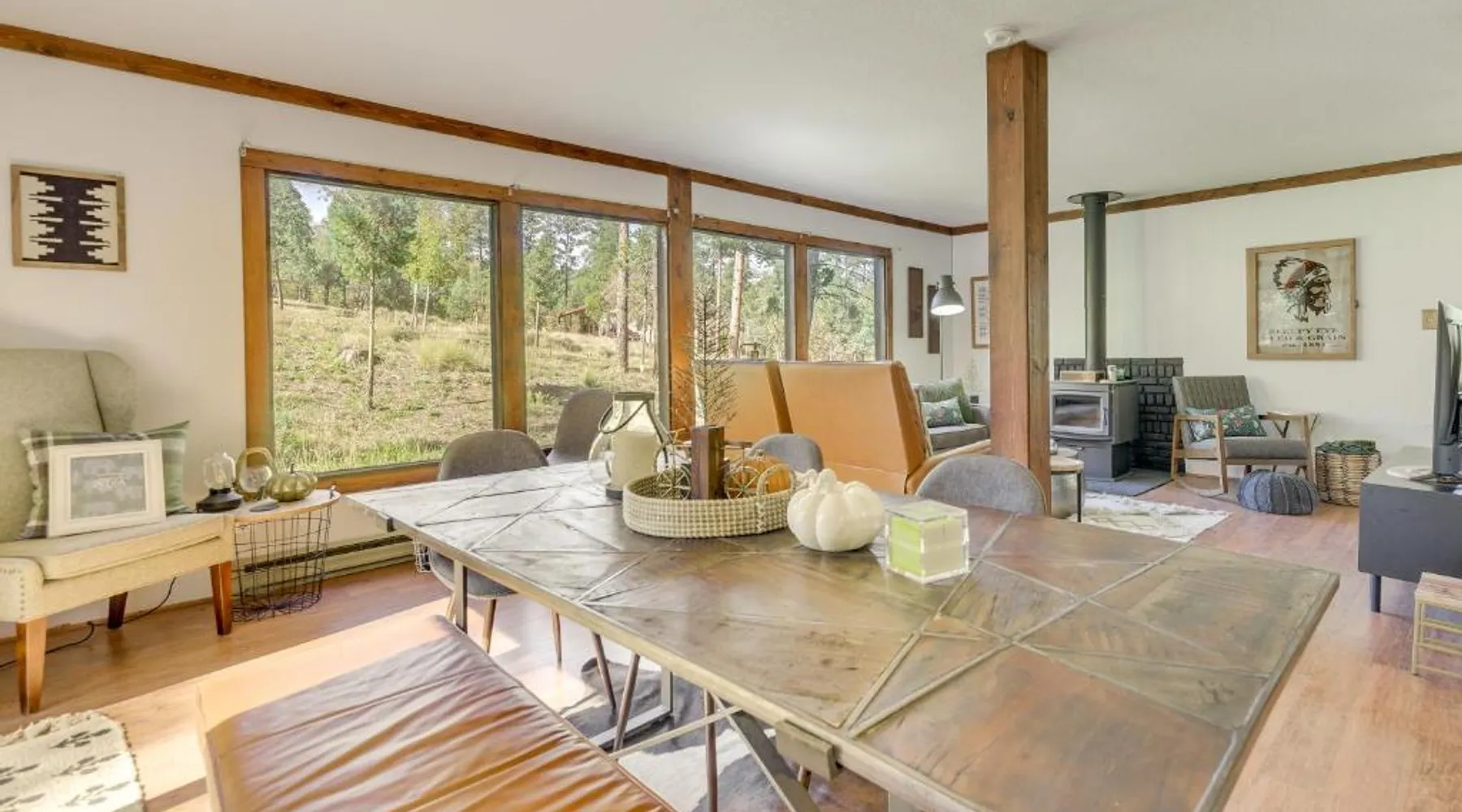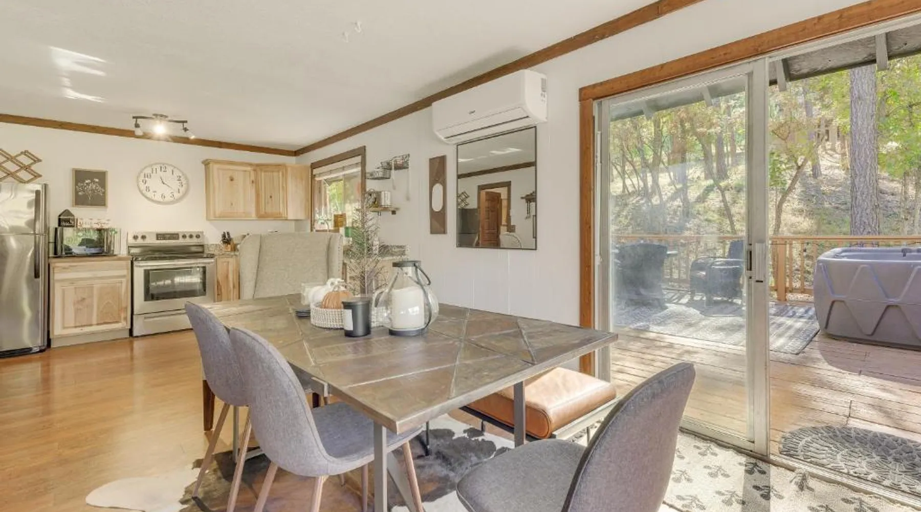 Comfortable Accommodations: Ruidoso Rental with Private Hot Tub Walk to Midtown offers a holiday home in Ruidoso, United States. The property features two bedrooms and two bathrooms, a spacious living room, and a fully equipped kitchen. Modern Amenities: Guests enjoy free WiFi, air-conditioning, a hot tub, washing machine, fireplace, barbecue, and a private entrance. Additional amenities include a TV, tea and coffee maker, hairdryer, outdoor dining area, free toiletries, bath or shower, and kitchenware. Convenient Location: Located 14 mi from Ski Apache, the property provides easy access to local attractions. Paid on-site parking is available for guests. Guests will have a special experience as this holiday home offers a hot tub and a fireplace. Boasting a private entrance, this air-conditioned holiday home includes 1 living room, 2 separate bedrooms and 2 bathrooms with a bath or a shower and a hairdryer. Guests will find kitchenware in the kitchen. The holiday home also features a barbecue. This holiday home has a washing machine, a tea and coffee maker, a flat-screen TV with cable channels and an outdoor dining area. The unit has 5 beds.
