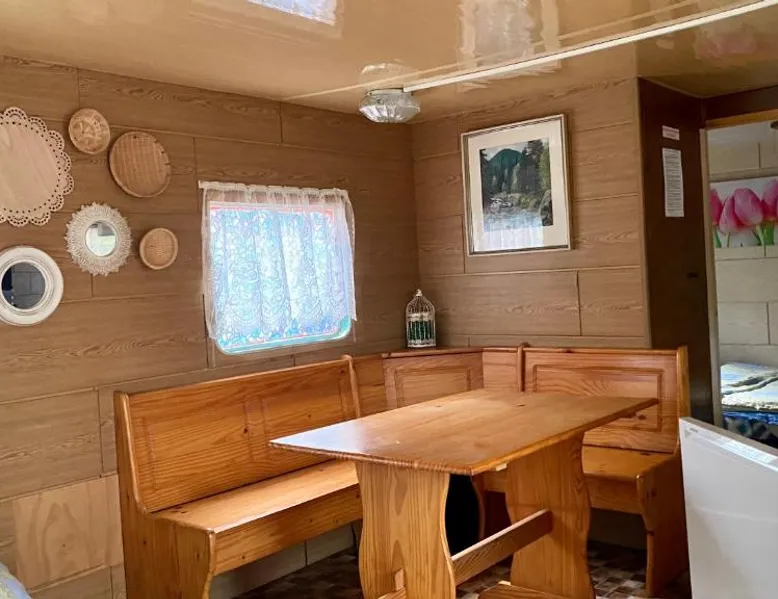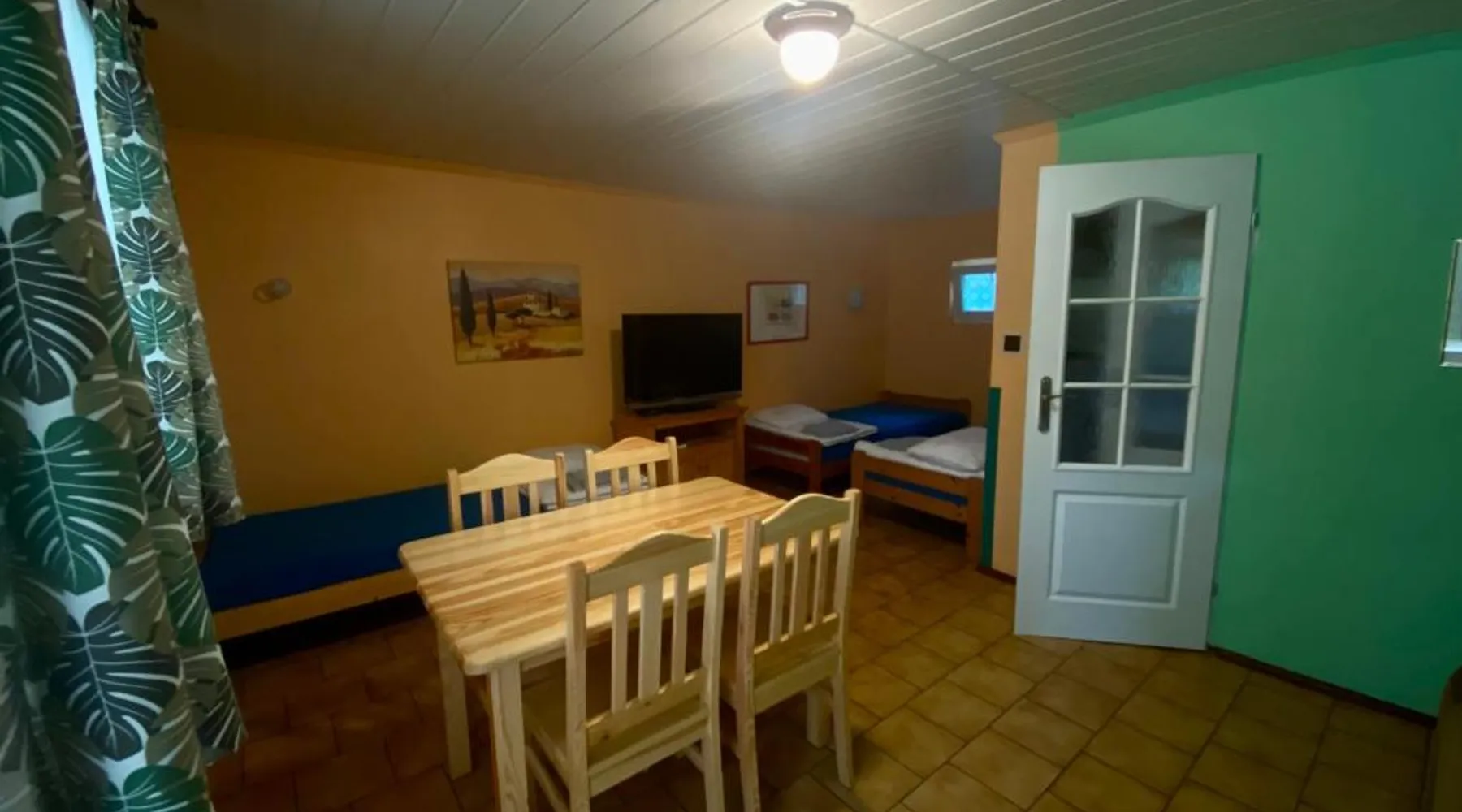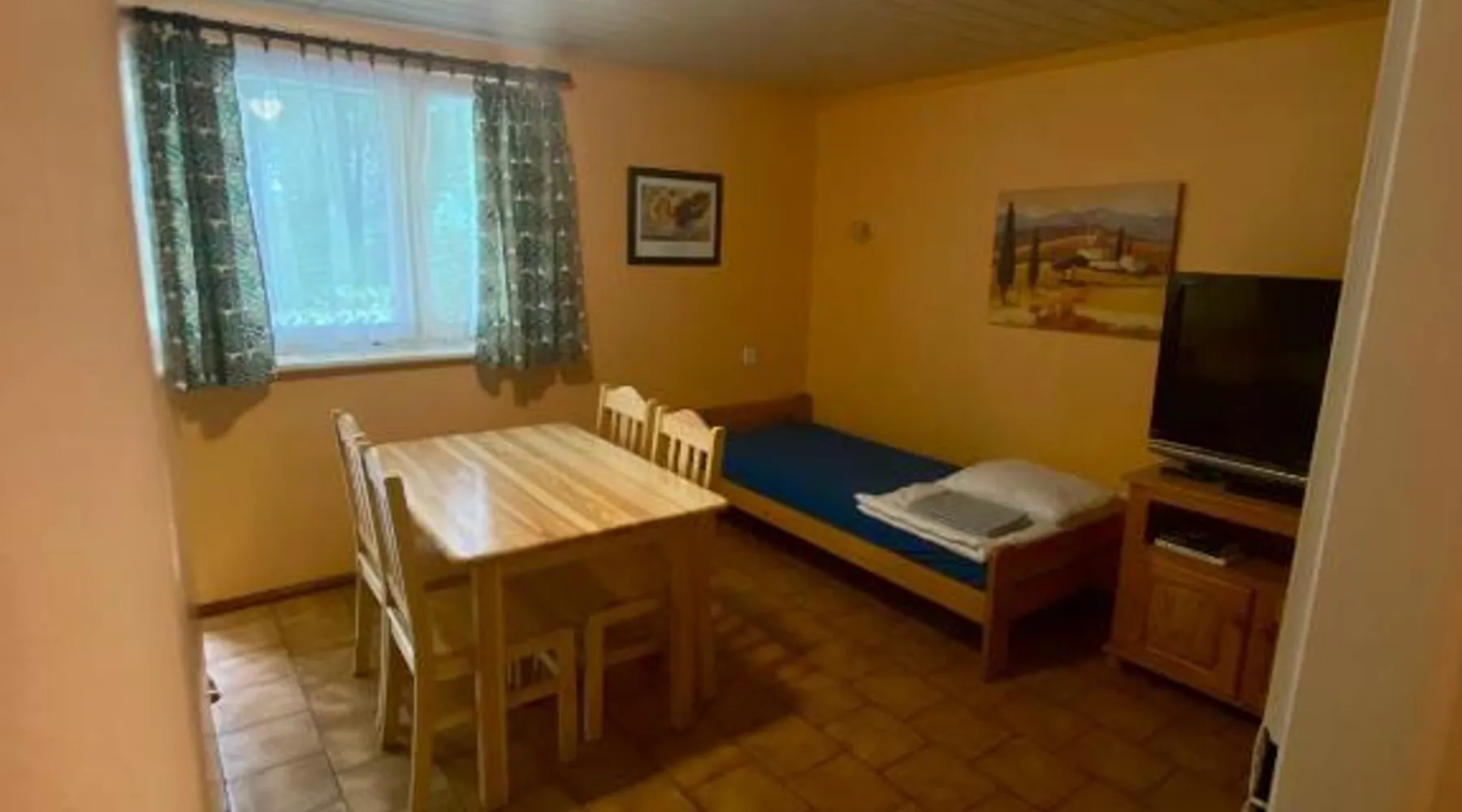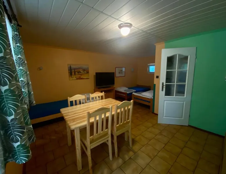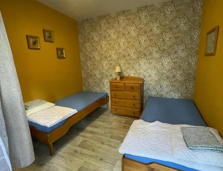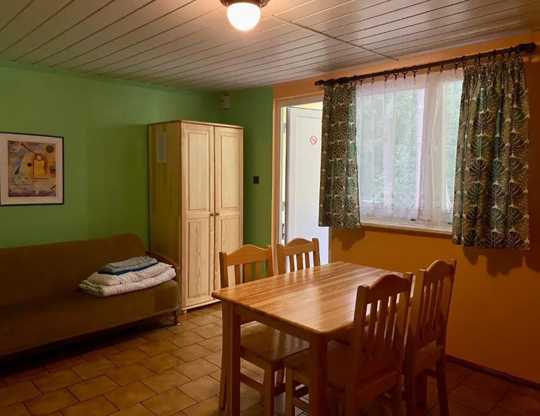Sun Terrace and Garden: Ośrodek Wypoczynkowy Głębokie 4 in Głębokie offers a sun terrace and a garden. Guests can relax in the outdoor seating area or enjoy the outdoor fireplace. Comfortable Accommodations: The apartment features a kitchenette, private bathroom, and a dining area. Additional amenities include a sofa bed, TV, and free on-site private parking. Leisure Facilities: The property provides an outdoor play area, barbecue facilities, and a terrace. Family rooms and outdoor dining areas enhance the guest experience. Nearby Attractions: Located 42 mi from Zielona Góra Airport, the apartment is 21 mi from The Monument of Jesus, 25 mi from Stadium Miedzychod, and 26 mi from the City Art Center. Featuring 1 bedroom and 1 bathroom with a shower, this chalet offers a well-fitted kitchen and a terrace. Guests will find a refrigerator, kitchenware and an electric kettle in the kitchen. The chalet also provides guests with a barbecue. This chalet consists of a dining area, a flat-screen TV with cable channels a private entrance and an outdoor dining area. The unit has 4 beds.
