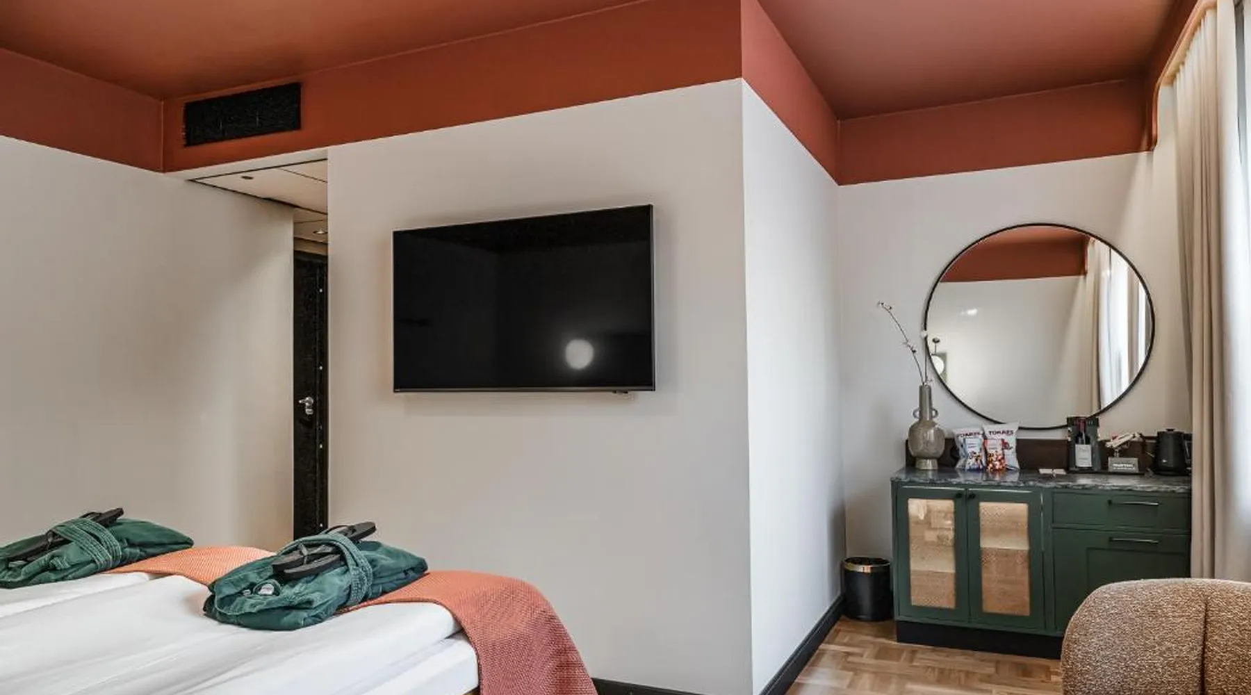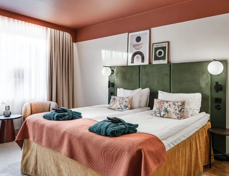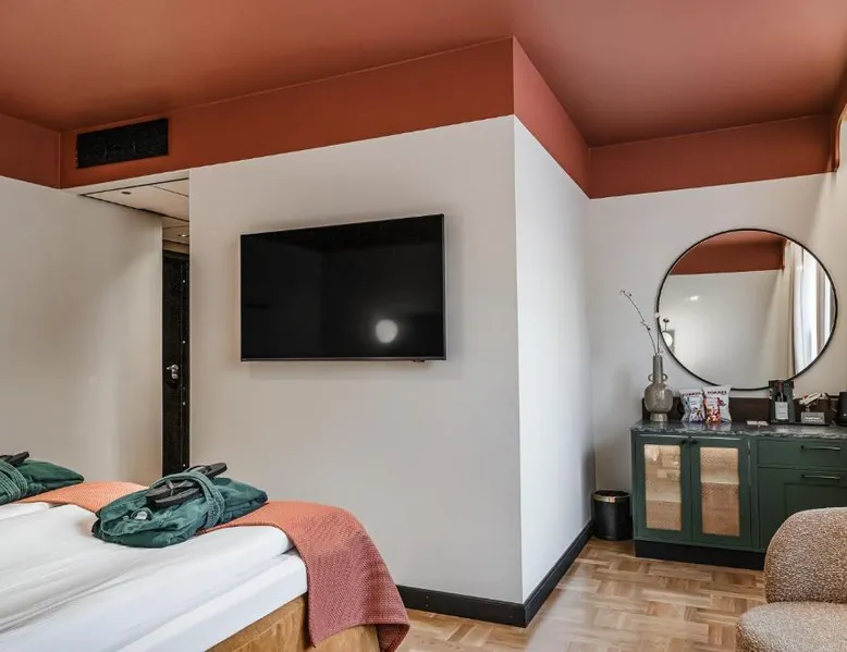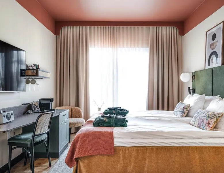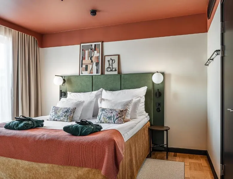 Comfortable Accommodations: Hotel Fratelli in Karlstad offers 4-star comfort with free WiFi, private check-in and check-out, and modern amenities including balconies and interconnected rooms. Exceptional Facilities: Guests can enjoy spa facilities, a fitness center, terrace, restaurant, bar, and wellness packages. Additional services include beauty treatments, a steam room, and a 24-hour front desk. Dining Experience: The modern, romantic restaurant serves French, Italian, Mediterranean, and Spanish cuisines for lunch and dinner, complemented by a buffet breakfast. Cocktails are available at the bar. Prime Location: Located a 3-minute walk from Karlstad Central Station, the hotel is near attractions such as Löfbergs Lila Arena (3.7 mi) and Karlstad Golf Course (6.2 mi). Free toiletries, showers, and TVs are provided in each room. This double room provides a tea and coffee maker and a TV. The unit offers 1 bed.