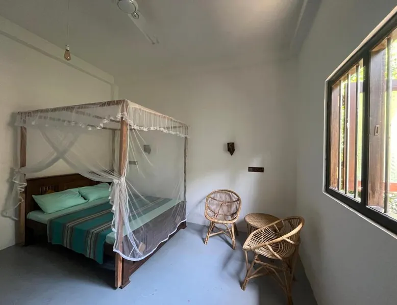 Comfortable Accommodations: Wijesingha Holiday Home in Weligama offers a guest house with a garden and terrace. Private check-in and check-out services ensure a smooth arrival and departure. Modern Amenities: Guests enjoy free on-site private parking, a 24-hour front desk, and full-day security. Additional facilities include an outdoor seating area, bicycle parking, and room service. Delicious Breakfast: A variety of breakfast options are available, including Italian, vegetarian, vegan, and Asian. The dining area provides a comfortable space to start the day. Prime Location: Located 6.2 mi from Koggala Airport, the property is a 3-minute walk from Midigama Beach. Nearby attractions include Galle Fort and Galle Light House, each 14 mi away. The double room offers a dining area, a wardrobe, a terrace with garden views as well as a private bathroom boasting a shower. The unit has 1 bed.