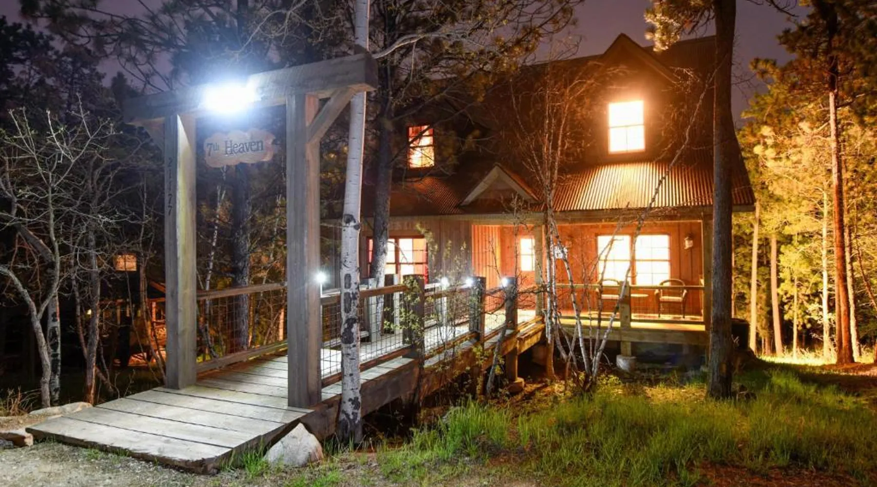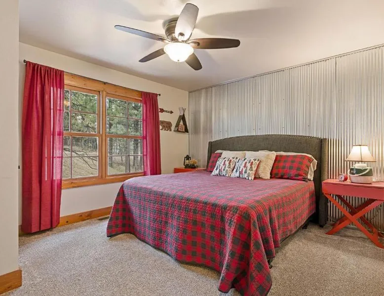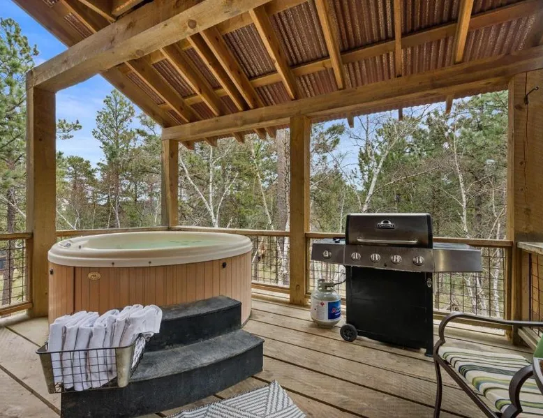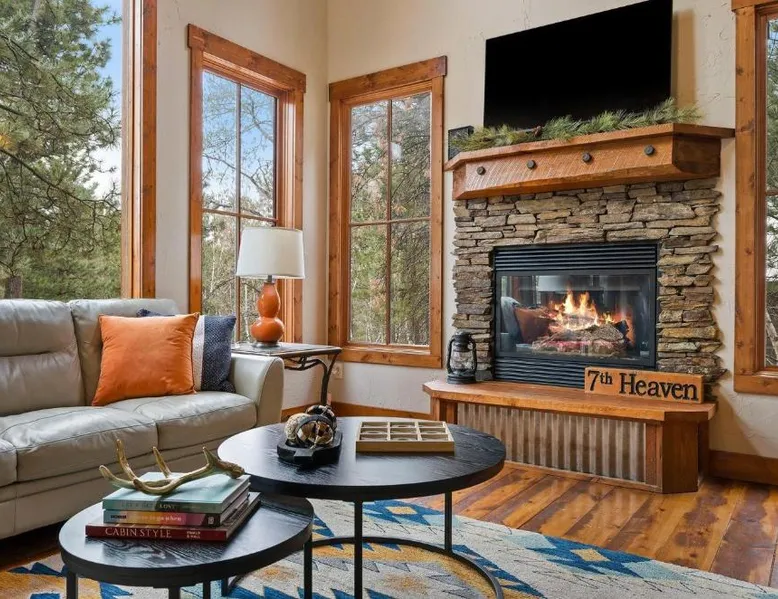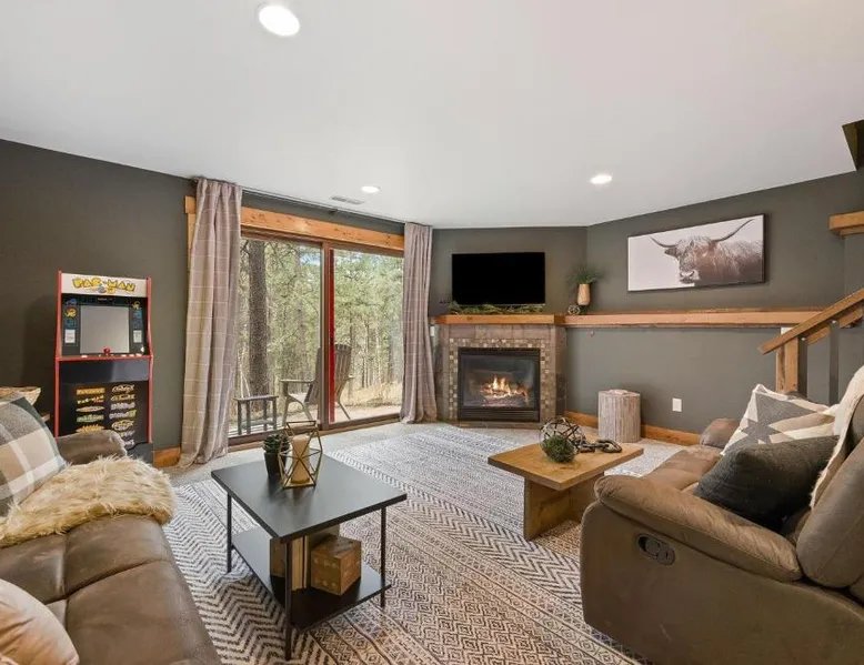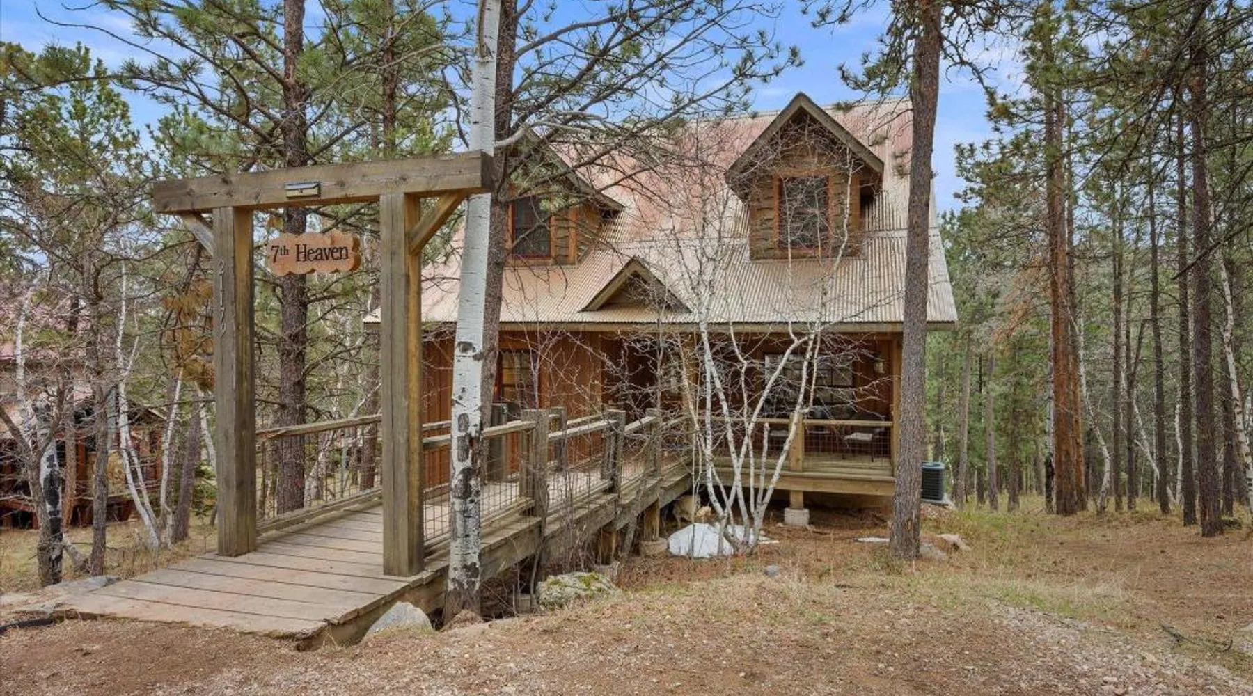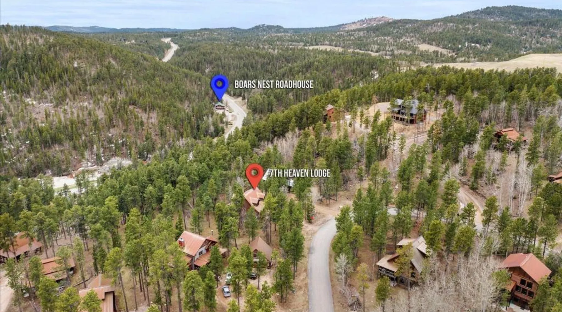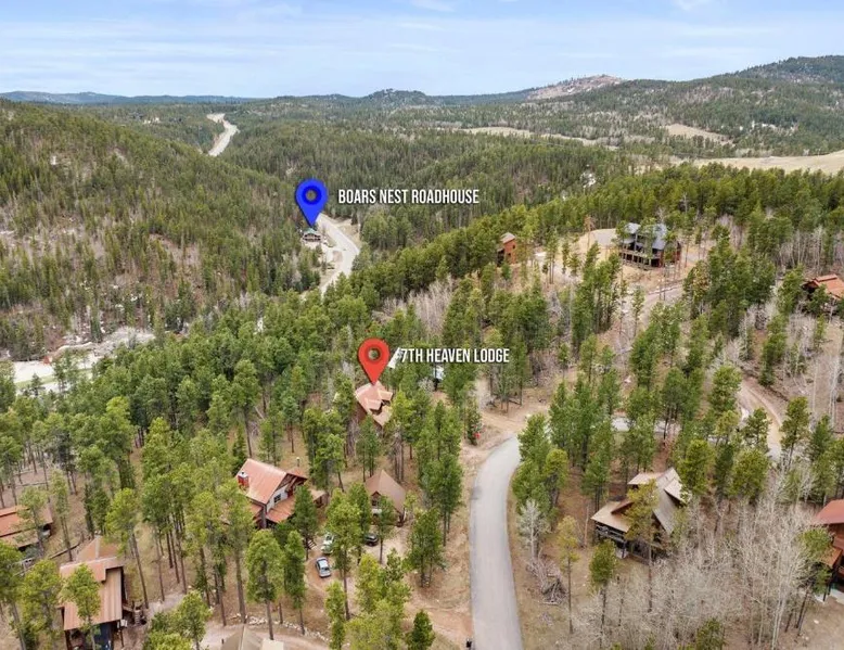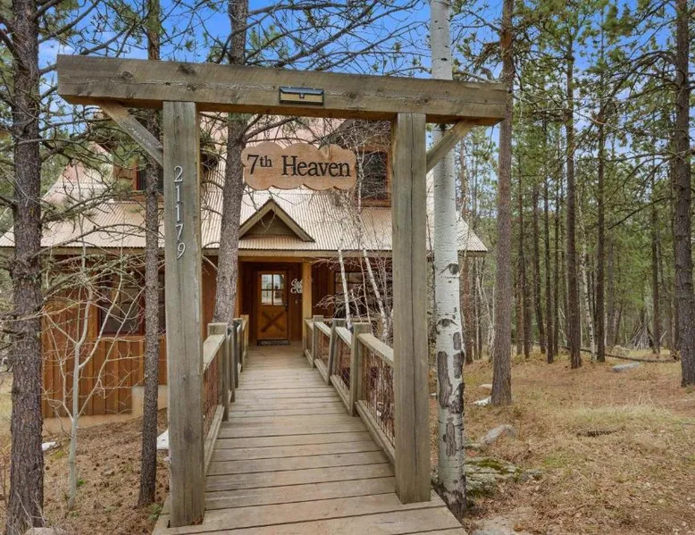 Spacious Accommodations: 7th Heaven Lodge in Lead offers a spacious holiday home with five bedrooms and three bathrooms. The living room features mountain views and a cozy fireplace, ensuring a comfortable stay. Relaxing Facilities: Guests can unwind in the sauna or hot tub, take a dip in the outdoor swimming pool, and stay connected with free WiFi. The property also includes a fully equipped kitchen, washing machine, and dishwasher. Local Attractions: Adams Museum is located 3.7 mi away, providing cultural activities. Rapid City Regional Airport is 56 mi from the lodge, facilitating convenient travel. Skiing enthusiasts can enjoy nearby slopes. The fireplace is a top feature of this holiday home. Boasting a private entrance, this air-conditioned holiday home includes 1 living room, 5 separate bedrooms and 3 bathrooms with a bath and a hairdryer. The well-fitted kitchen has a stovetop, a refrigerator, a dishwasher and kitchenware. The spacious holiday home offers a TV with cable channels, a washing machine, a dining area, heating as well as mountain views. The unit has 7 beds.