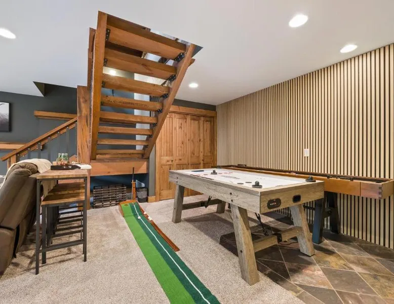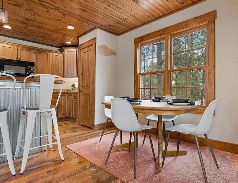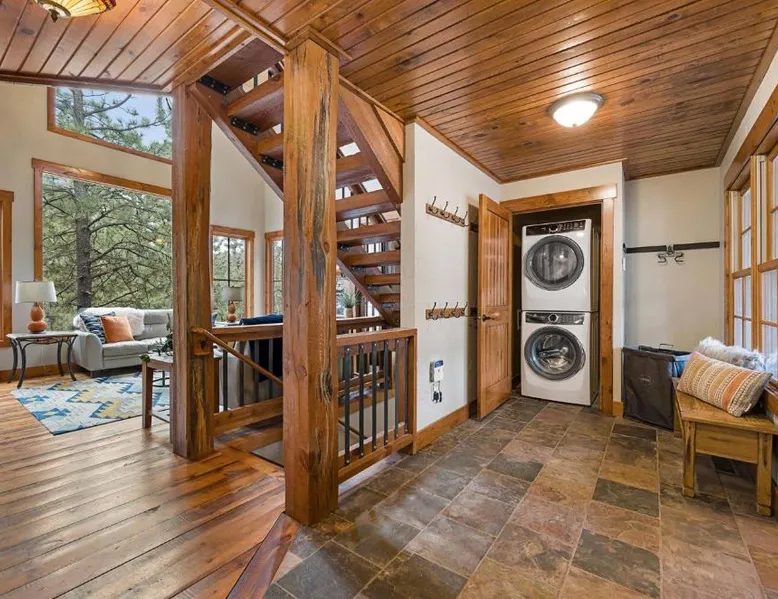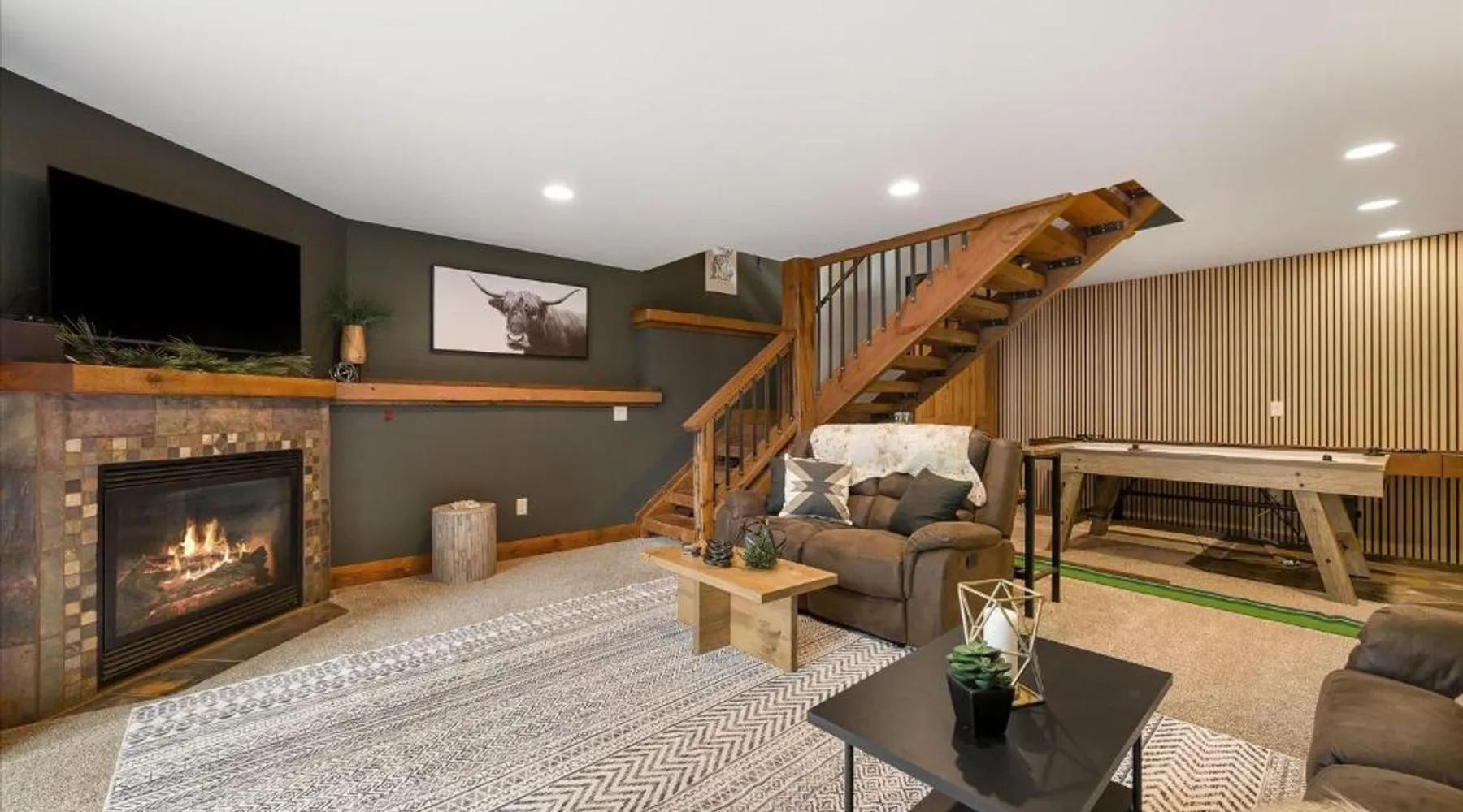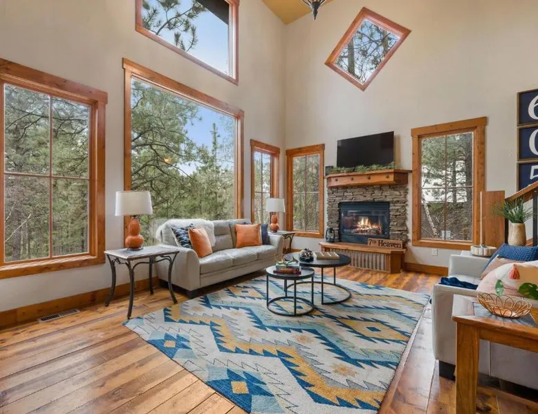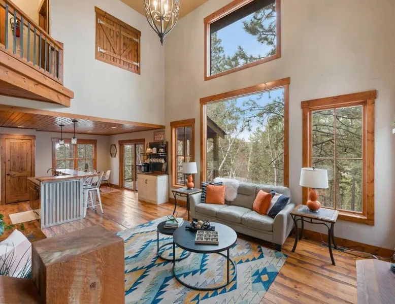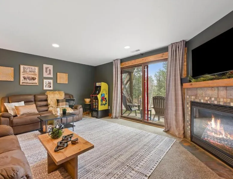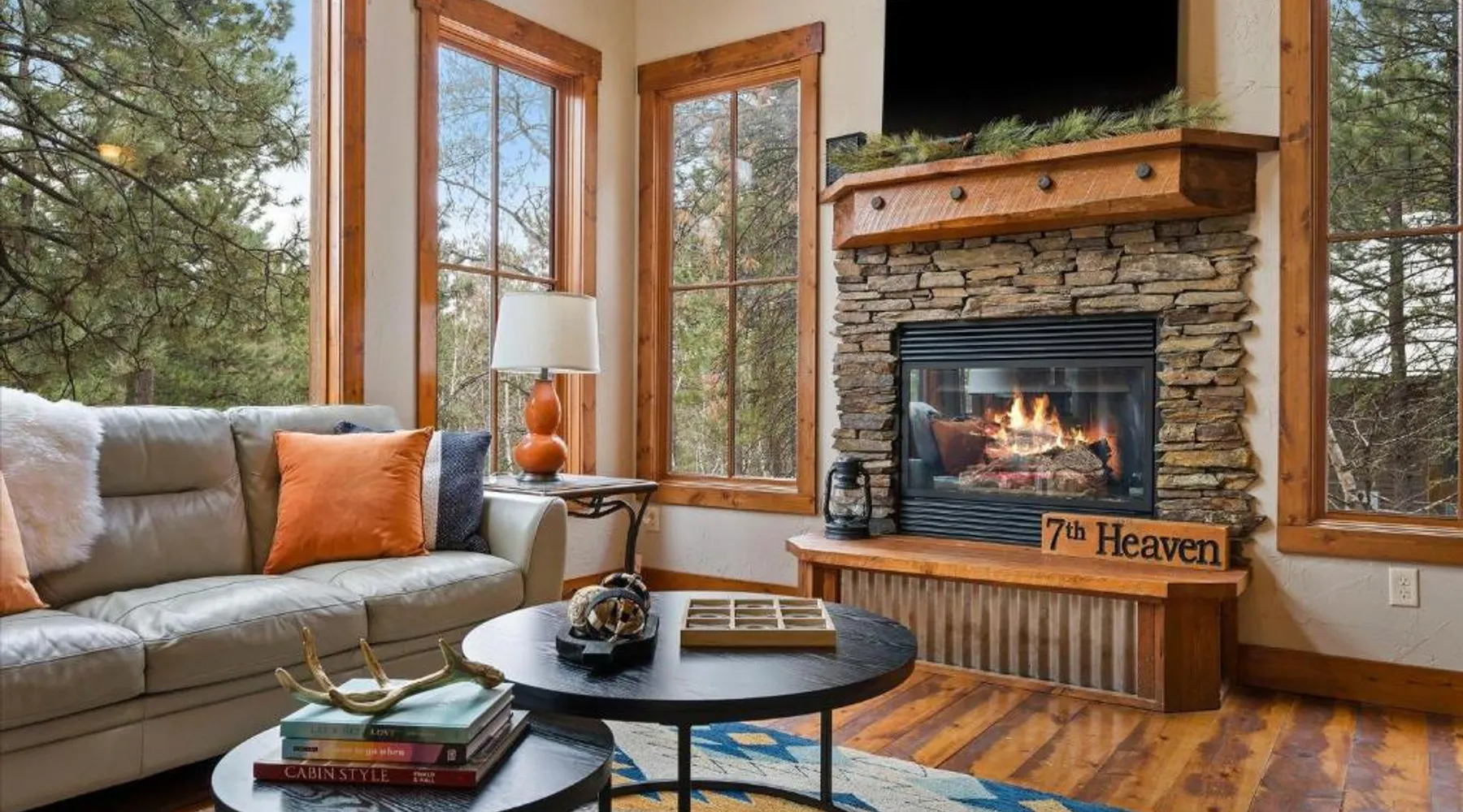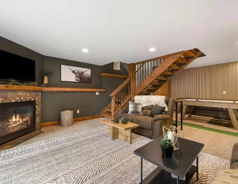 Spacious Accommodations: 7th Heaven Lodge in Lead offers a spacious holiday home with five bedrooms and three bathrooms. The living room features mountain views and a cozy fireplace, ensuring a comfortable stay. Relaxing Facilities: Guests can unwind in the sauna or hot tub, take a dip in the outdoor swimming pool, and stay connected with free WiFi. The property also includes a fully equipped kitchen, washing machine, and dishwasher. Local Attractions: Adams Museum is located 3.7 mi away, providing cultural activities. Rapid City Regional Airport is 56 mi from the lodge, facilitating convenient travel. Skiing enthusiasts can enjoy nearby slopes. The fireplace is a top feature of this holiday home. Boasting a private entrance, this air-conditioned holiday home includes 1 living room, 5 separate bedrooms and 3 bathrooms with a bath and a hairdryer. The well-fitted kitchen has a stovetop, a refrigerator, a dishwasher and kitchenware. The spacious holiday home offers a TV with cable channels, a washing machine, a dining area, heating as well as mountain views. The unit has 7 beds.